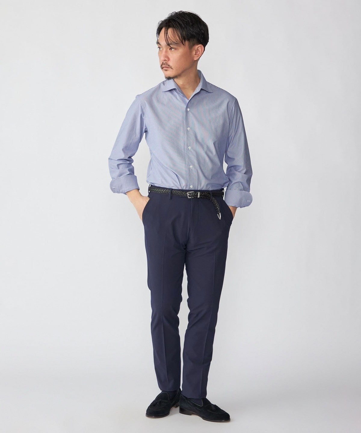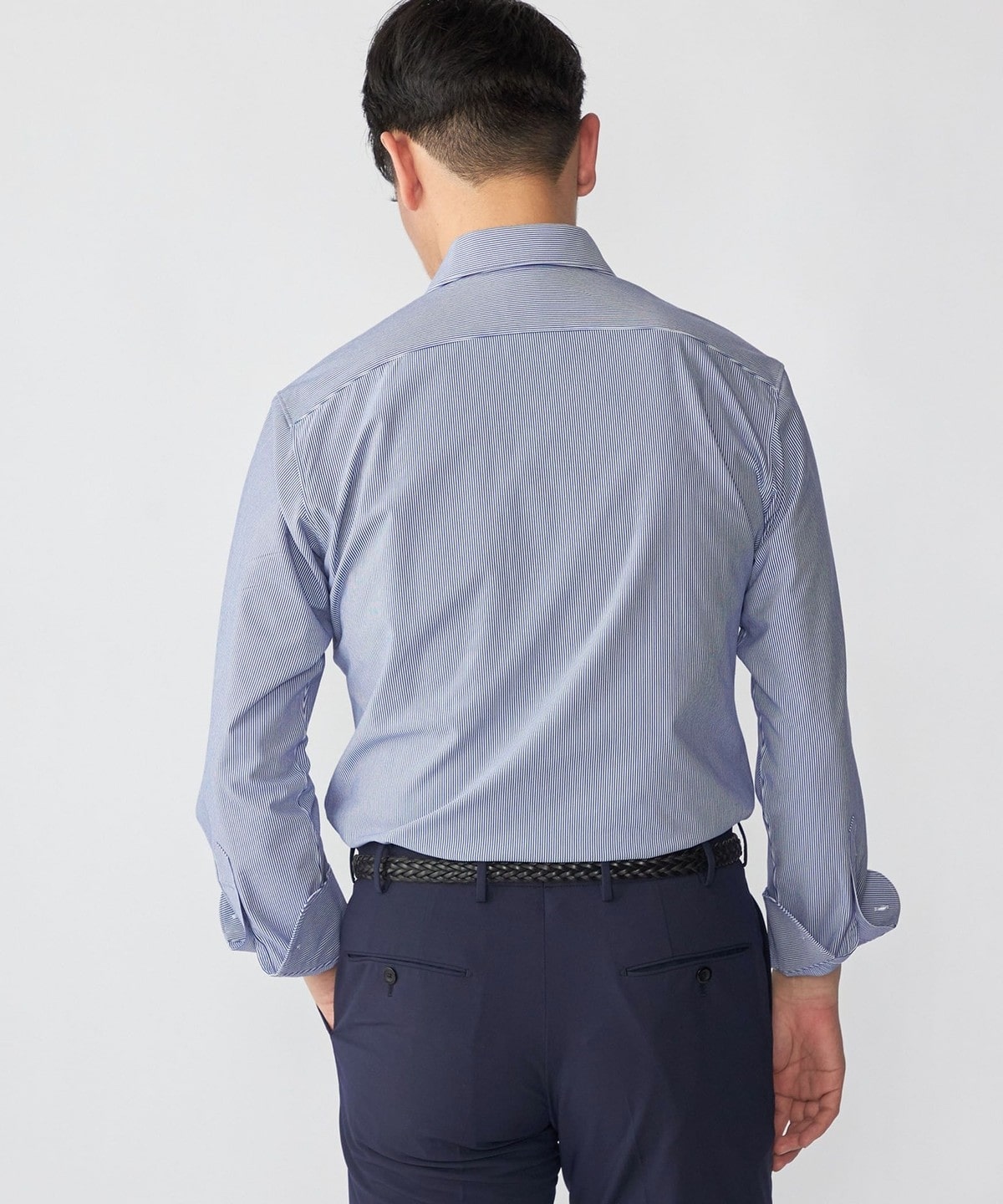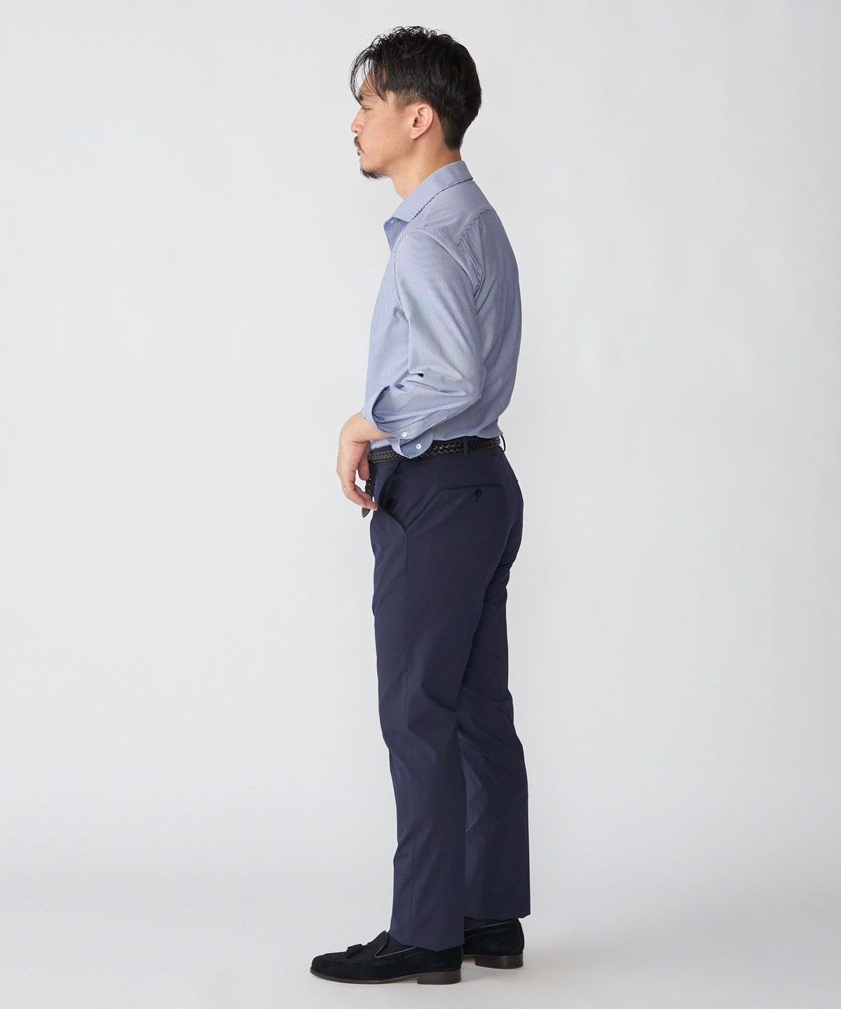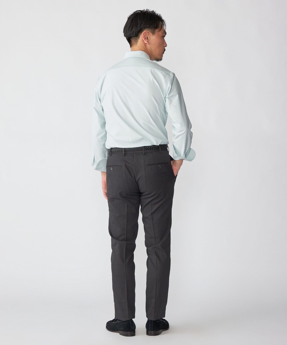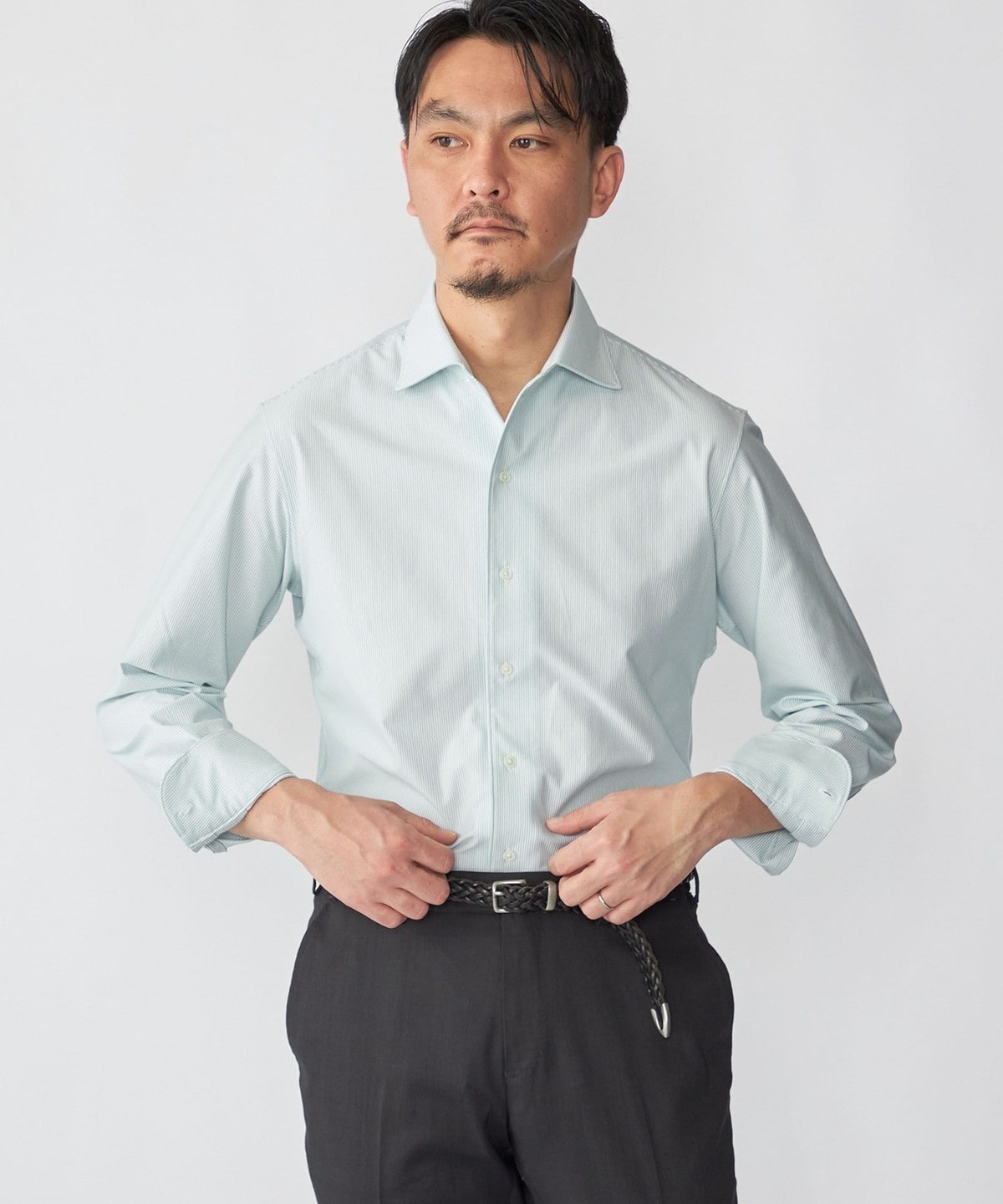 ジャケットのインナーに入れると、ジャージーシャツとは思えないほどの上質な印象を与えます。