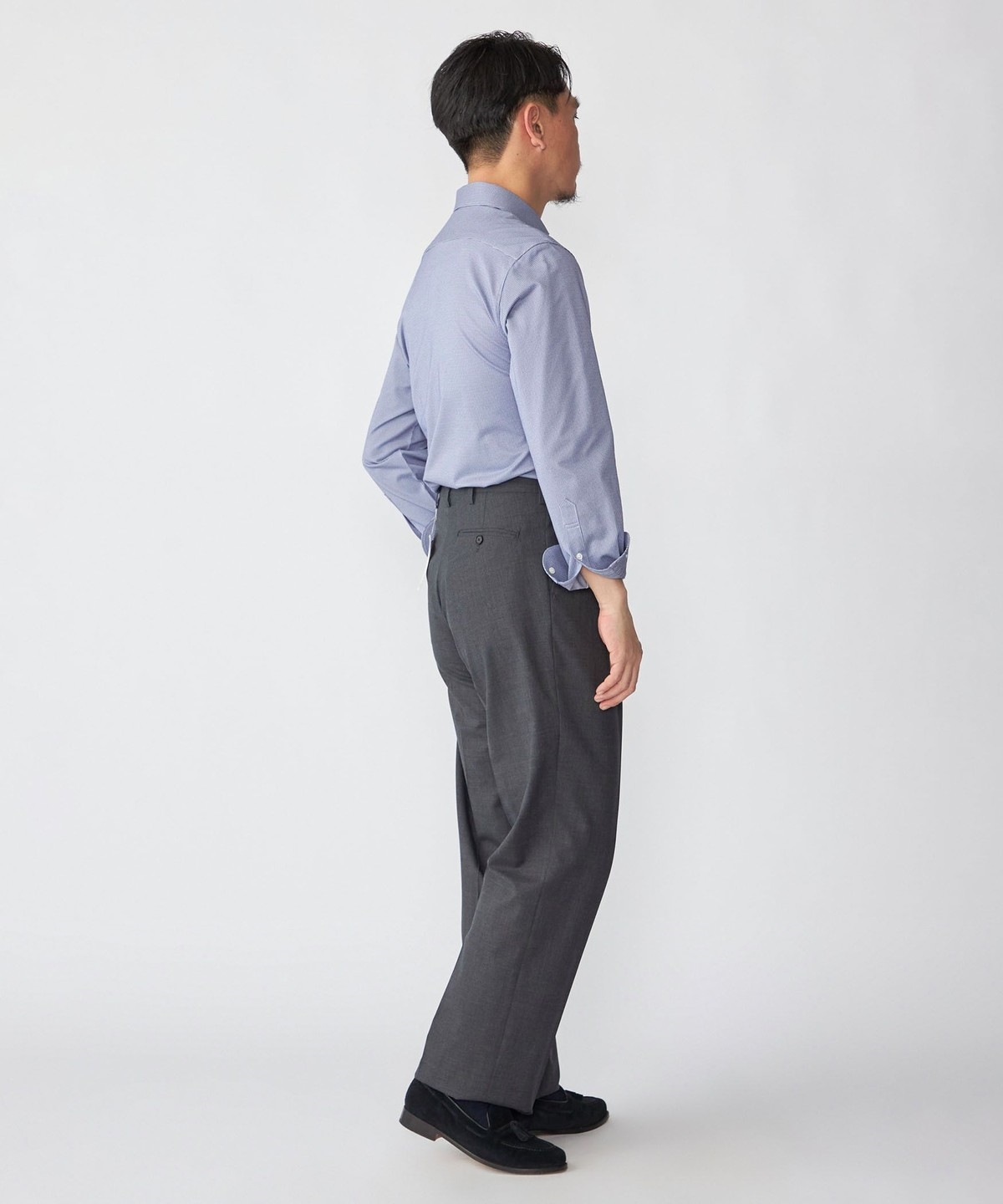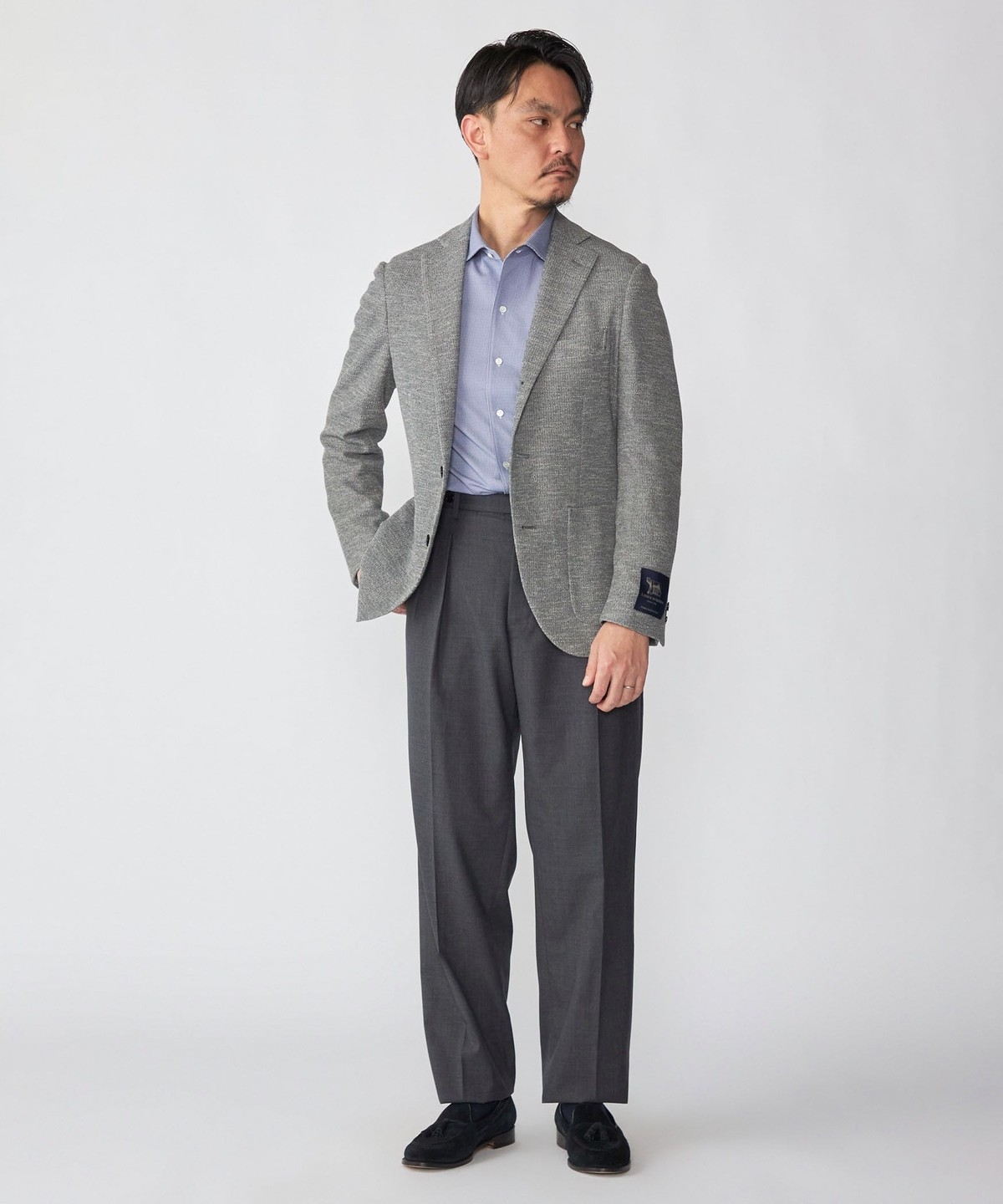 ジャケットのインナーに入れると、ジャージーシャツとは思えないほどの上質な印象を与えます。