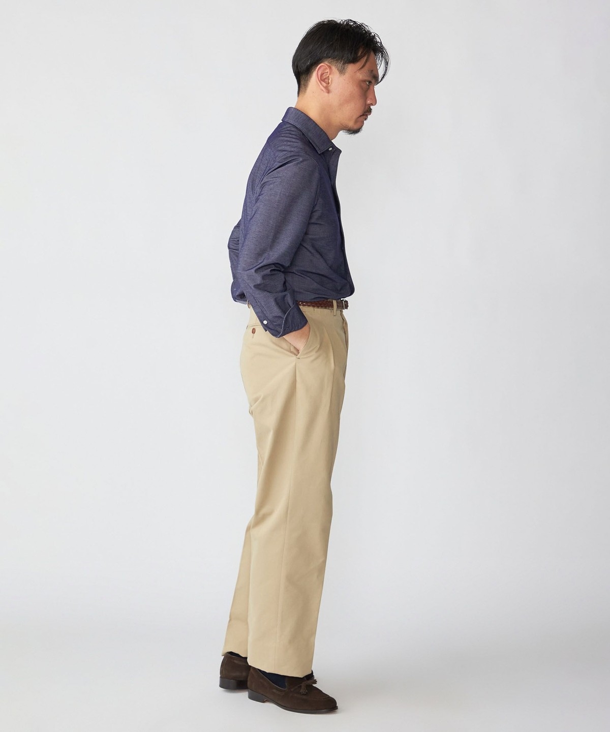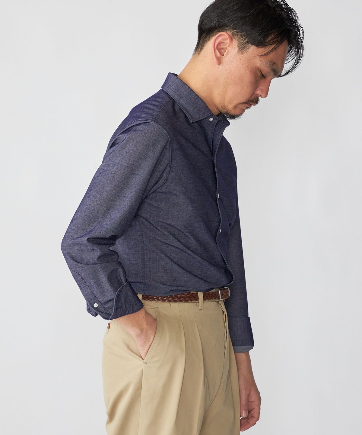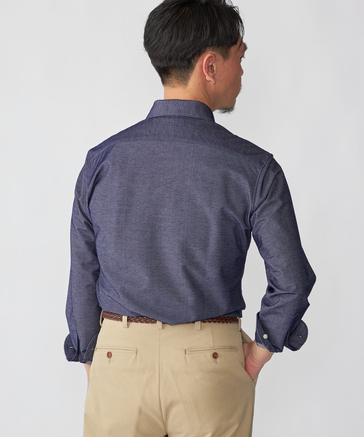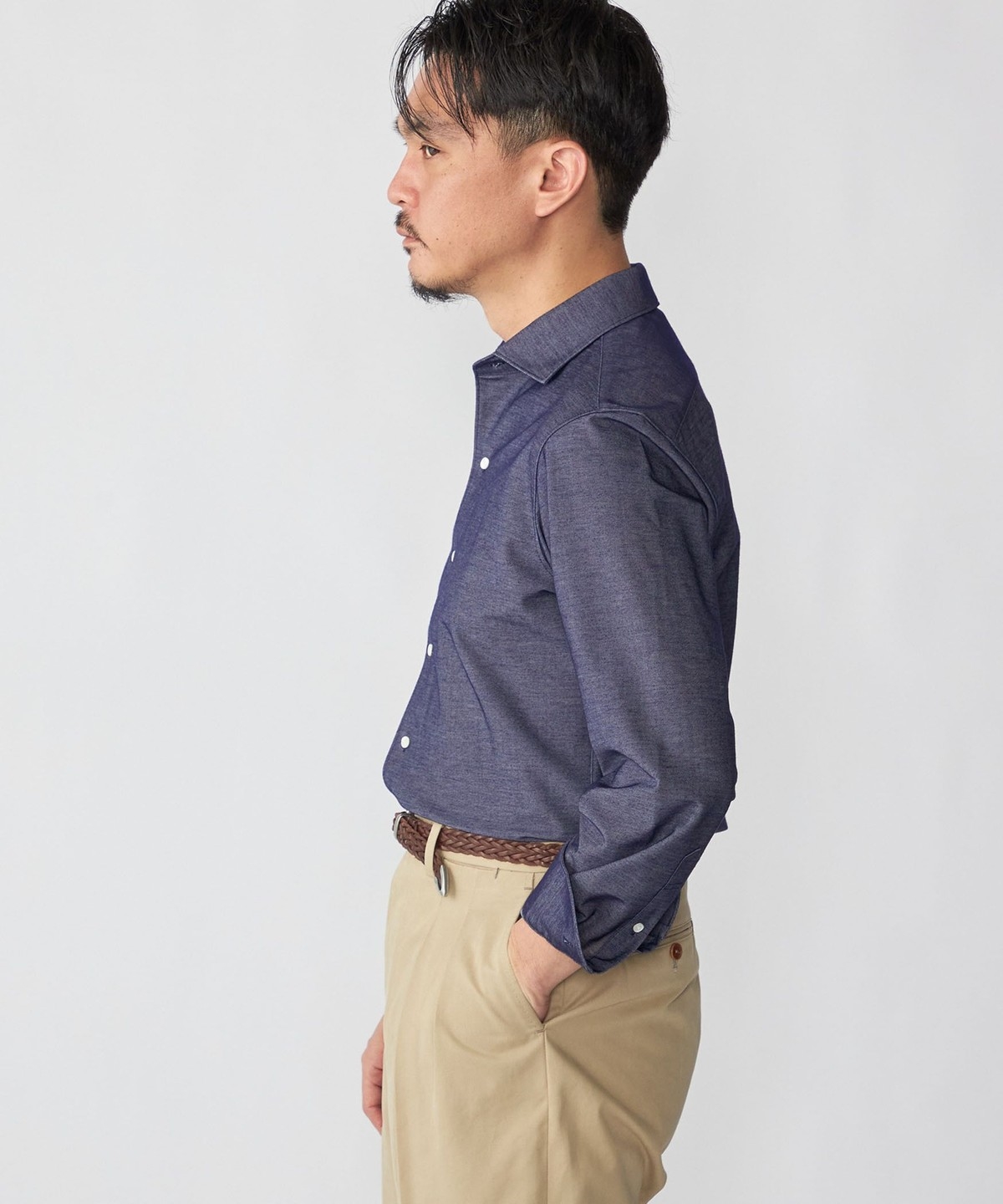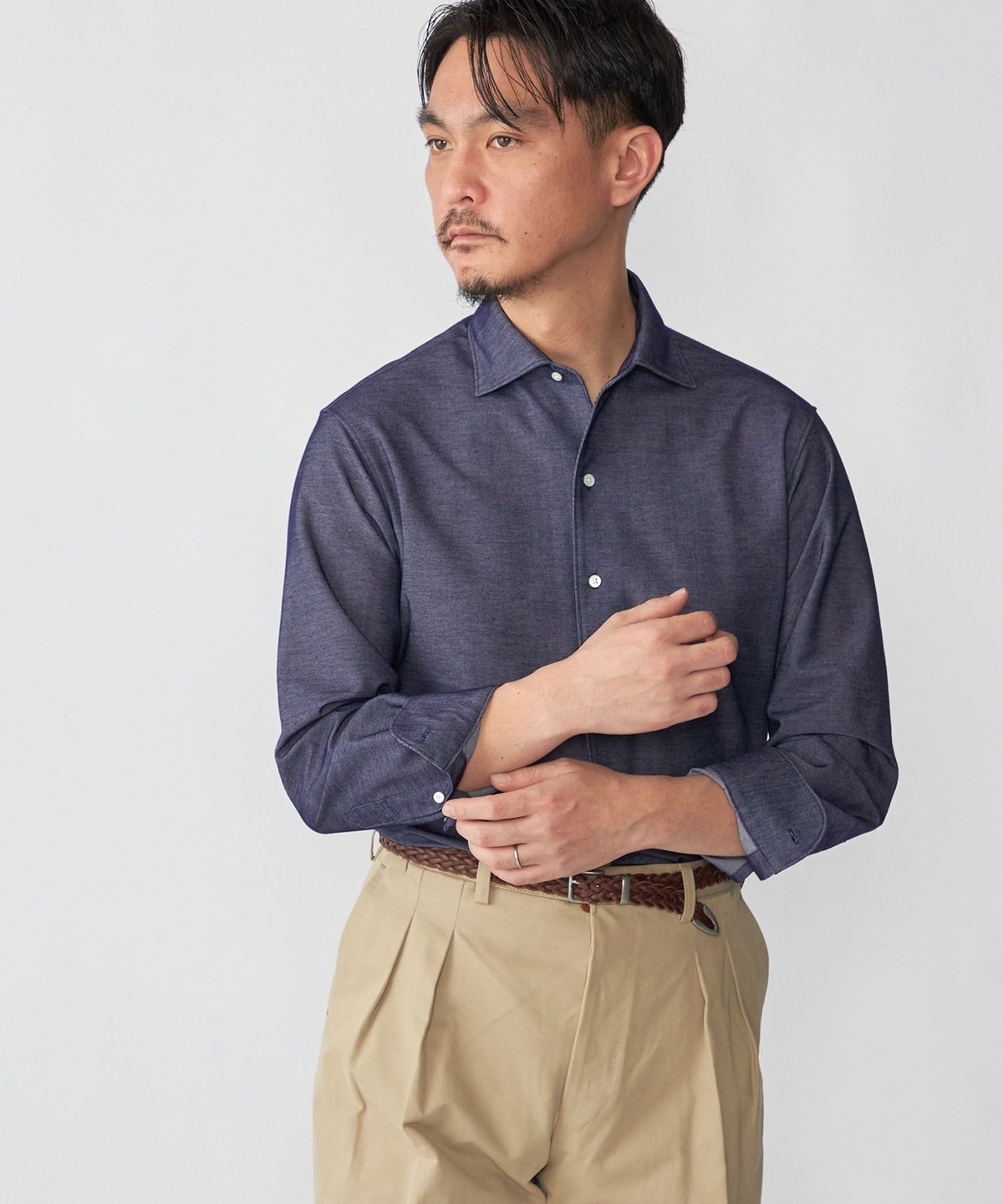 ジャケットのインナーに入れると、ジャージーシャツとは思えないほどの上質な印象を与えます。