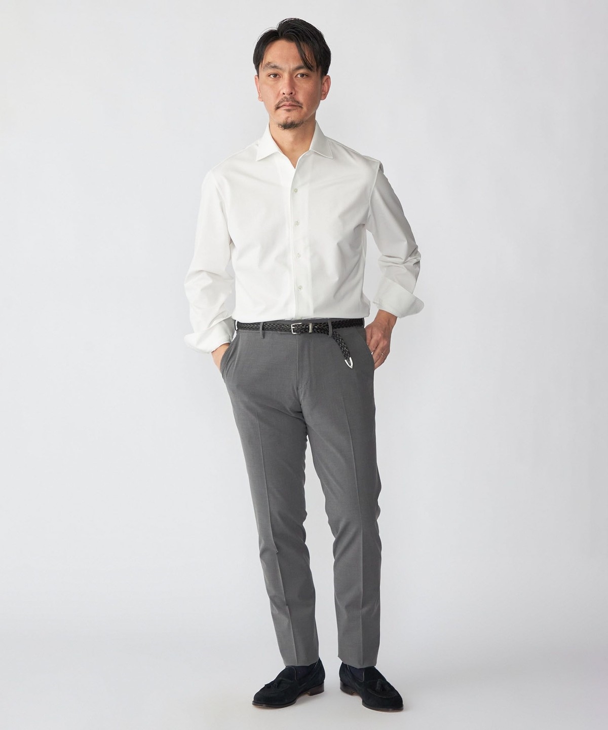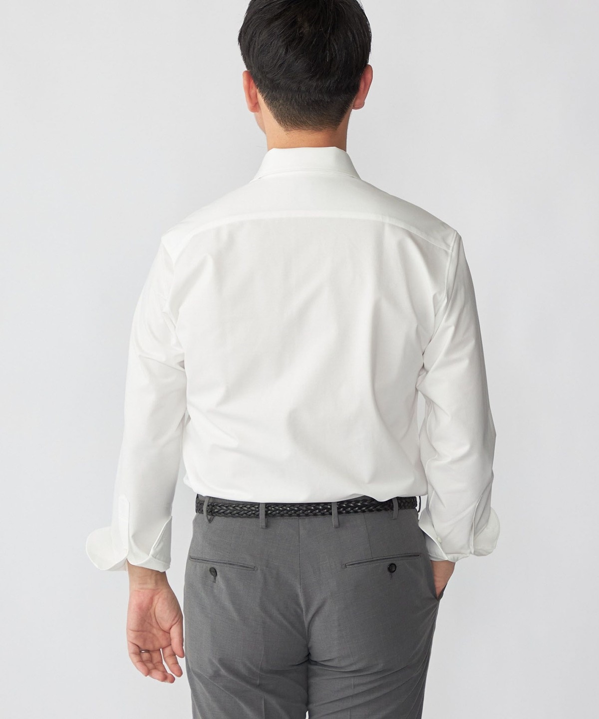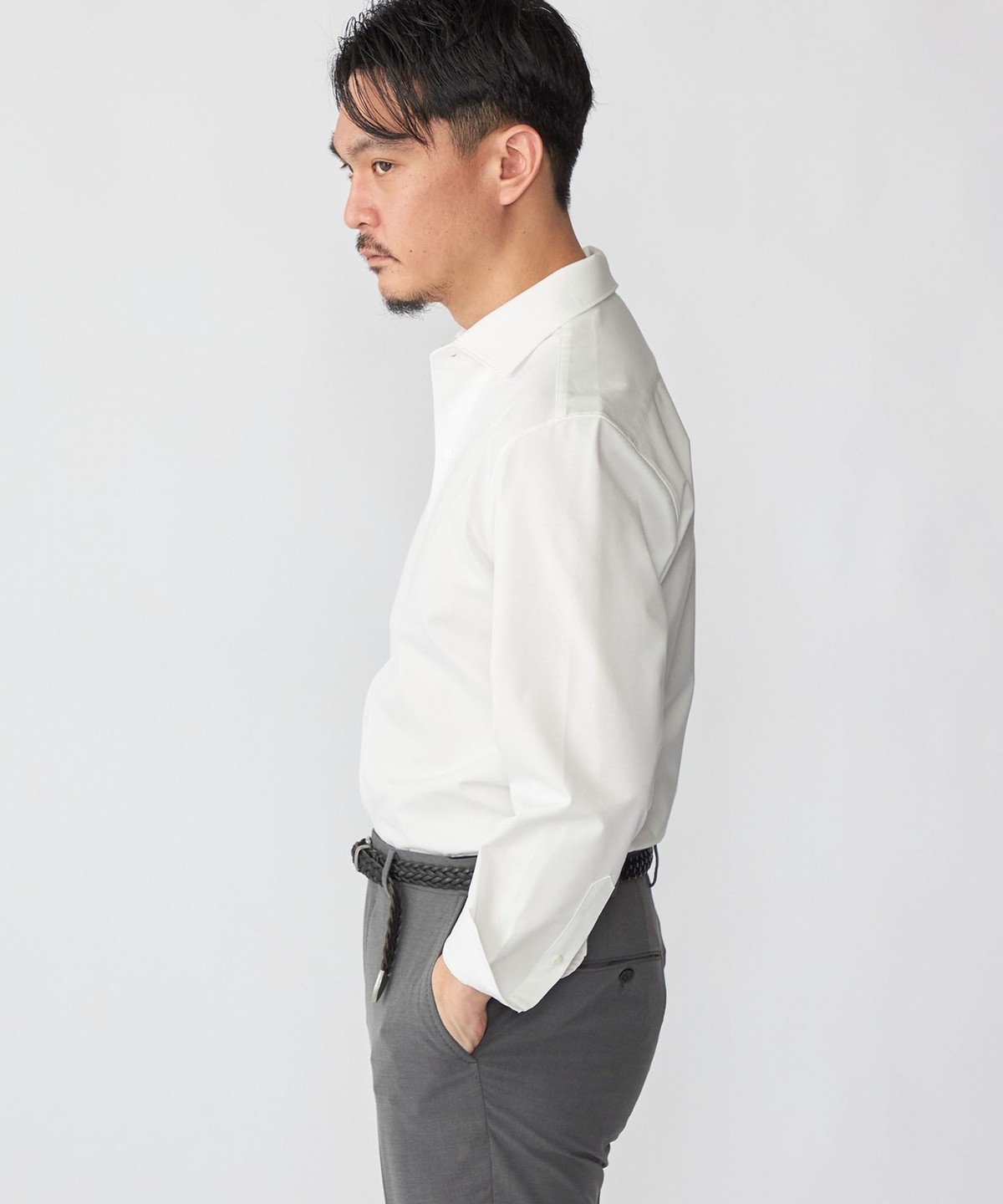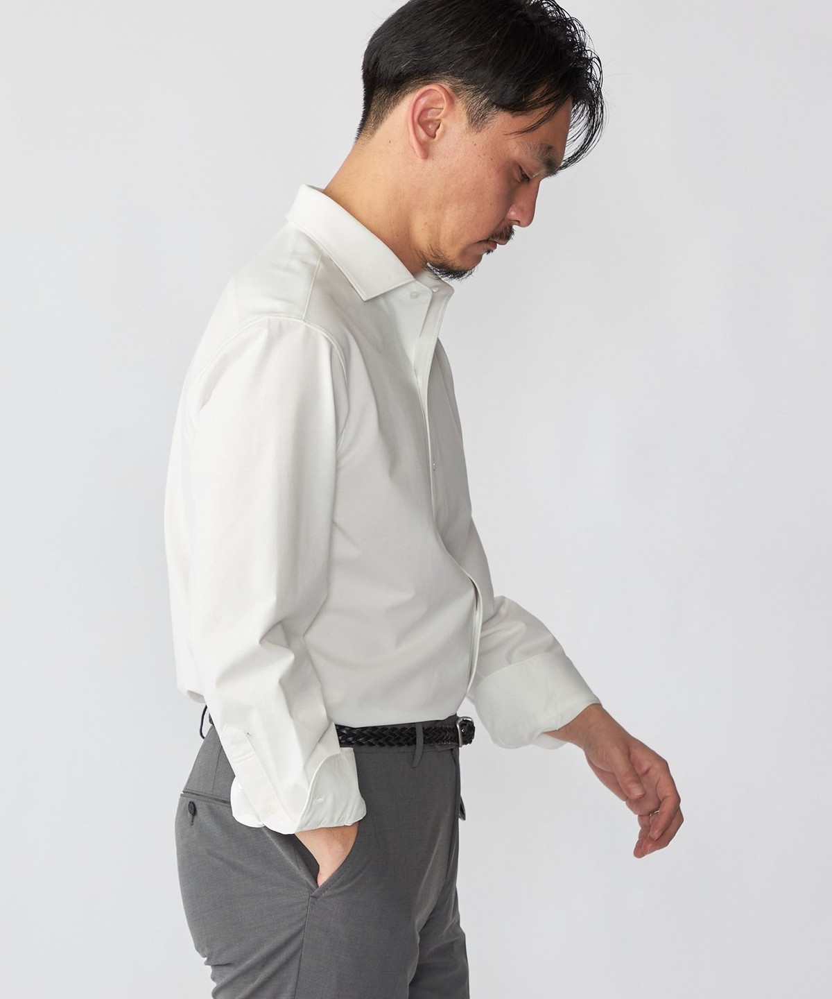 ジャケットのインナーに入れると、ジャージーシャツとは思えないほどの上質な印象を与えます。
