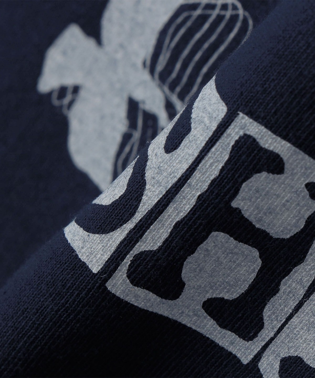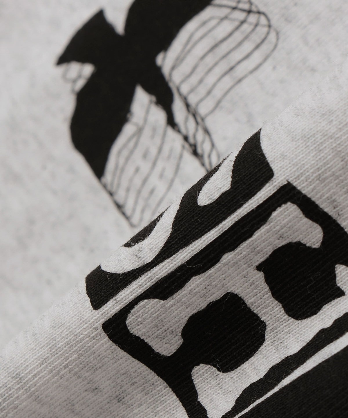 一枚では勿論、ジップアップパーカーのインナー等からデザインとチラ見せさせるスタイリングも様になります。