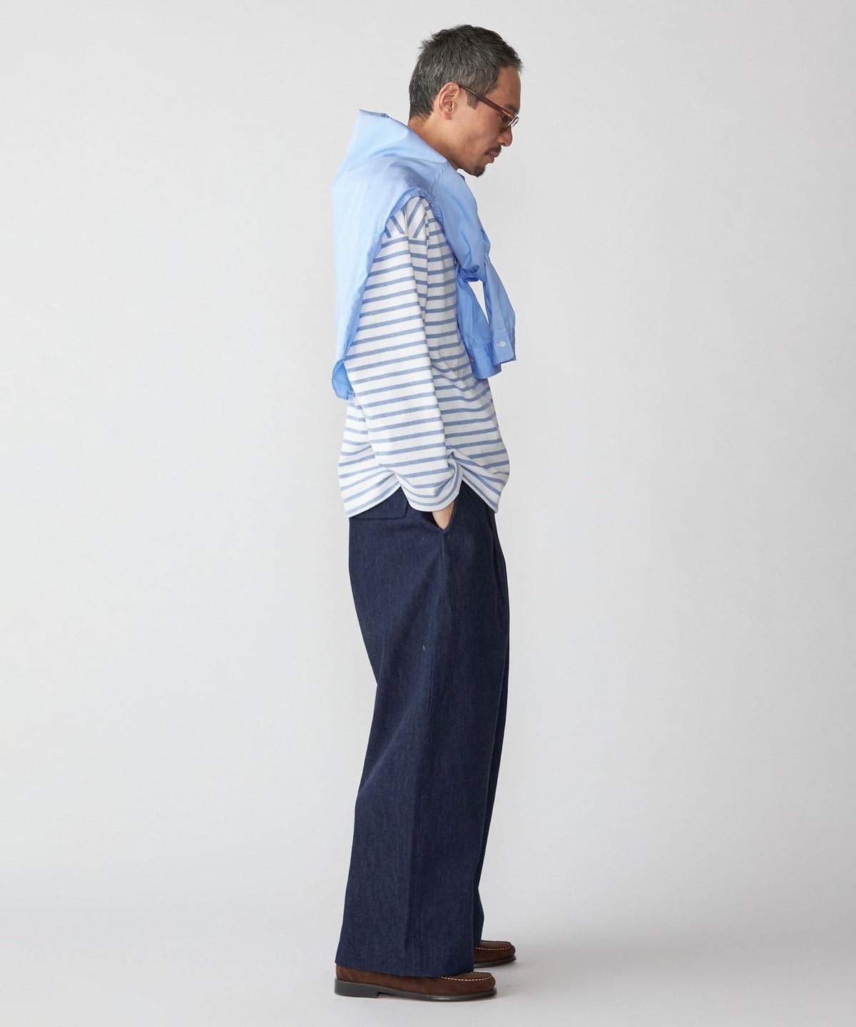 幅広い年齢層に受け入れられているOUESSANT(ウェッソン)を身幅と袖幅にゆとりを持たせたややルーズなシルエット。