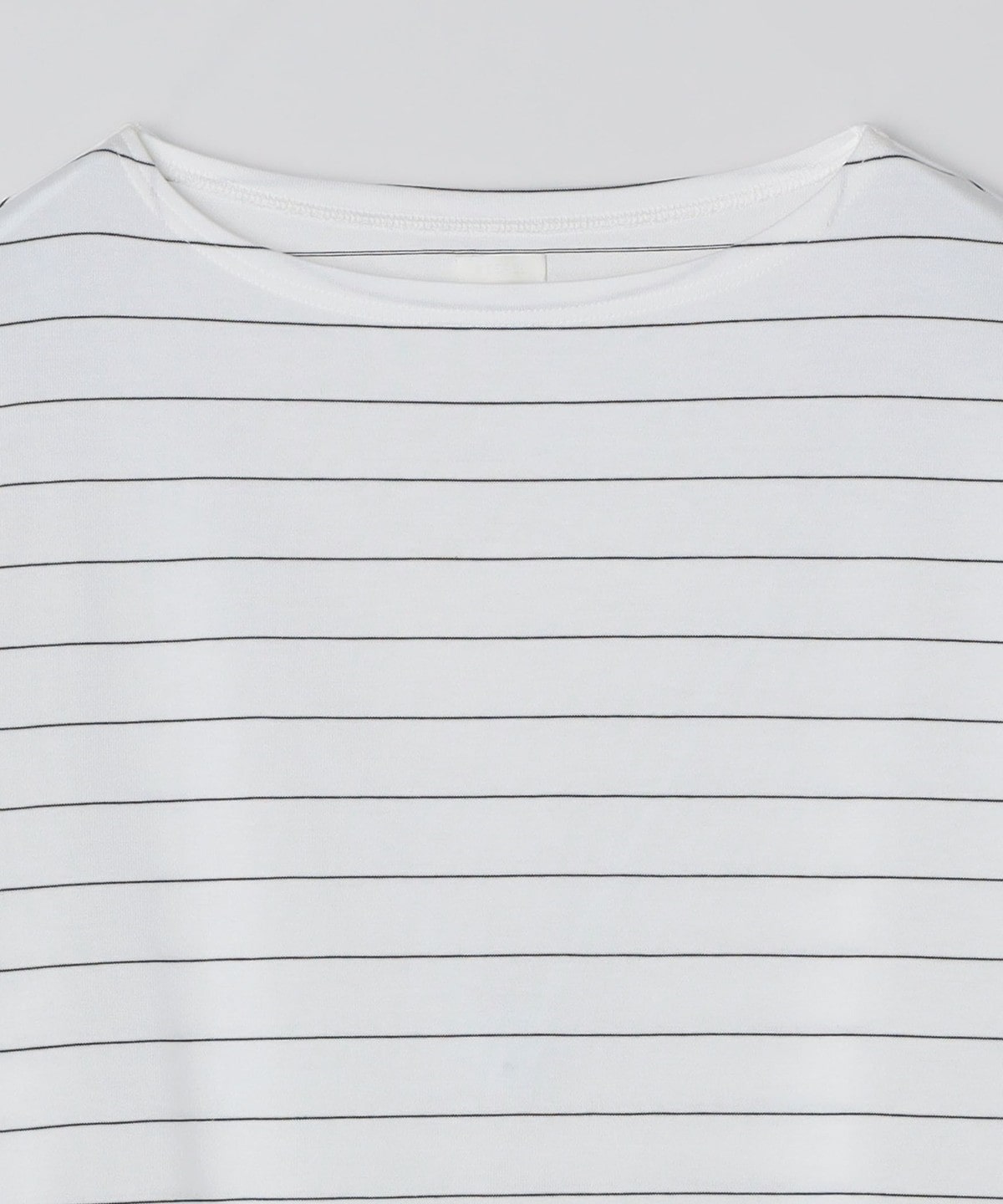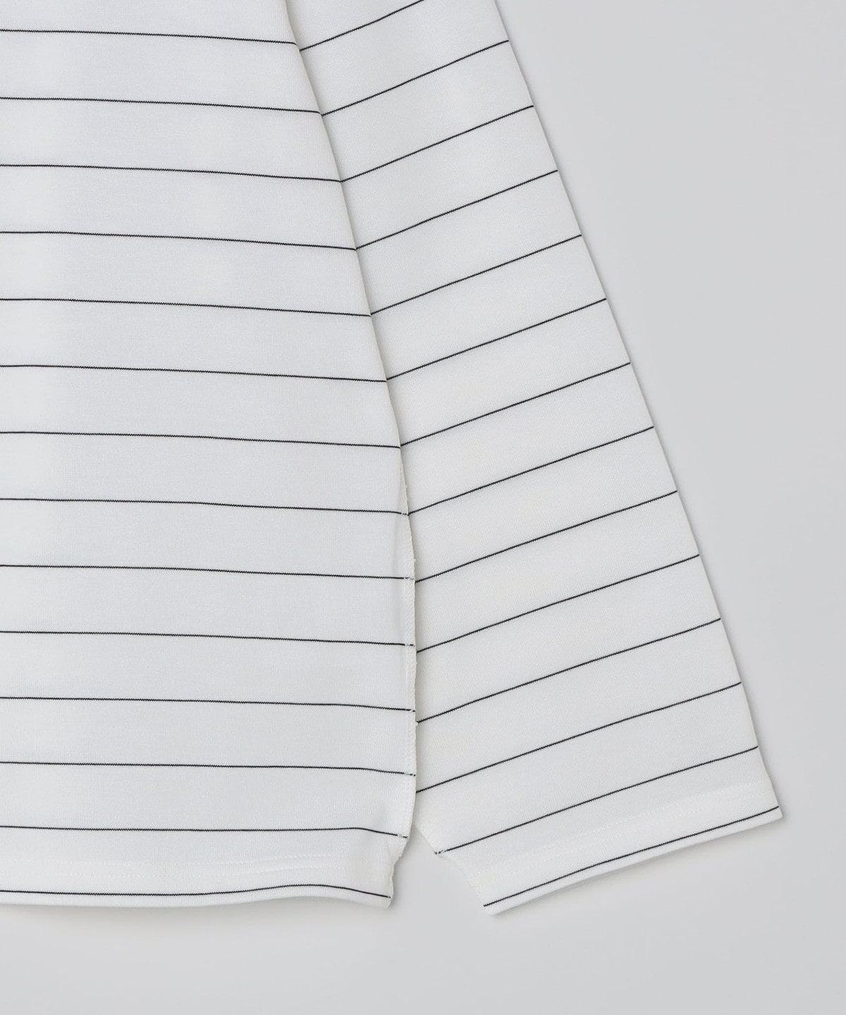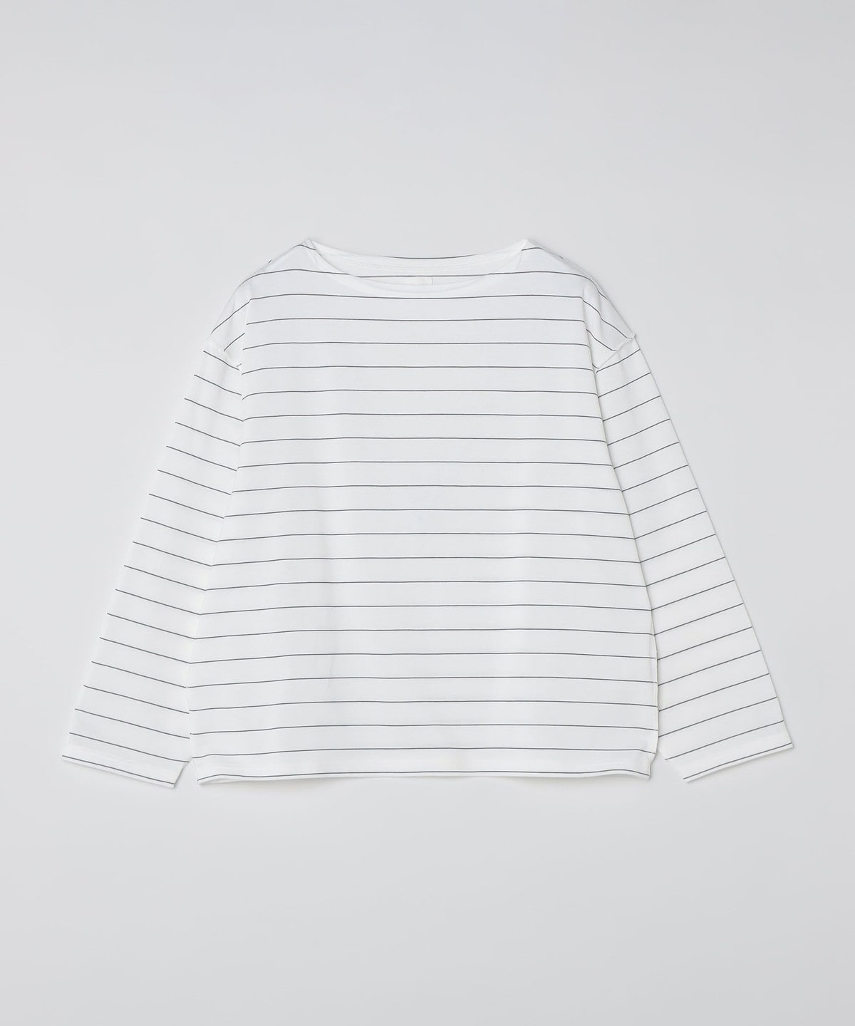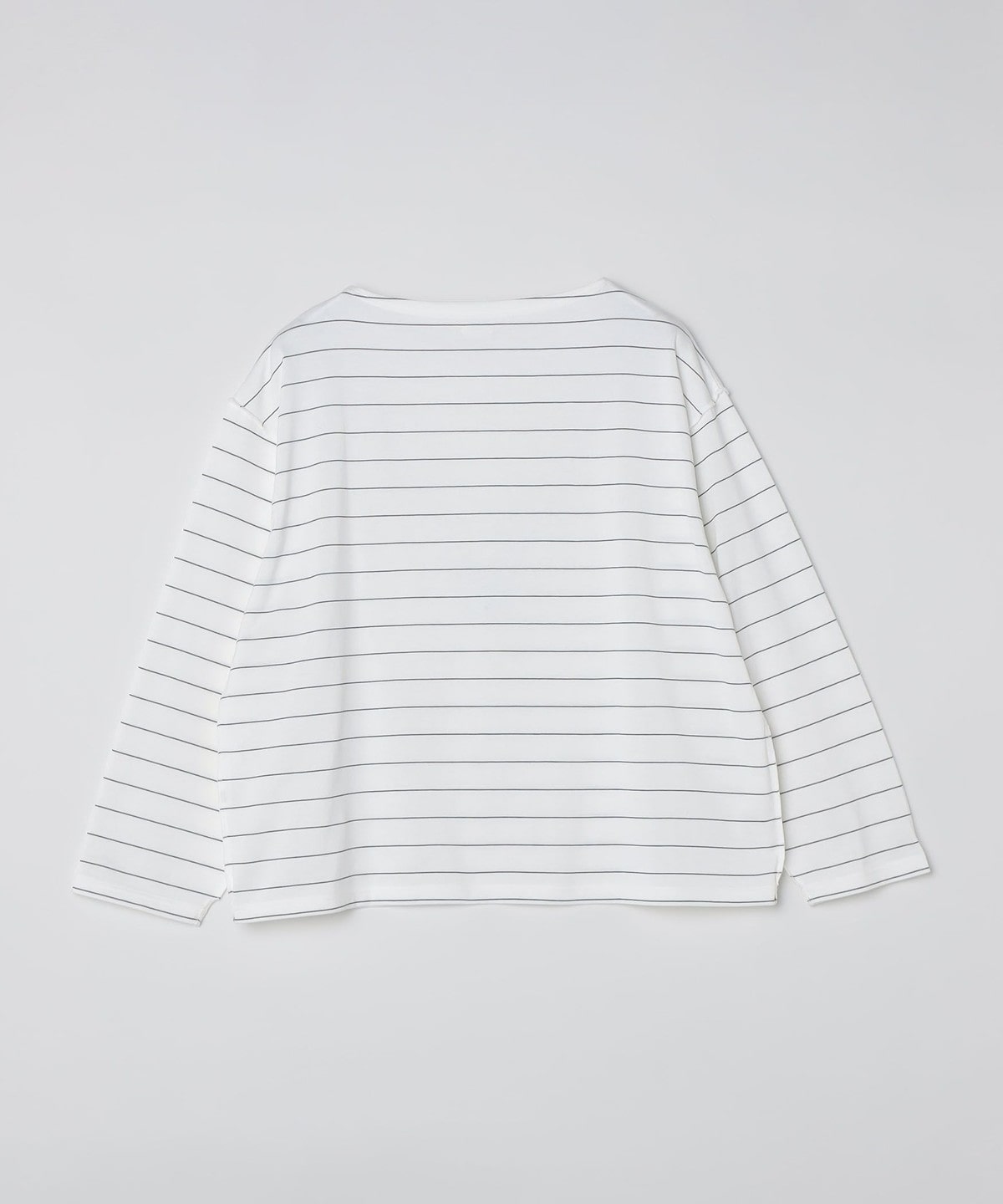 表面をガス焼きすることにより毛羽をなくし滑らかでミニマルなテキスタイル感のボーダー生地に仕上げています。