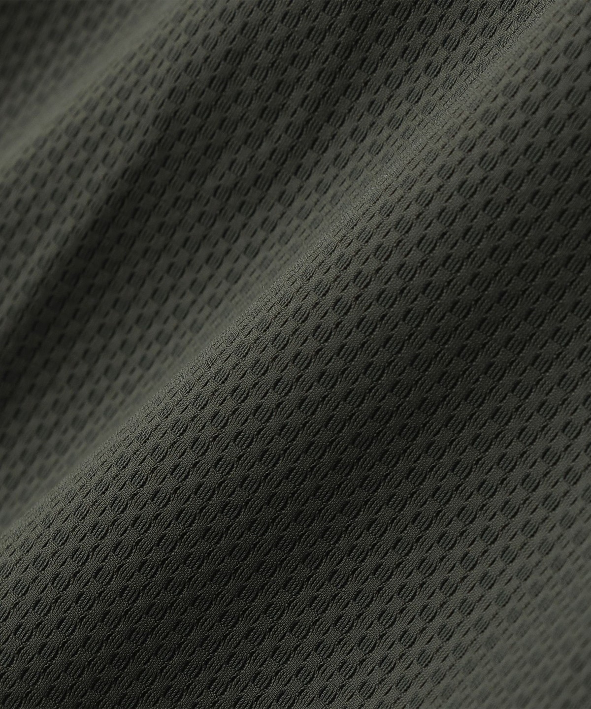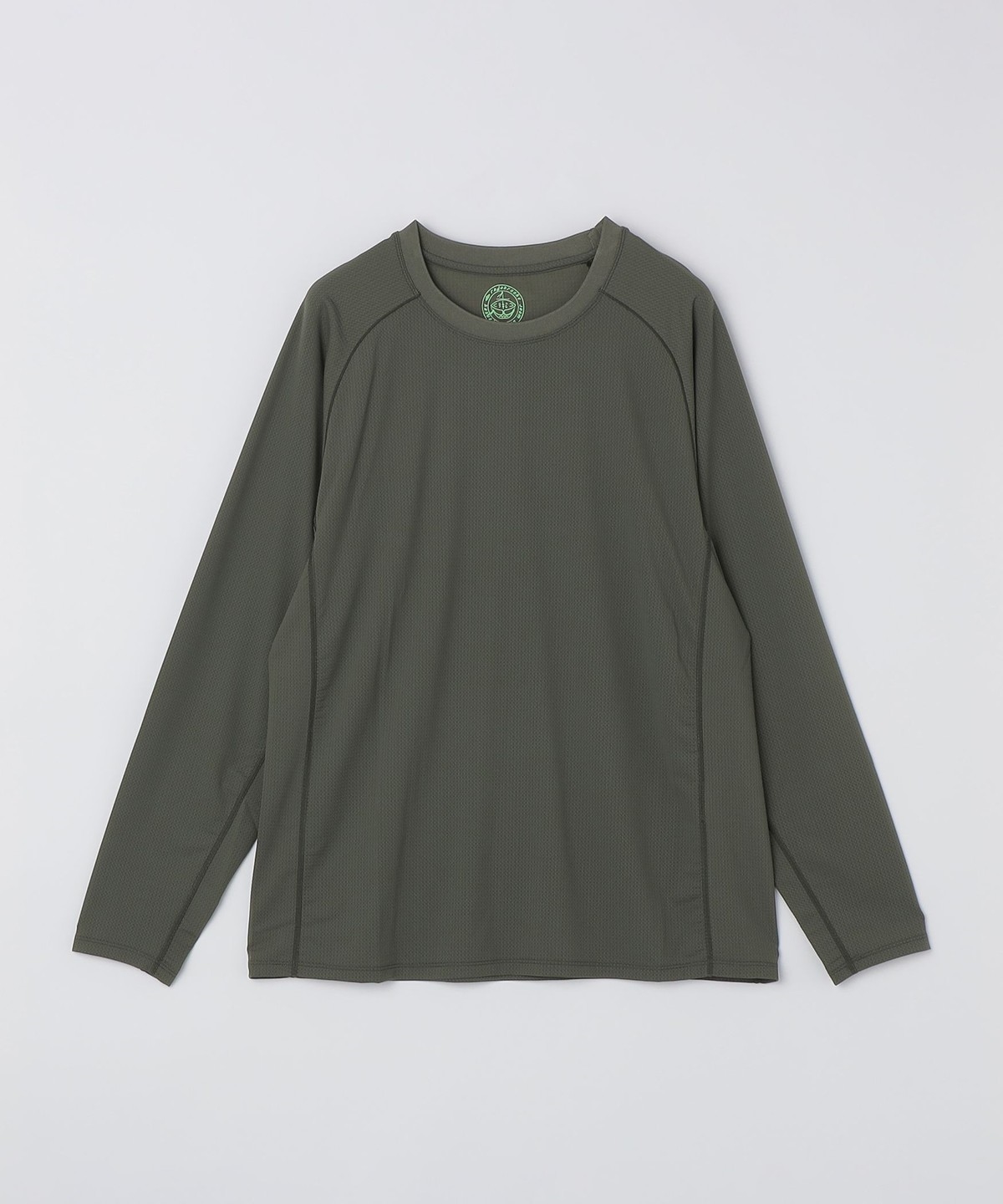 キックバックのよい、柄のようなメッシュ素材を使用したロングスリーブTEE。