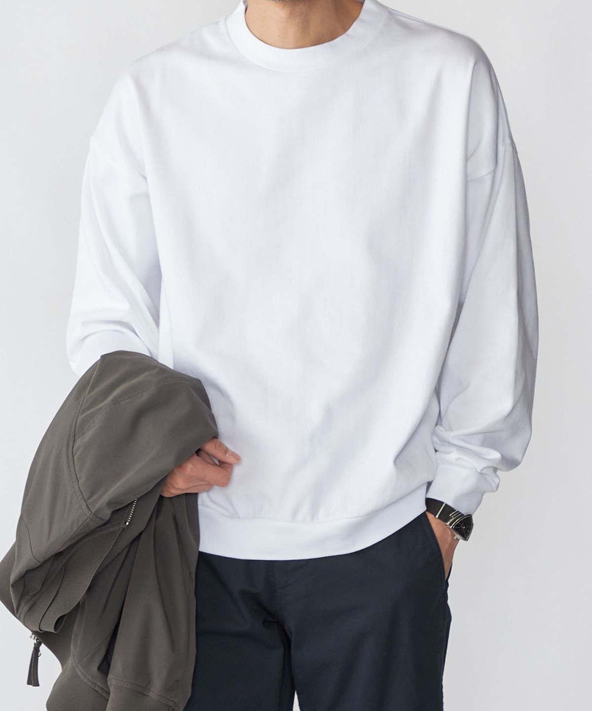 しっかりした肉感とハリがあり、スウェット未満ロンT以上の使い勝手の良い厚みに仕上げました。