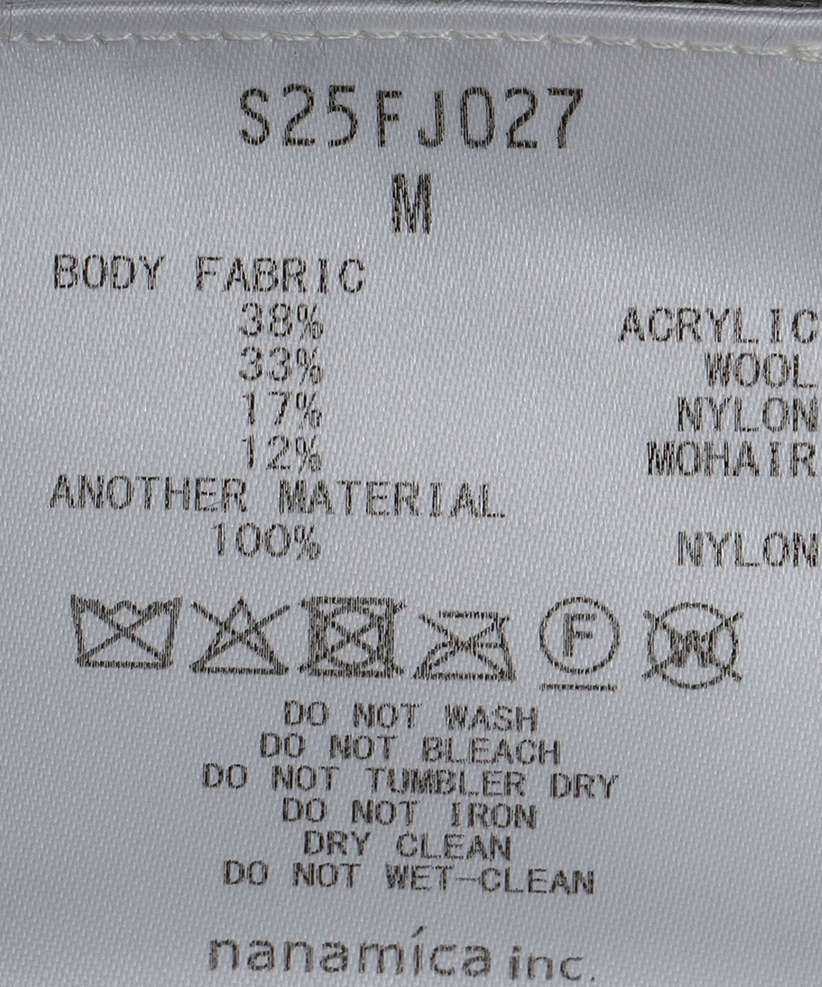 素材:身生地: アクリル38%, 毛33%, ナイロン17%, モヘヤ12%, 別布: ナイロン100%