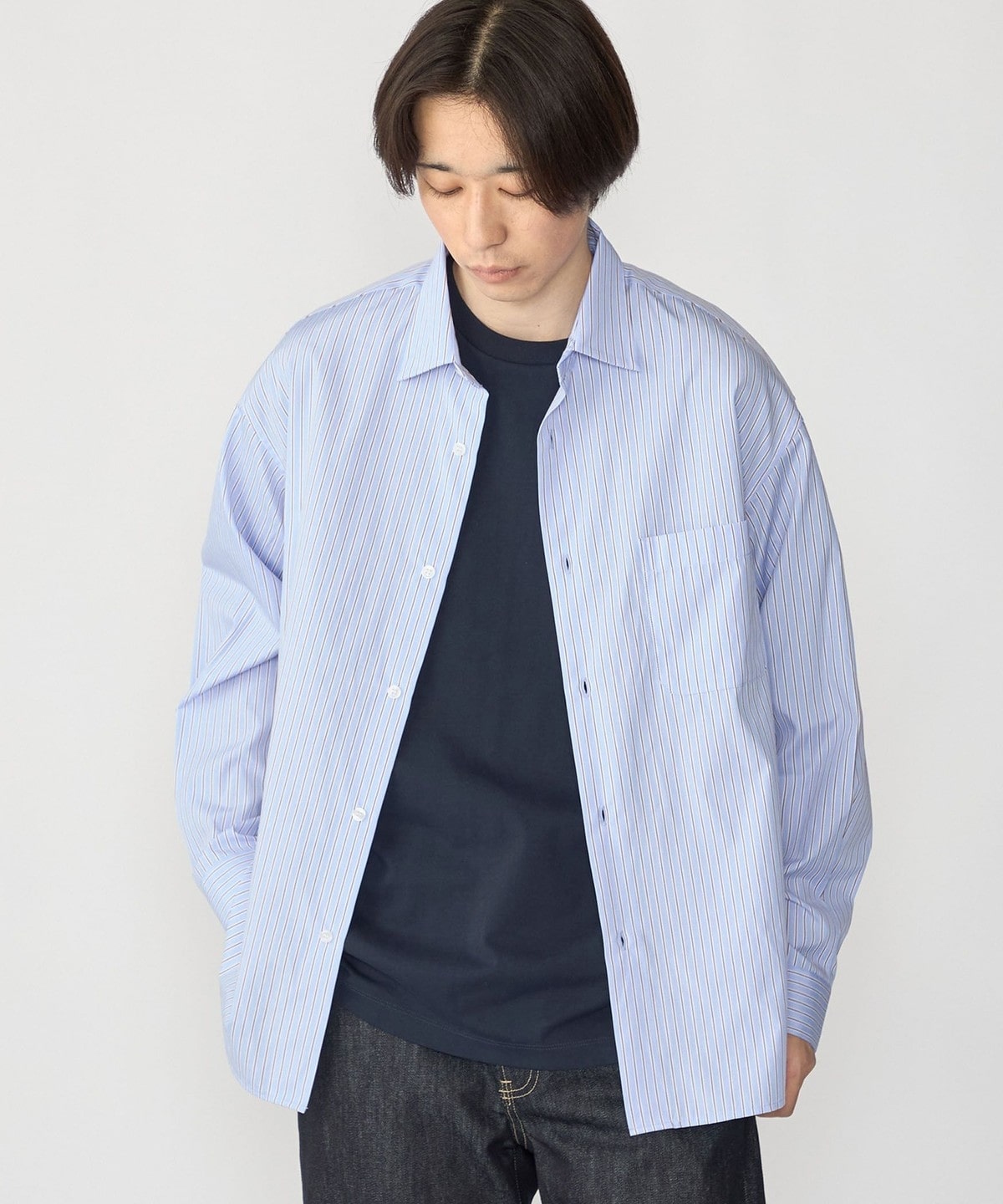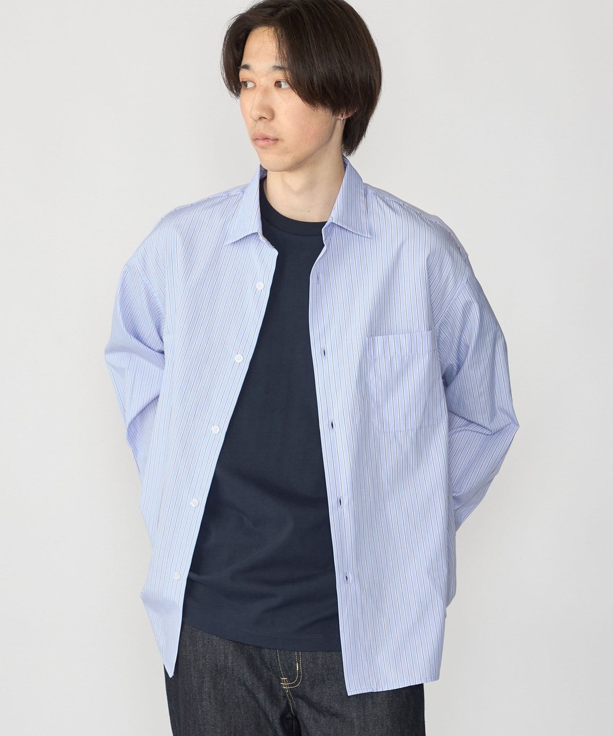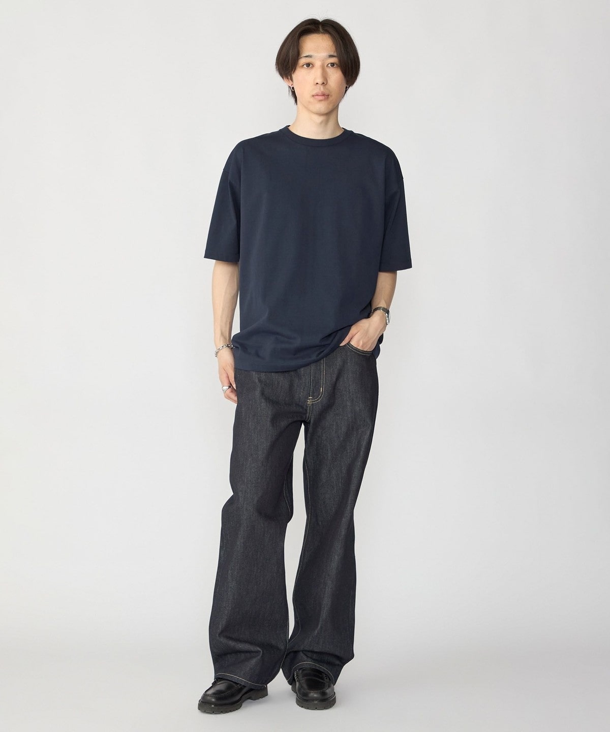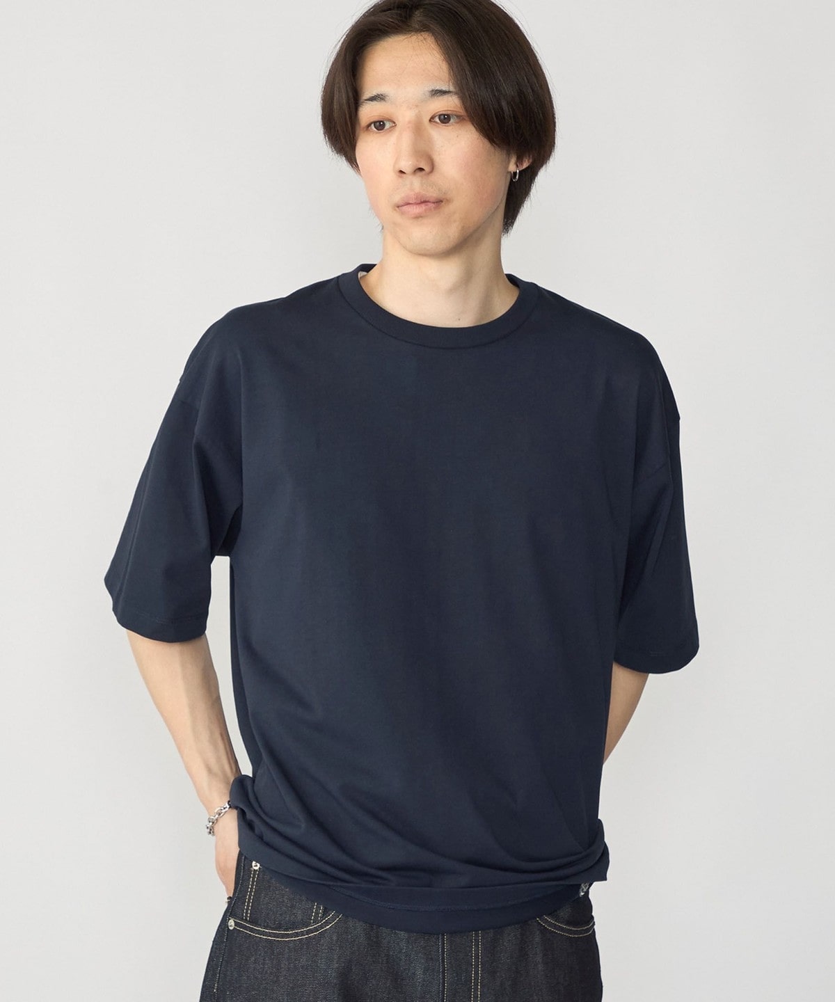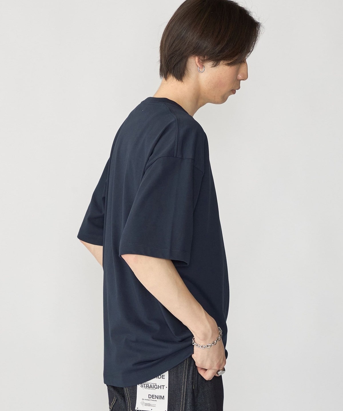 全体的にオーバーサイズですが、着丈は長くし過ぎず着用しやすいシルエットを追求しました。