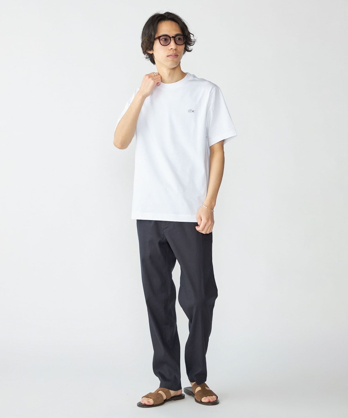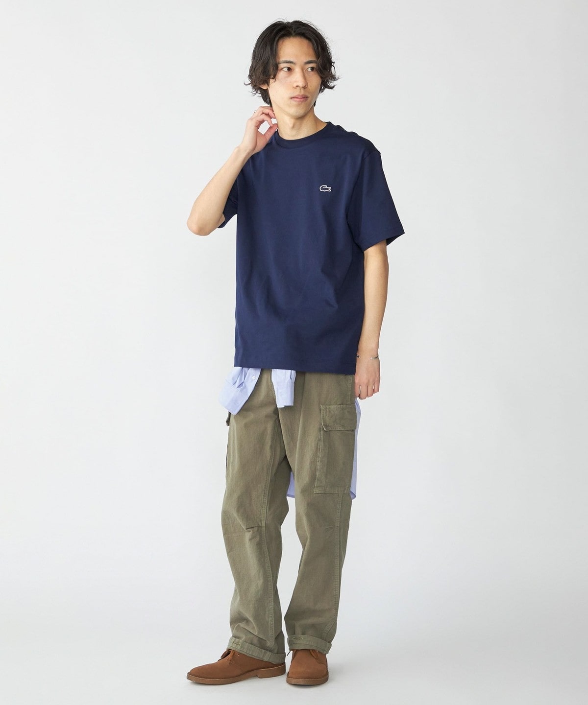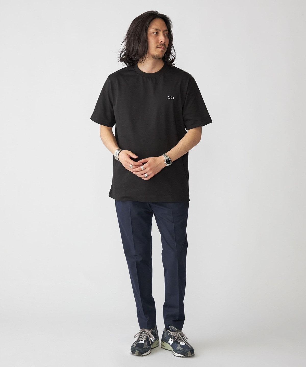 LACOSTEの定番クルーネックTシャツラコステ伝統のクラシックフィットシルエットで仕立てた、定番のクルーネックTシャツ。左胸には、アウトラインだけに配色を残した、ボディと同色のクロックエンブレムを配置。例年に比べてヘビーオンスのボディでアップデートした、エッセンシャルな1枚です。
