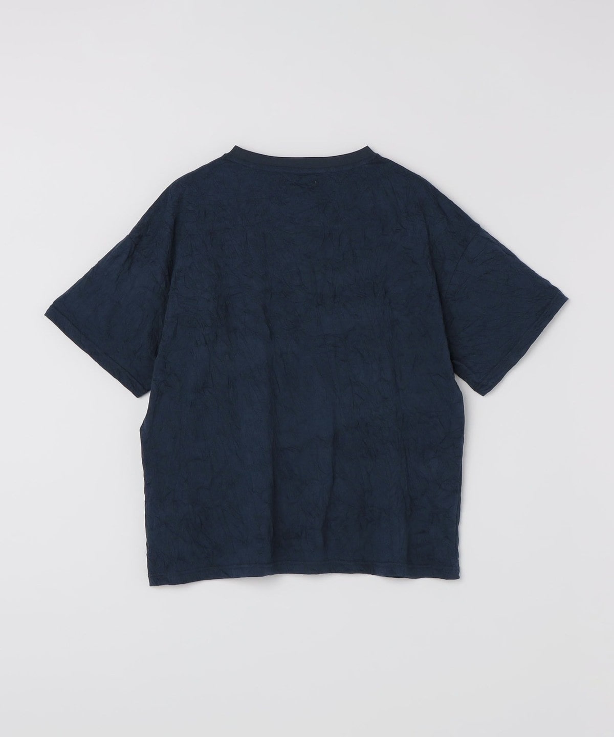 生地全体に施されたシワ加工が、このTシャツに独特な、着古したような風合いを与えています。