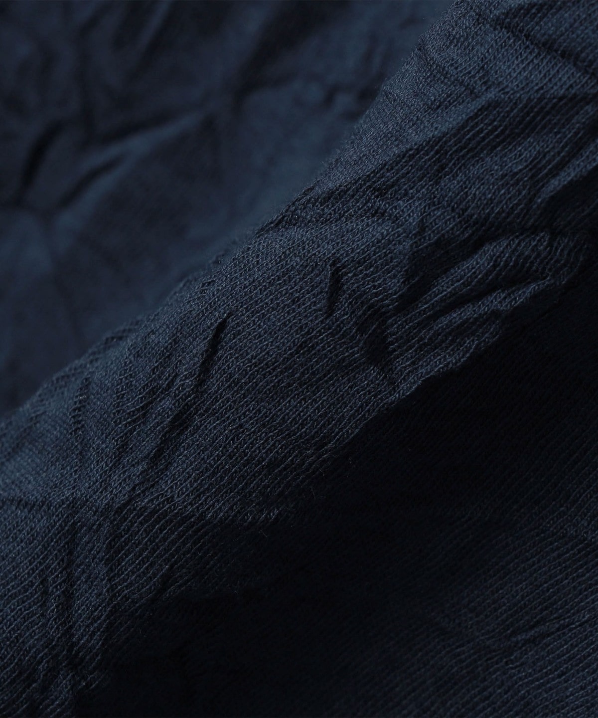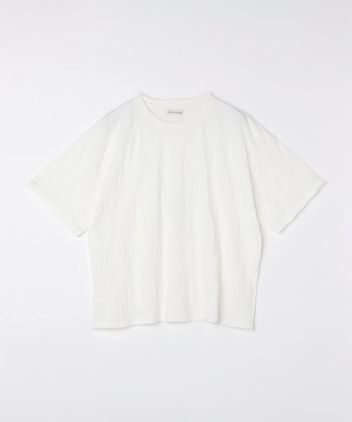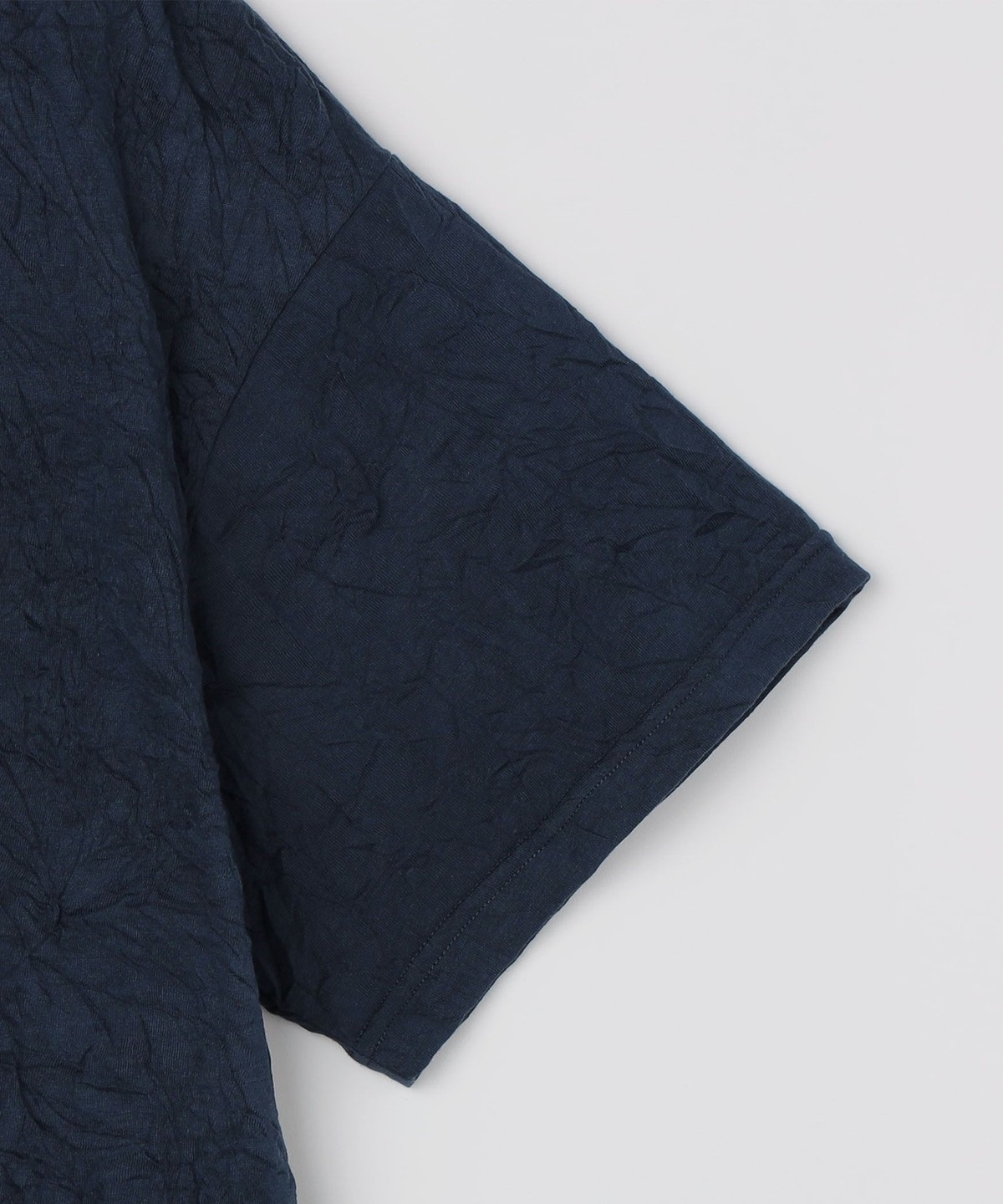 クロップド丈のボックスシルエットが特徴で、特殊なシワ加工を施したコットンポリエステルジャージー素材を採用。