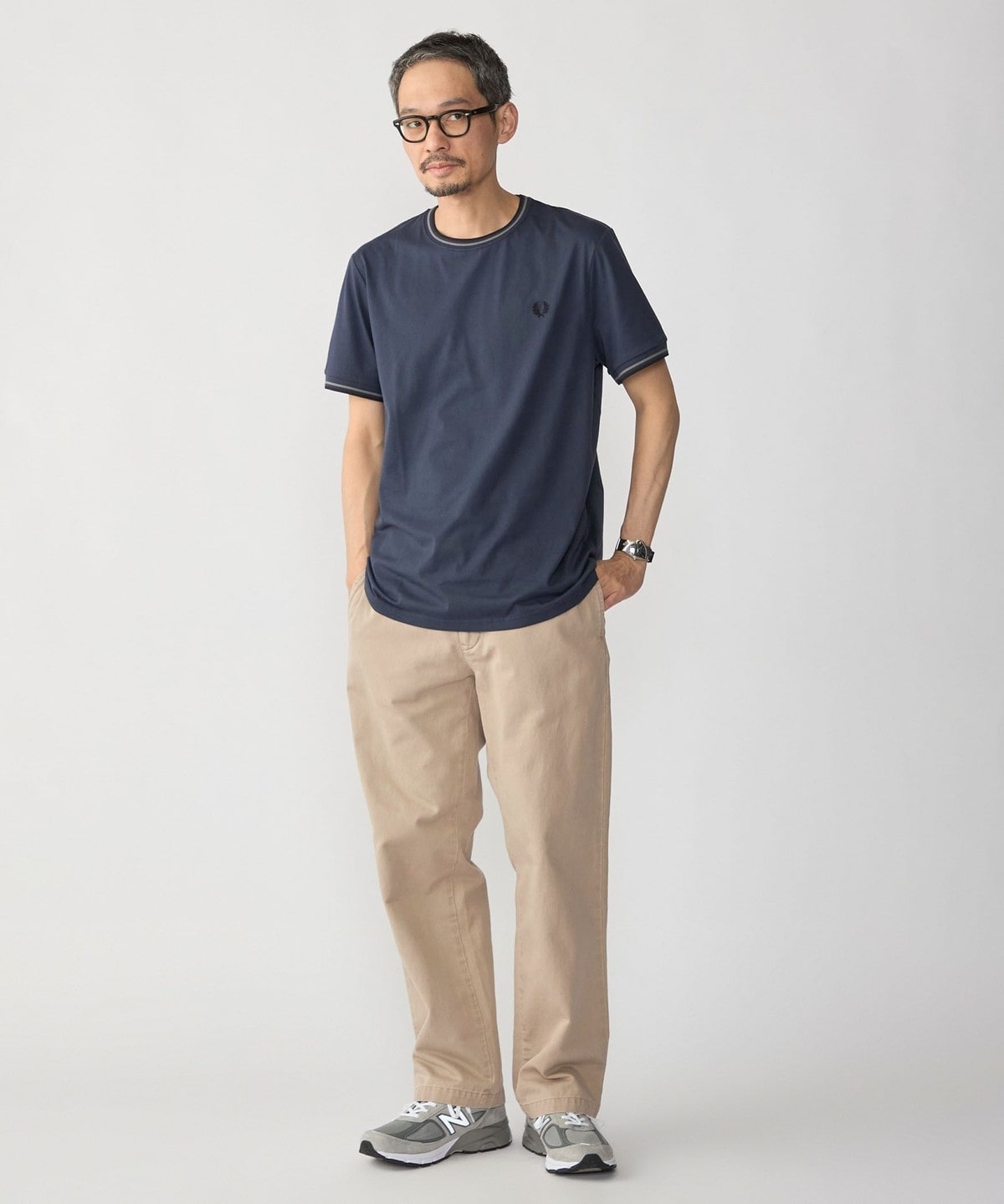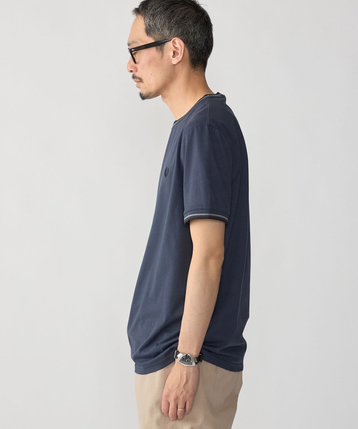 "FRED PERRY(フレッドペリー)"のシグニチャーであるティップラインを施したクルーネックTシャツ