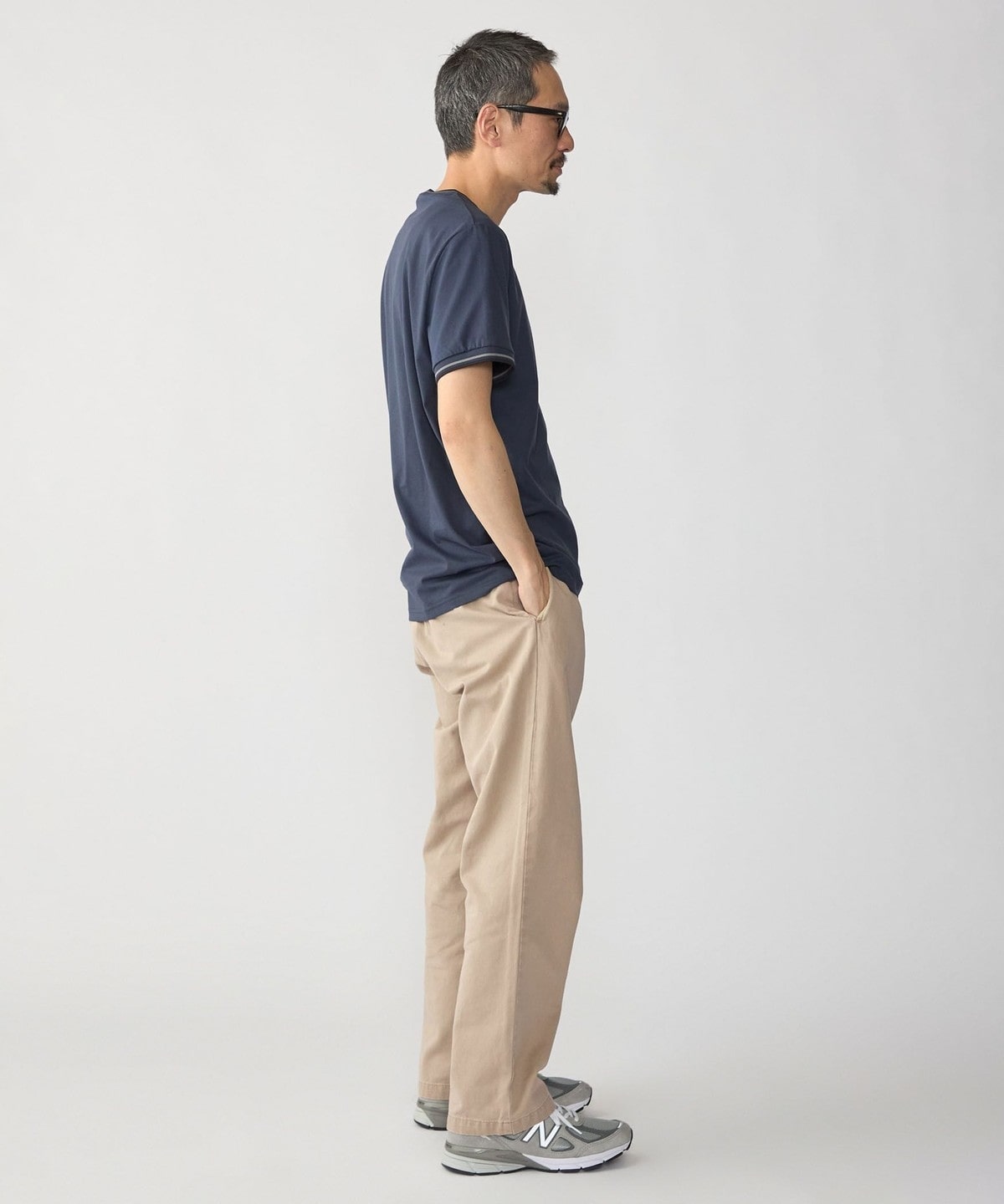 コットン100%のきれいめな細番手の糸を高密度で編み立てたソフトでリッチな生地を使用。