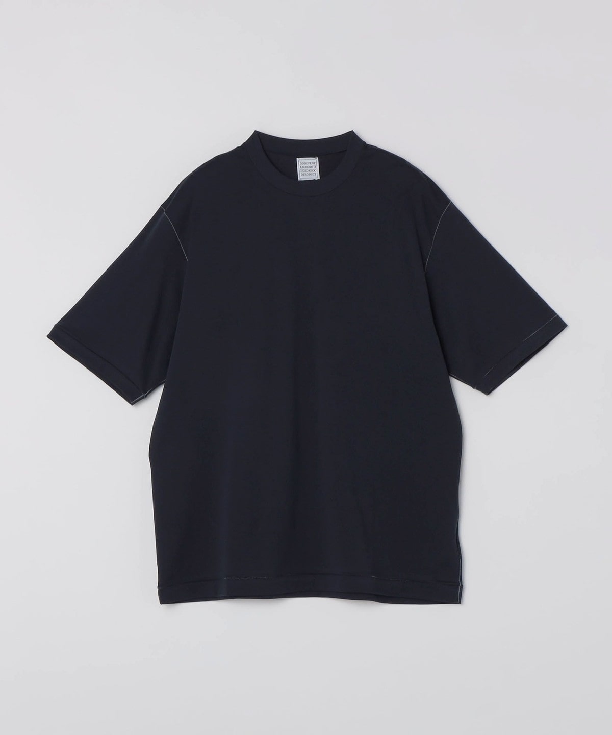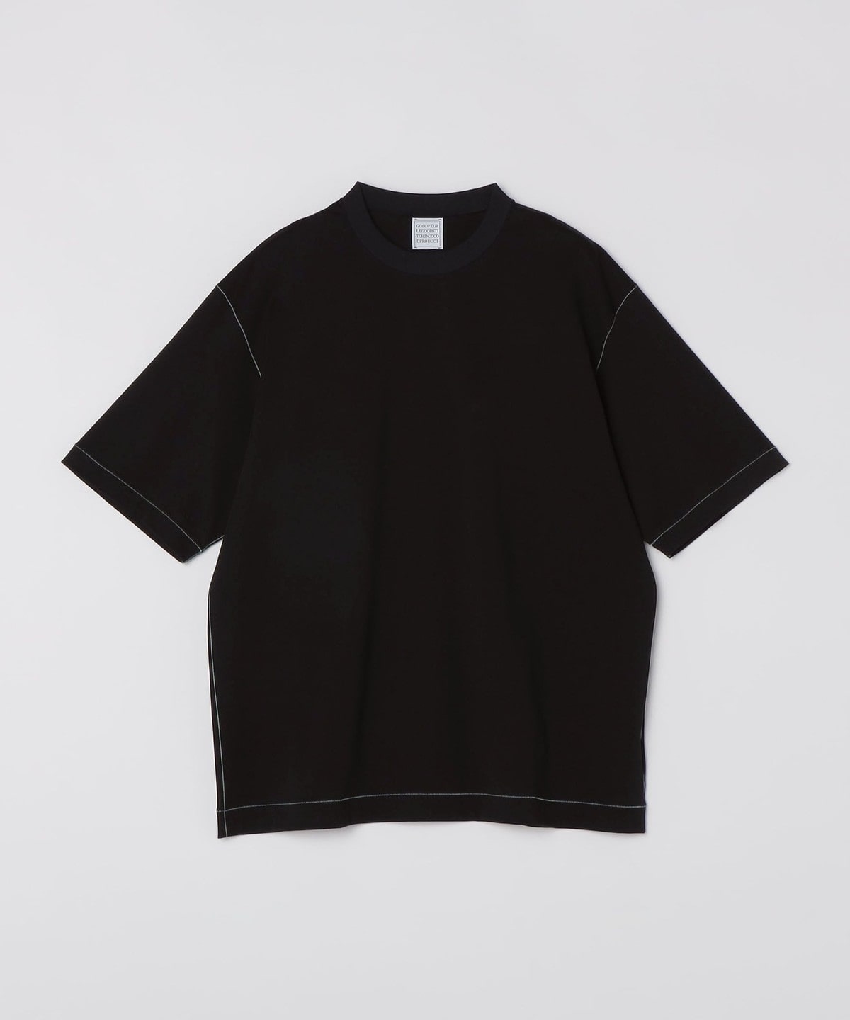 ワイドシルエットが特徴のカラーステッチ、クルーネックショートスリーブTシャツ
