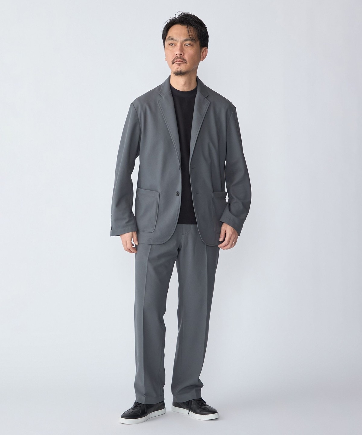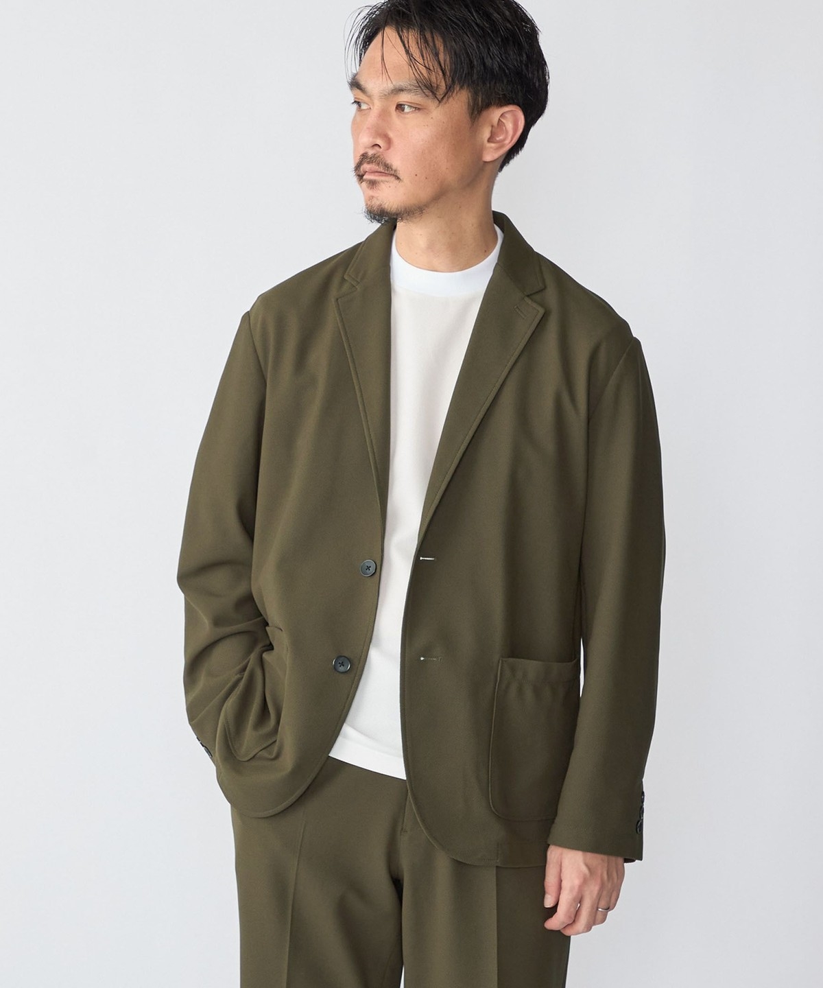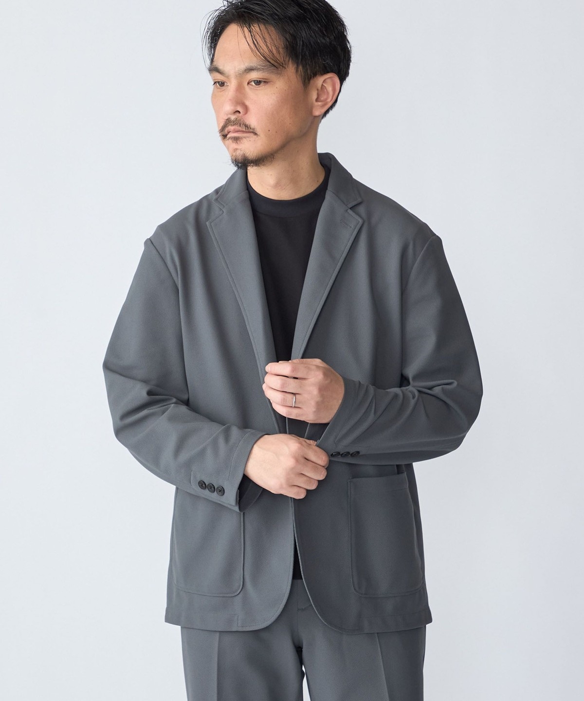 同素材でセットアップ着用可能なジャケット、パンツ、ポロシャツを展開。