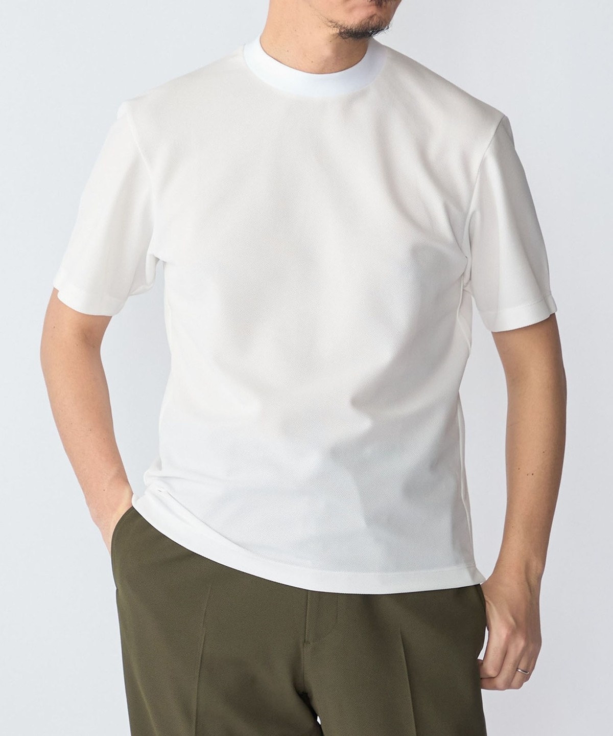 1枚着としてのスポーティな側面を持ちながらも、ジャケットのインナーにも合わせられるようデザインされた汎用性の高いアイテムです。
