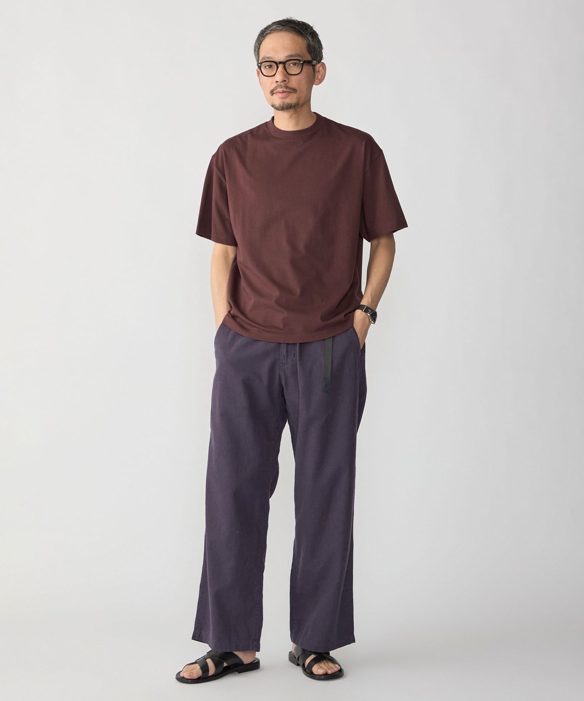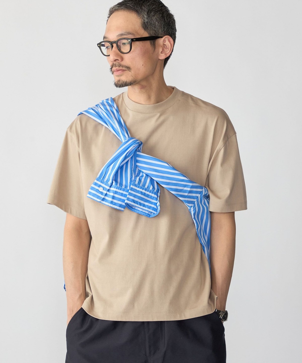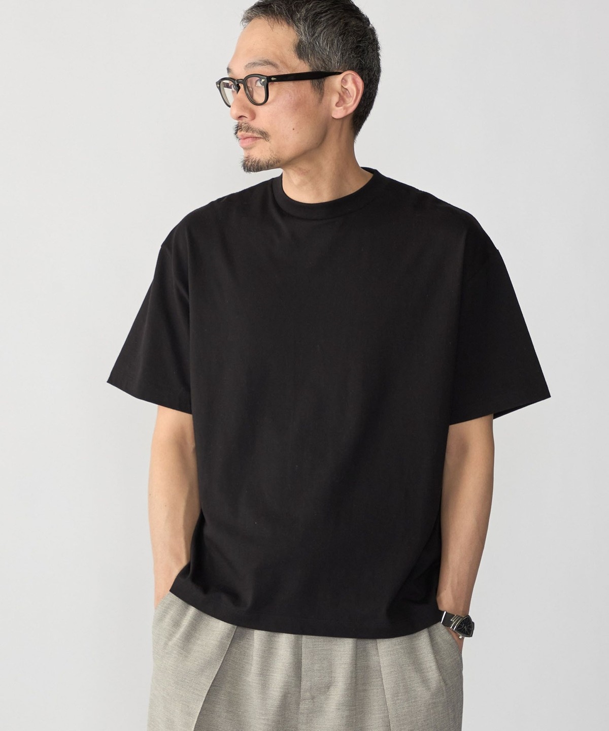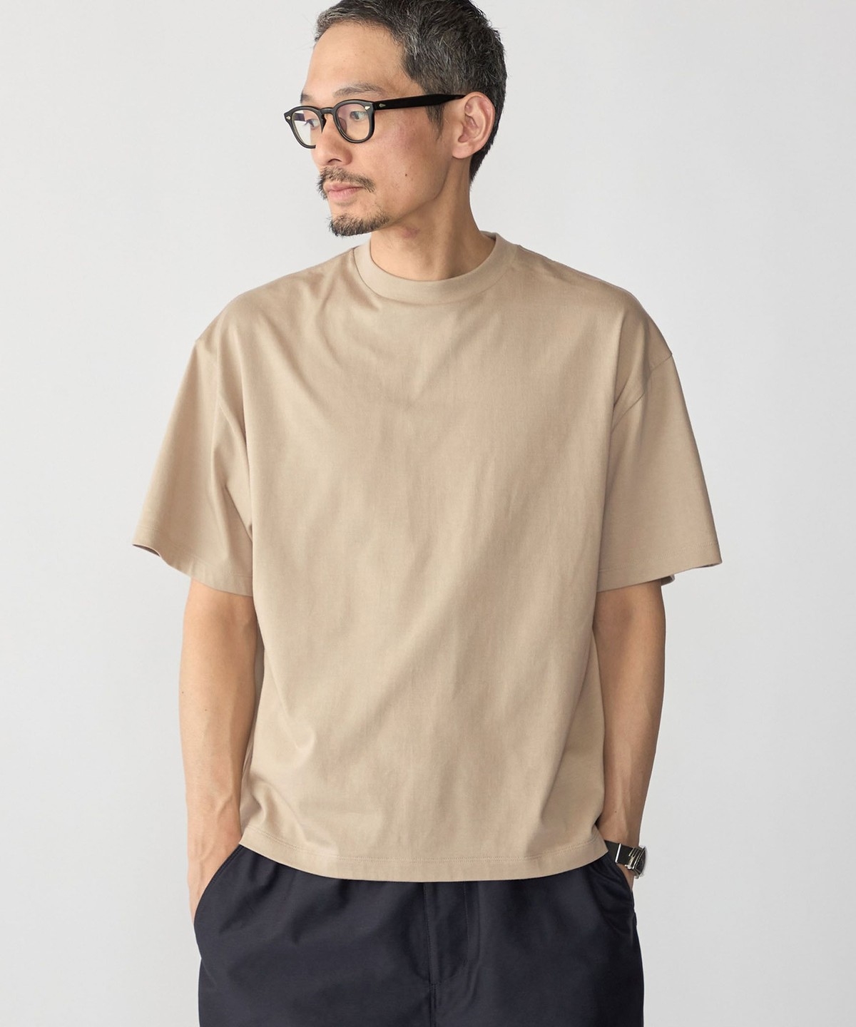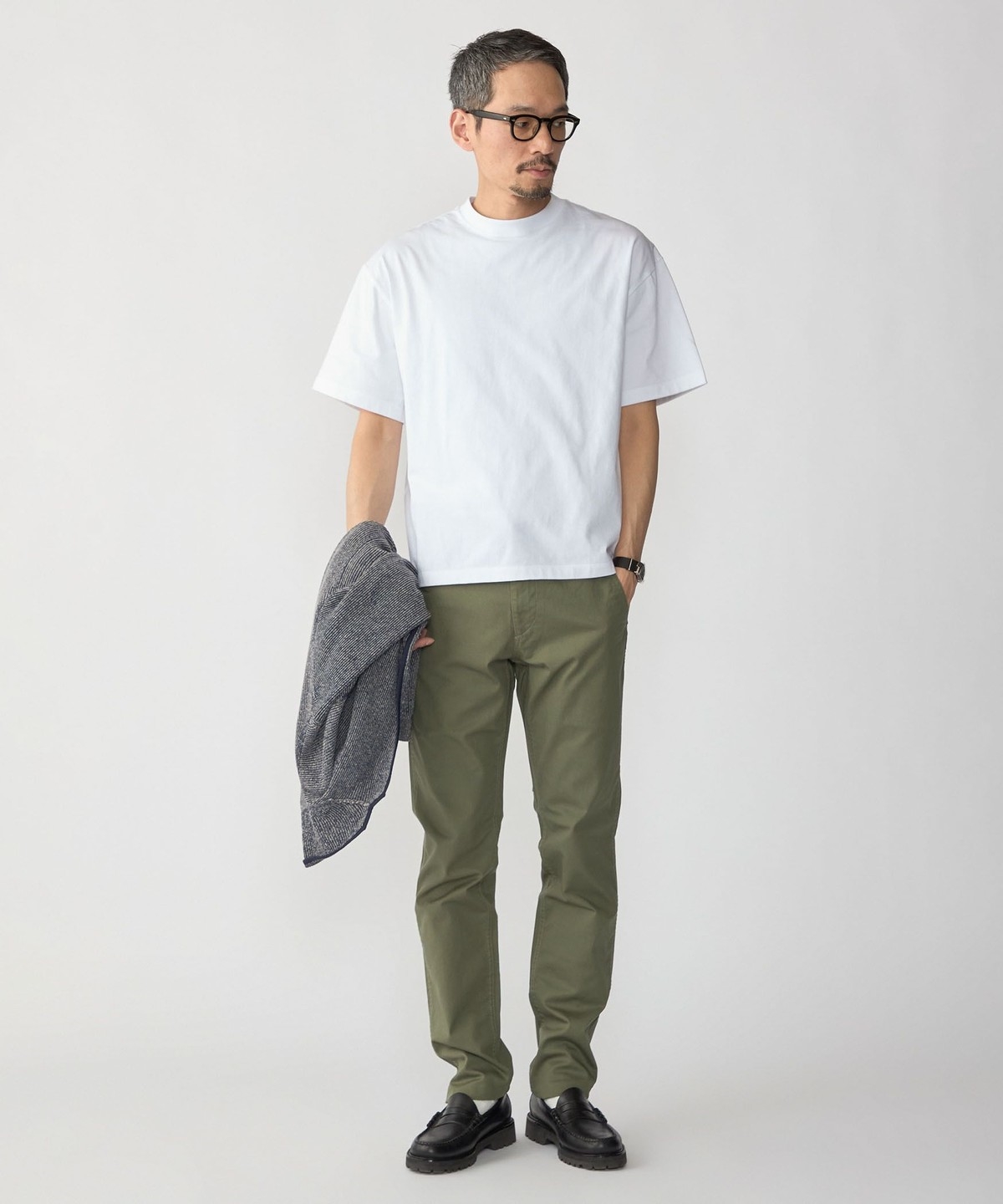 スッキリとした仕上がりなのでパンツはテーパードからワイドまで幅広く対応可能です。