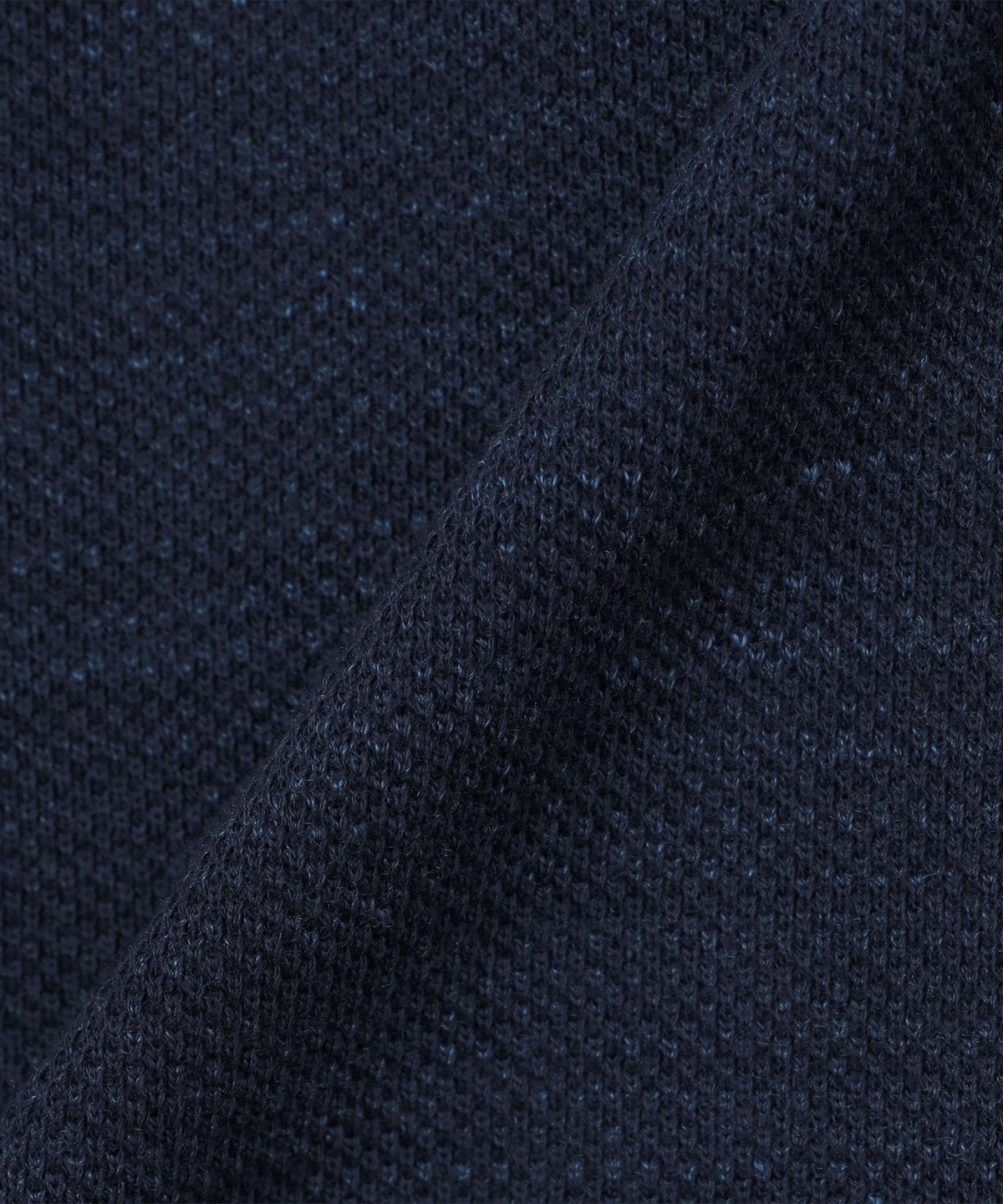 1枚でこなれた雰囲気を演出できるフェイクレイヤードTシャツ【素材特性・デザイン】鹿の子編み生地にネックと裾部分にフライス生地を配したフェイクレイヤードカットソー。