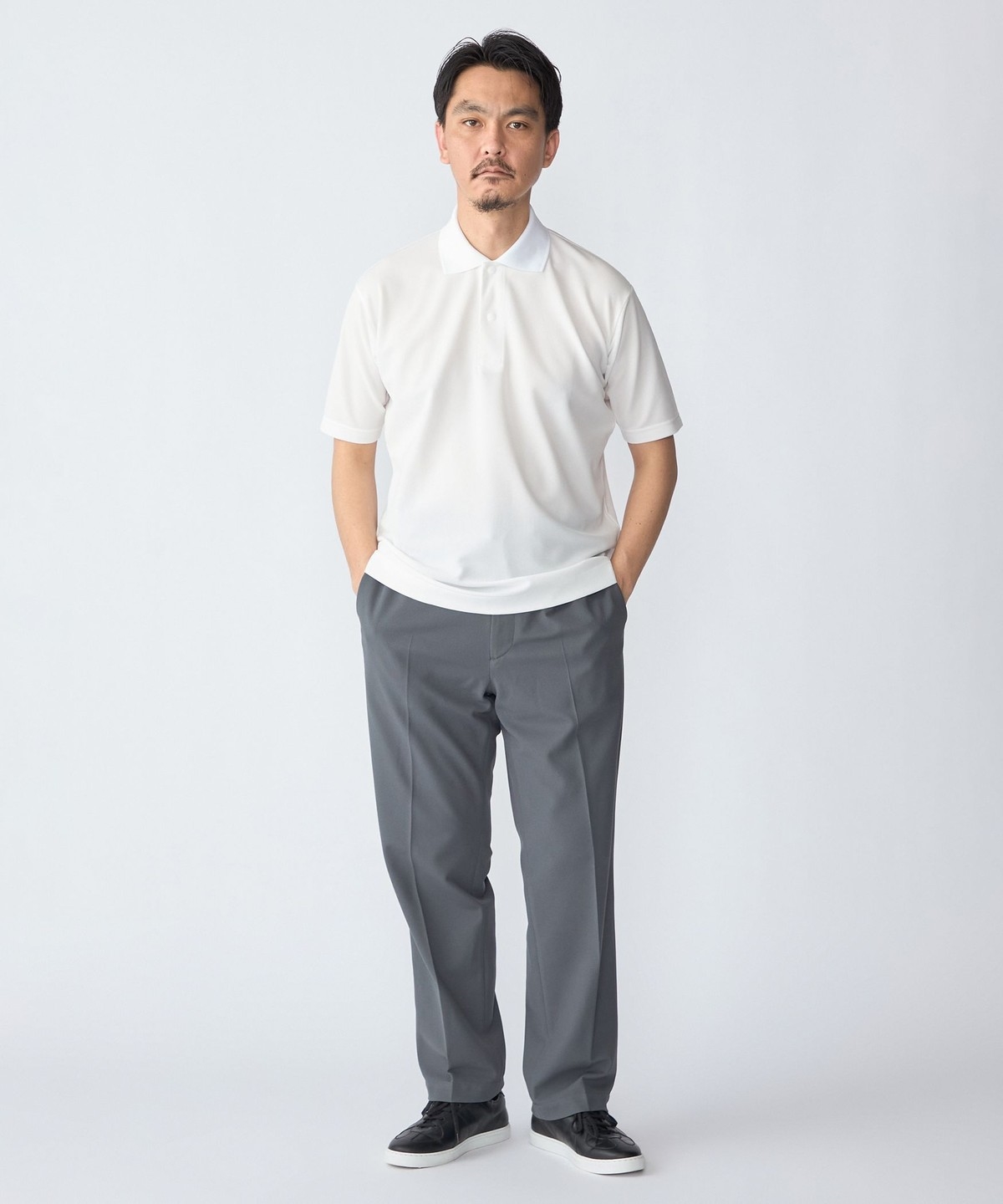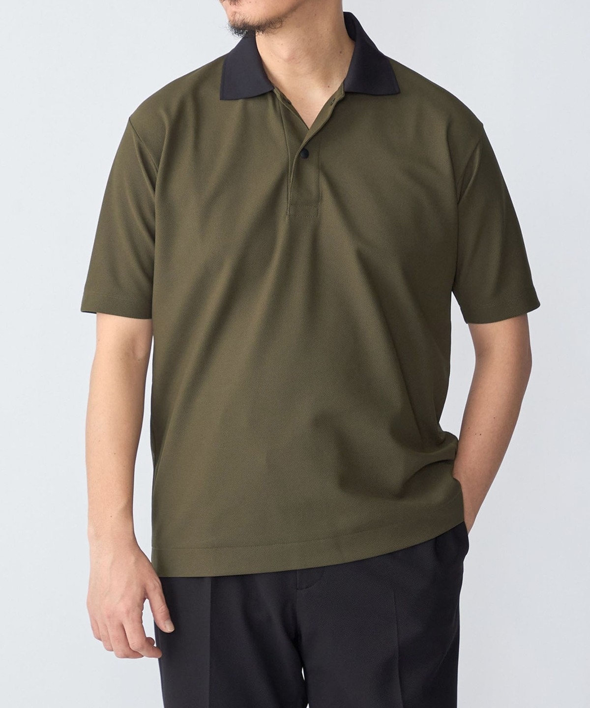 ポロシャツの顔である衿の形状をシャープで高級感のあるデザインにし、ルーズになり過ぎず上品な仕上がりに。
