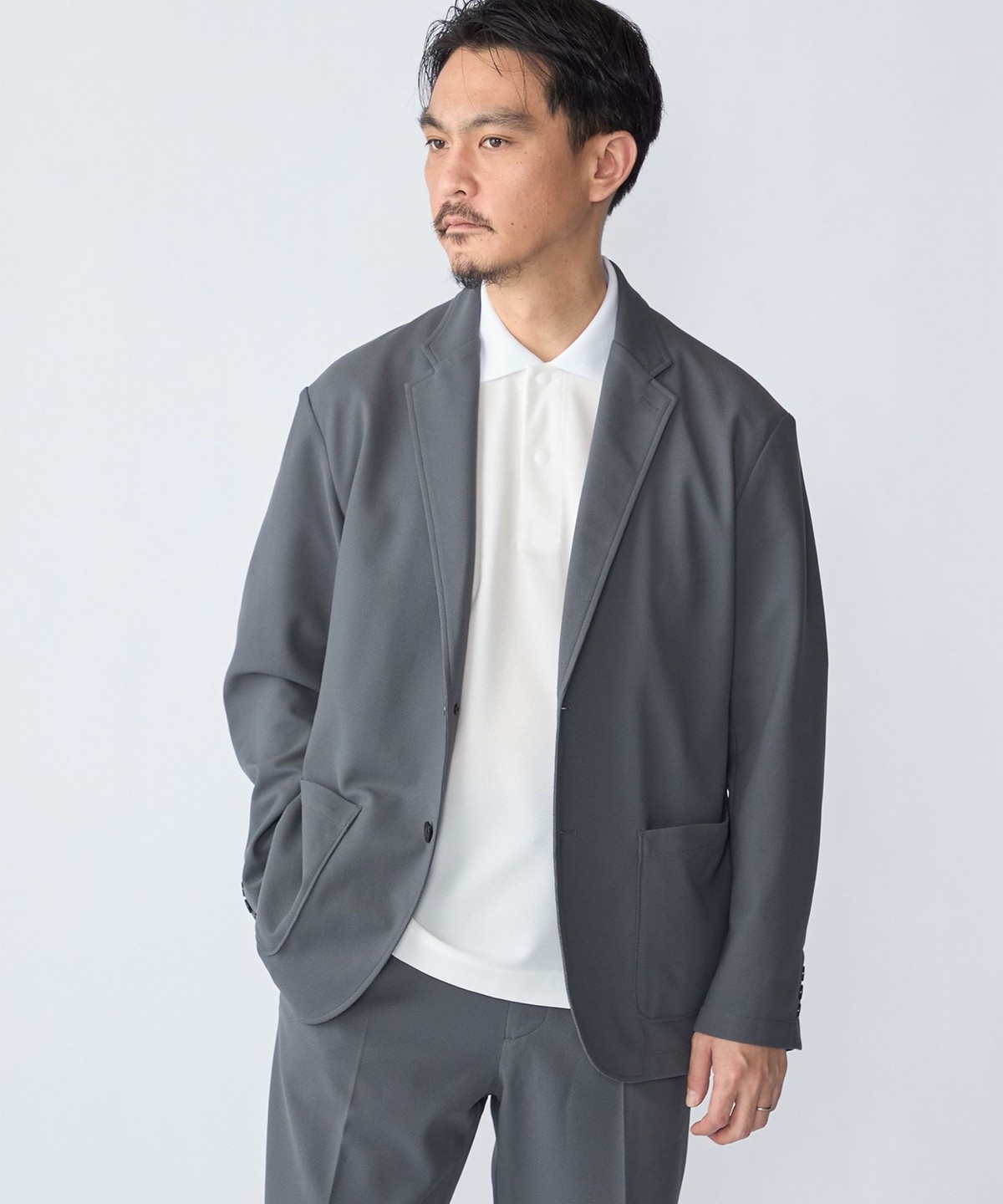 1枚着としてのスポーティな側面を持ちながらも、ジャケットのインナーにも合わせられるようデザインされた汎用性の高いアイテムです。
