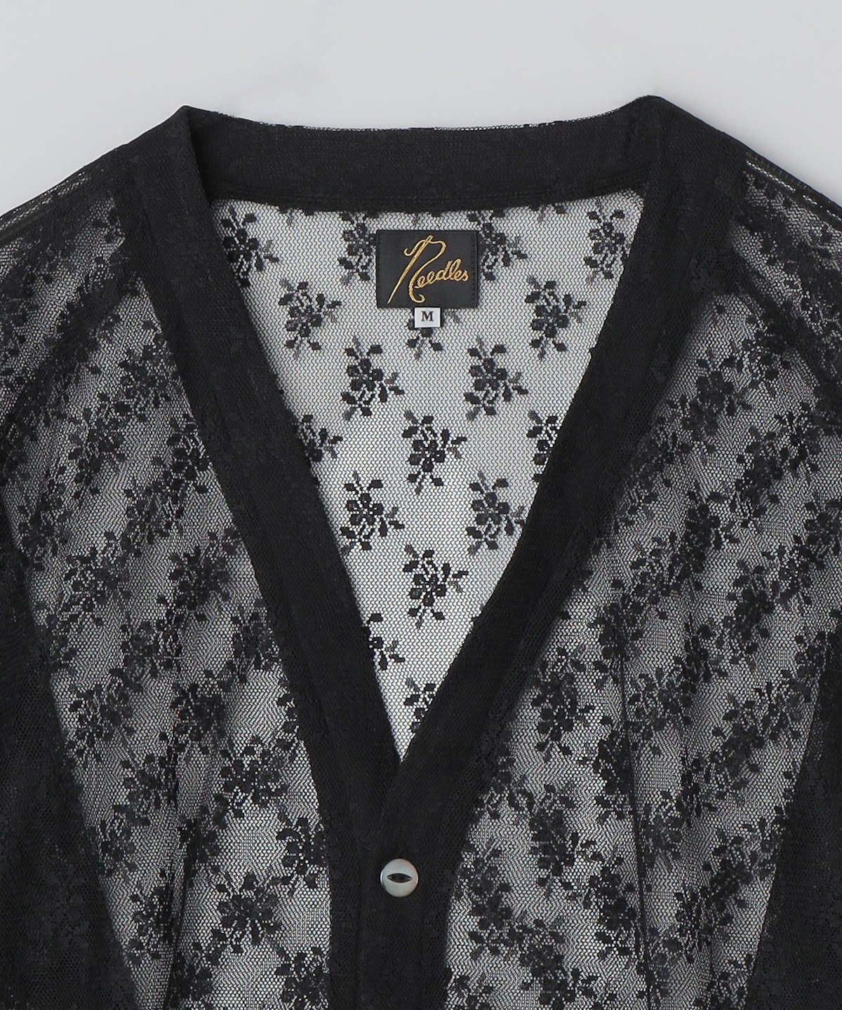 NEEDLESのラッセルレース素材の定番カーディガン。