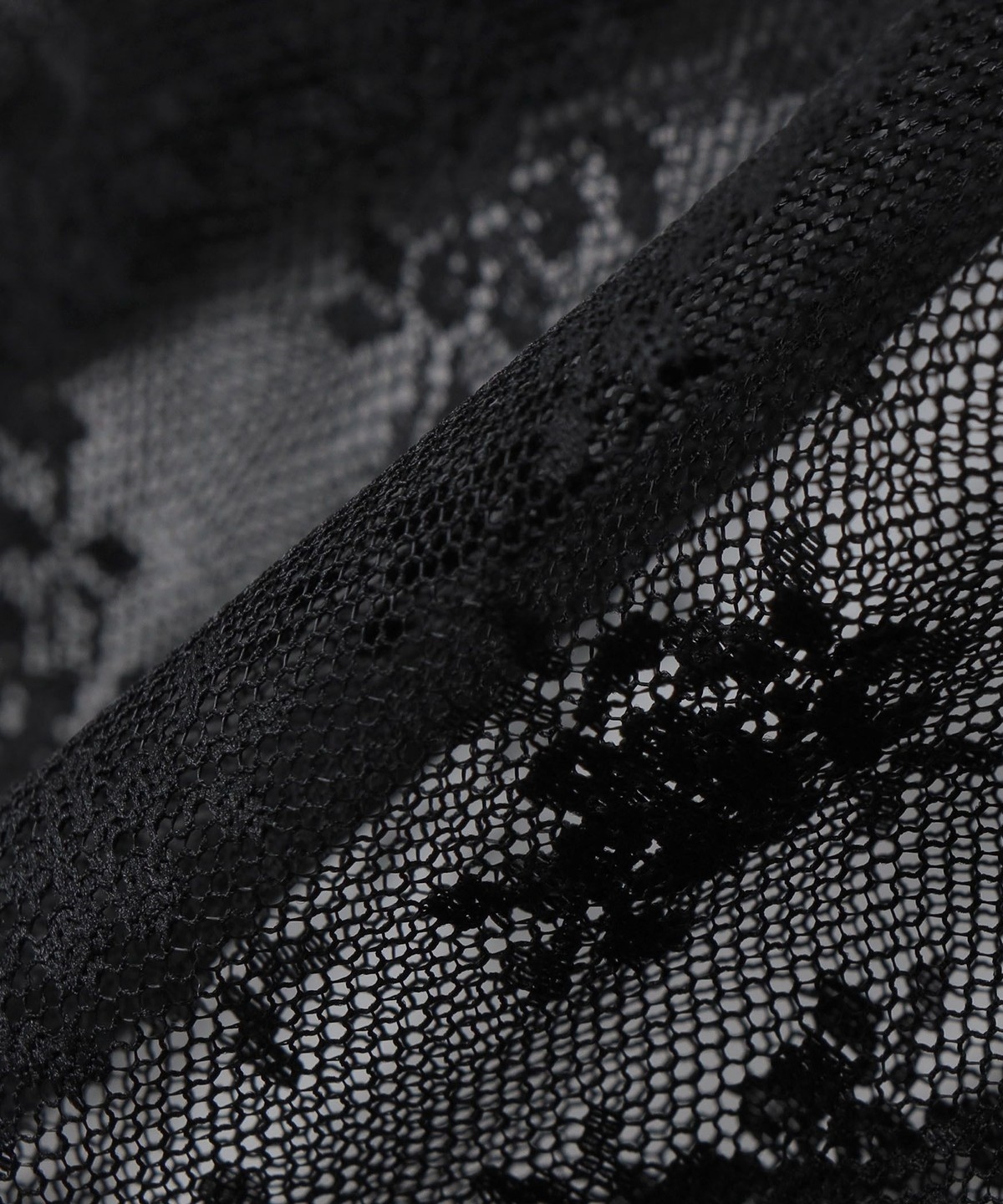 立体的に編み上げたラッセルレース素材は、ポリエステル特有の軽さと耐久性に加え、透け感が生む繊細な表情が特徴です。