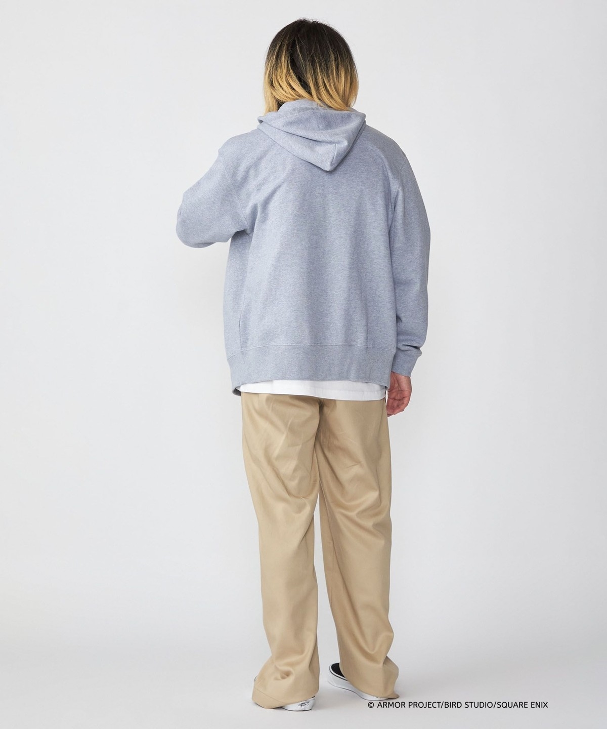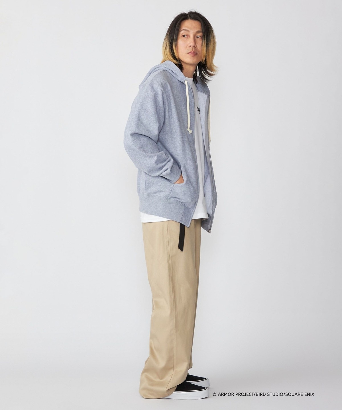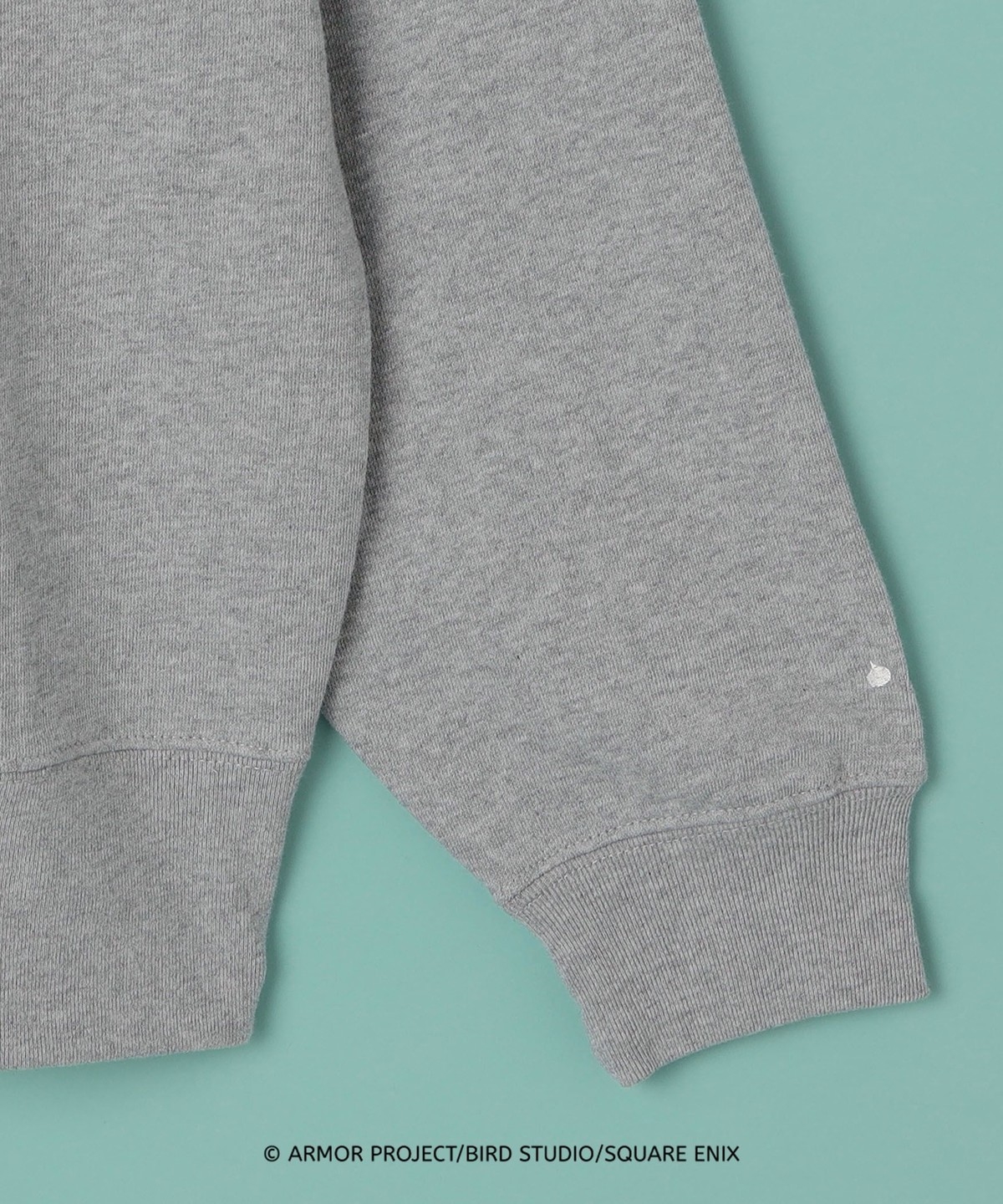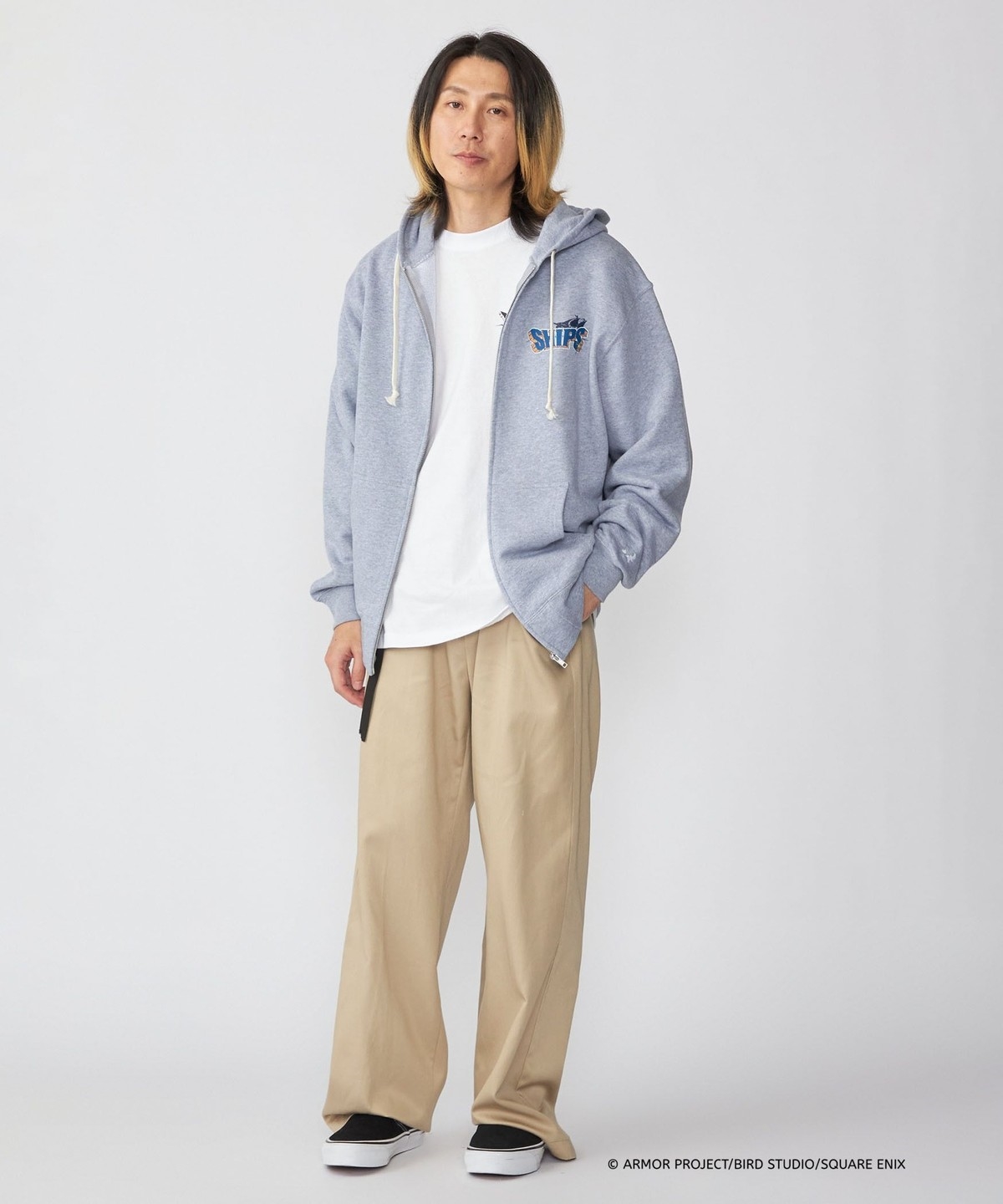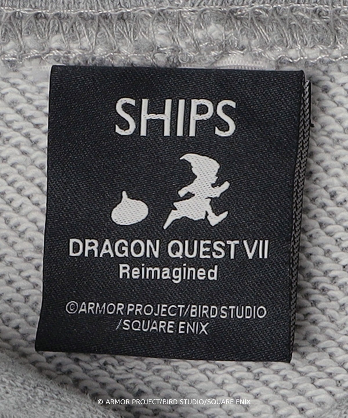 ドラゴンクエストシリーズのタイトルロゴをイメージしてデザインされた、遊び心あふれるSHIPSロゴを左胸に配したジップアップフーディー。袖口には、『ドラゴンクエストZ Reimagined』の主人公とスライムの「追いかけっこシルエット」が刺繍でさりげなく施され、シンプルながらコラボのエッセンスが光る一着に。KIDSサイズの展開もあり、親子でリンクコーデもお楽しみいただけます。