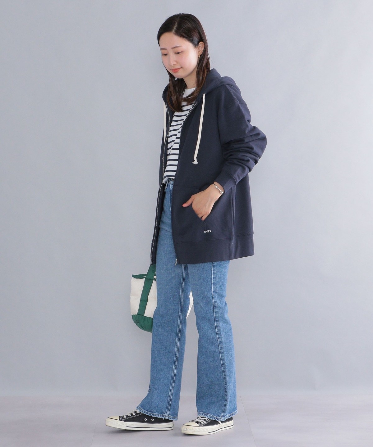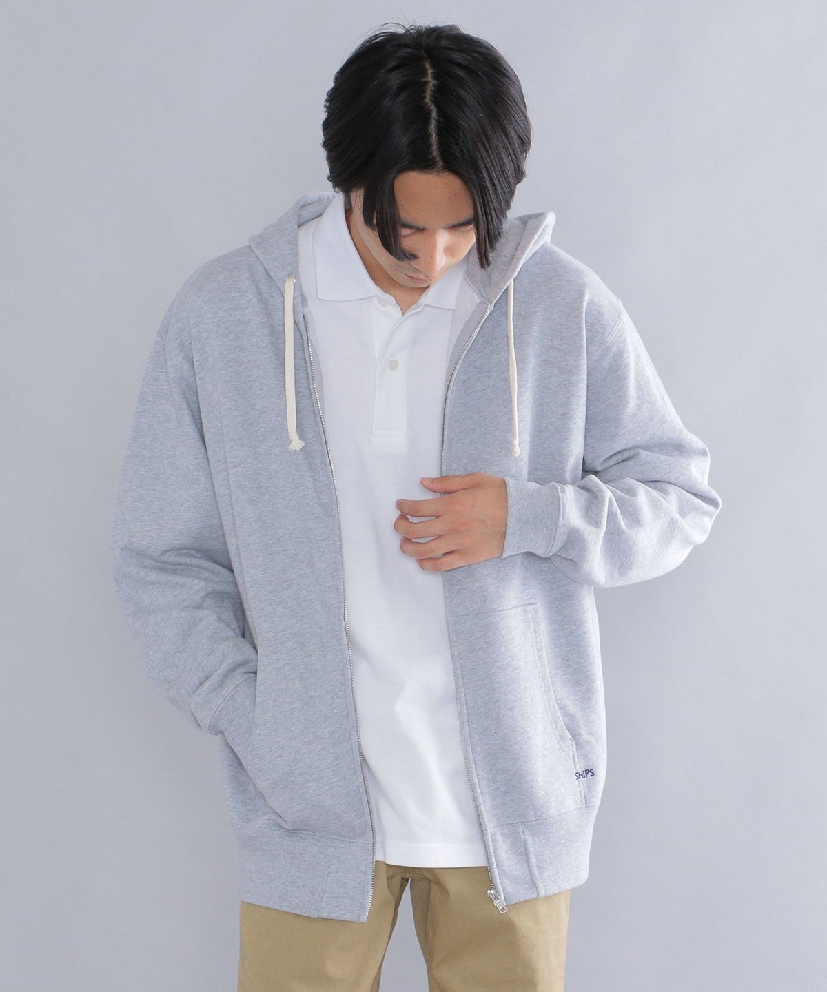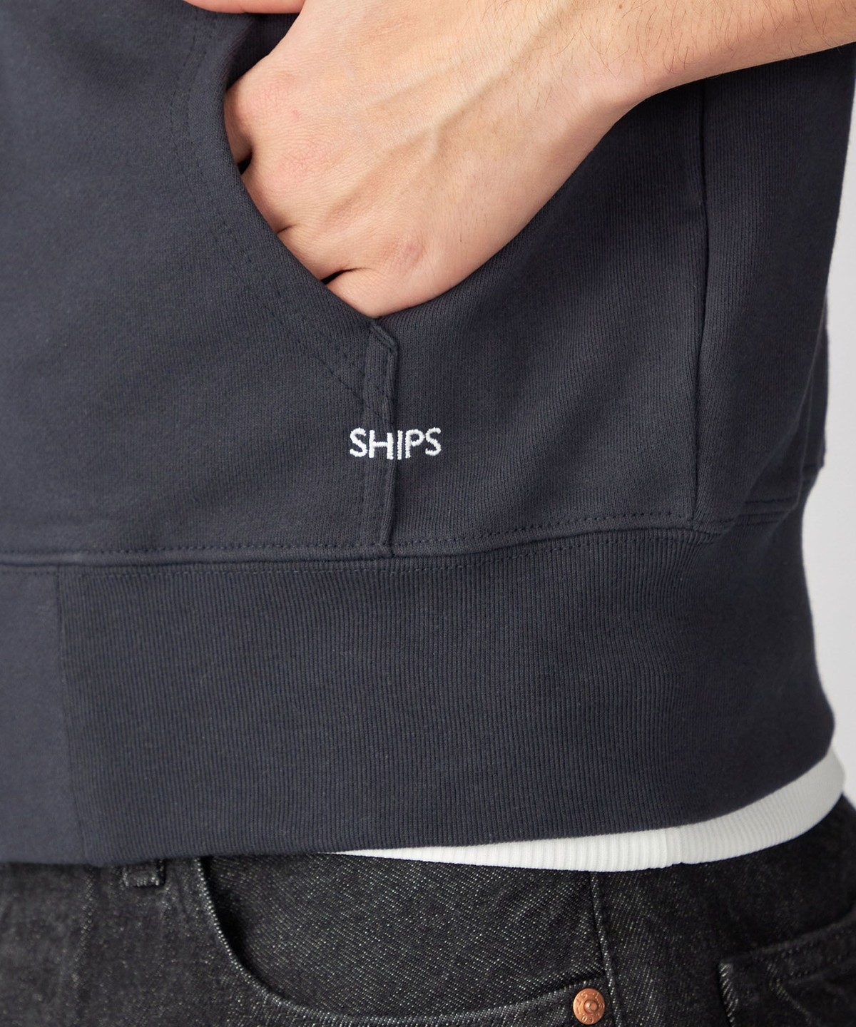 > SHIPS:【WEB限定】SHIPS: マイクロ SHIPS 刺繍 ロゴ 裏毛 スウェット ジップ パーカー