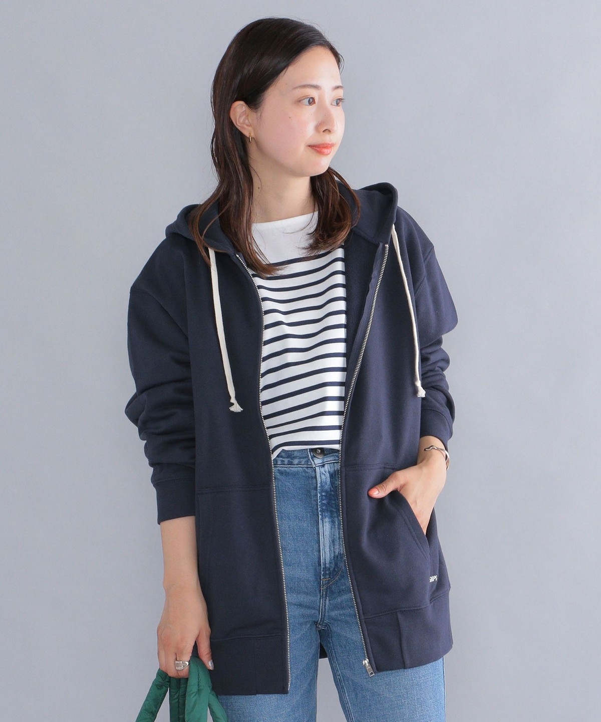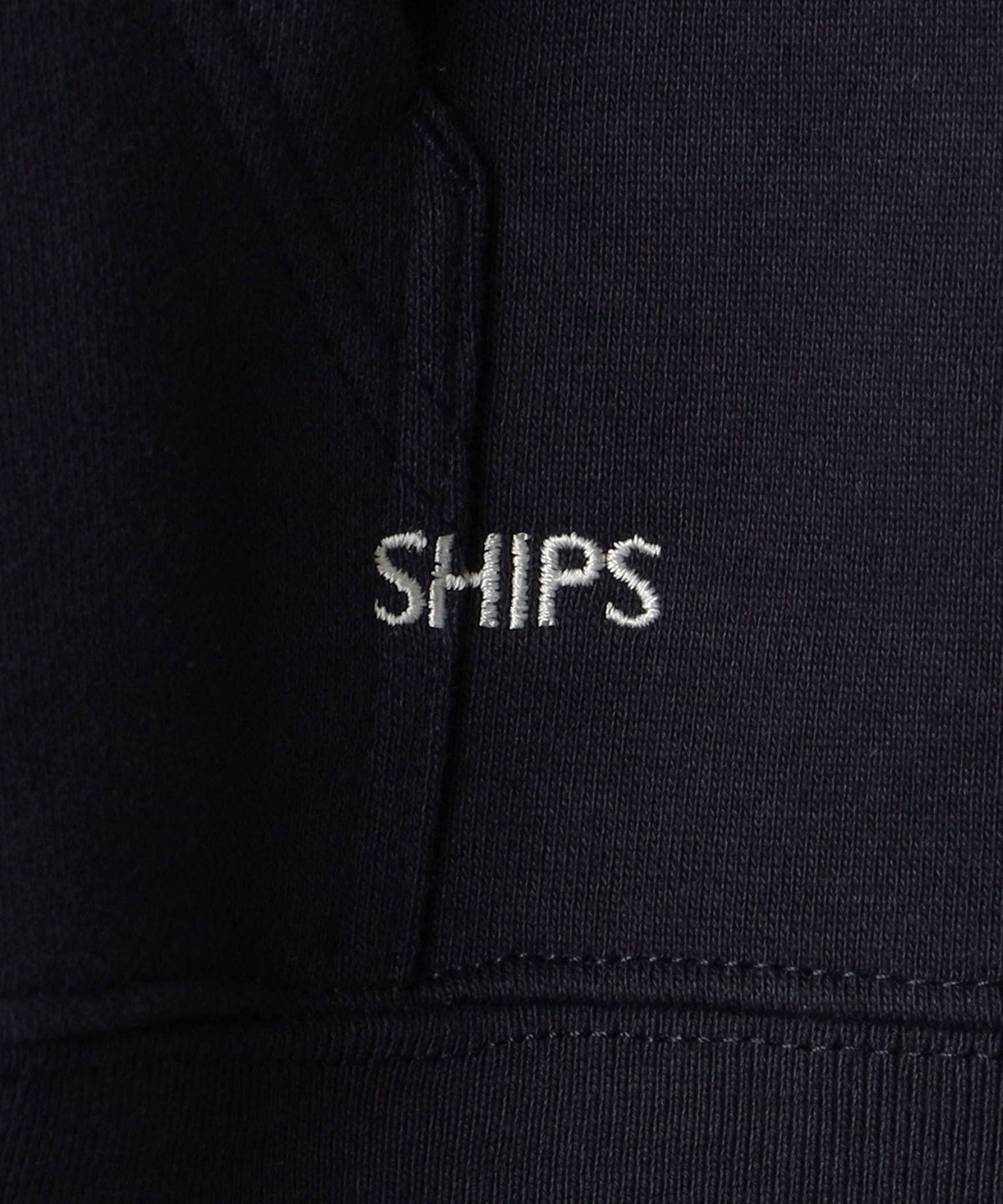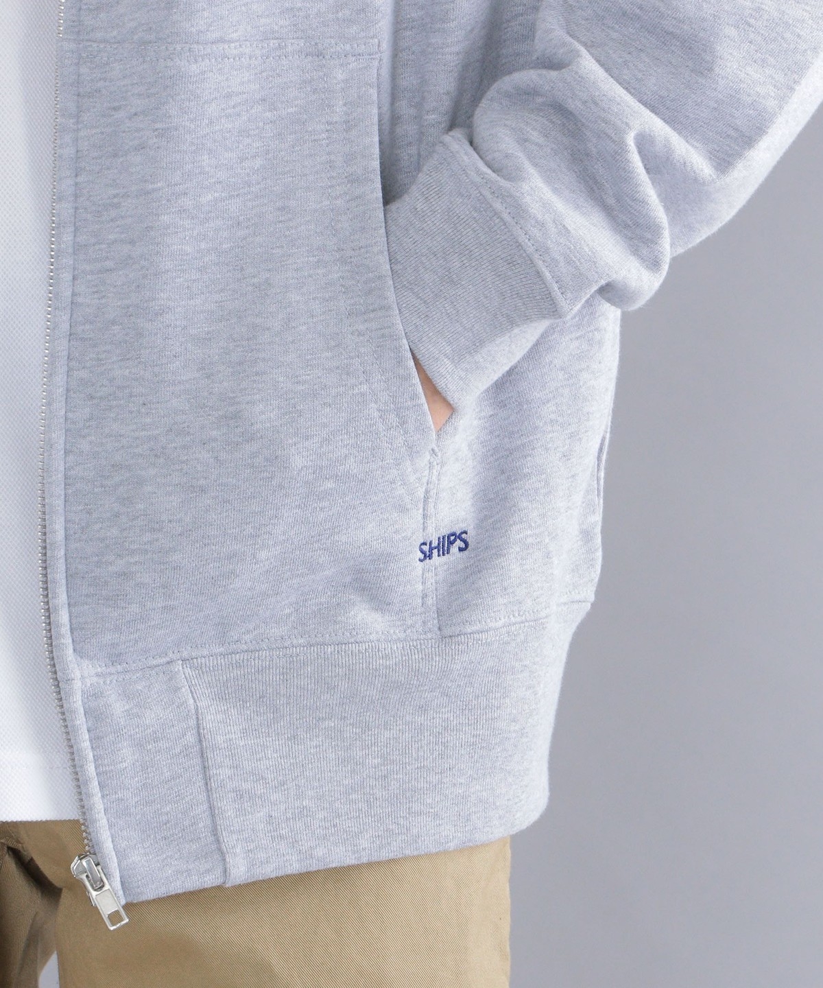 > SHIPS:【WEB限定】SHIPS: マイクロ SHIPS 刺繍 ロゴ 裏毛 スウェット ジップ パーカー