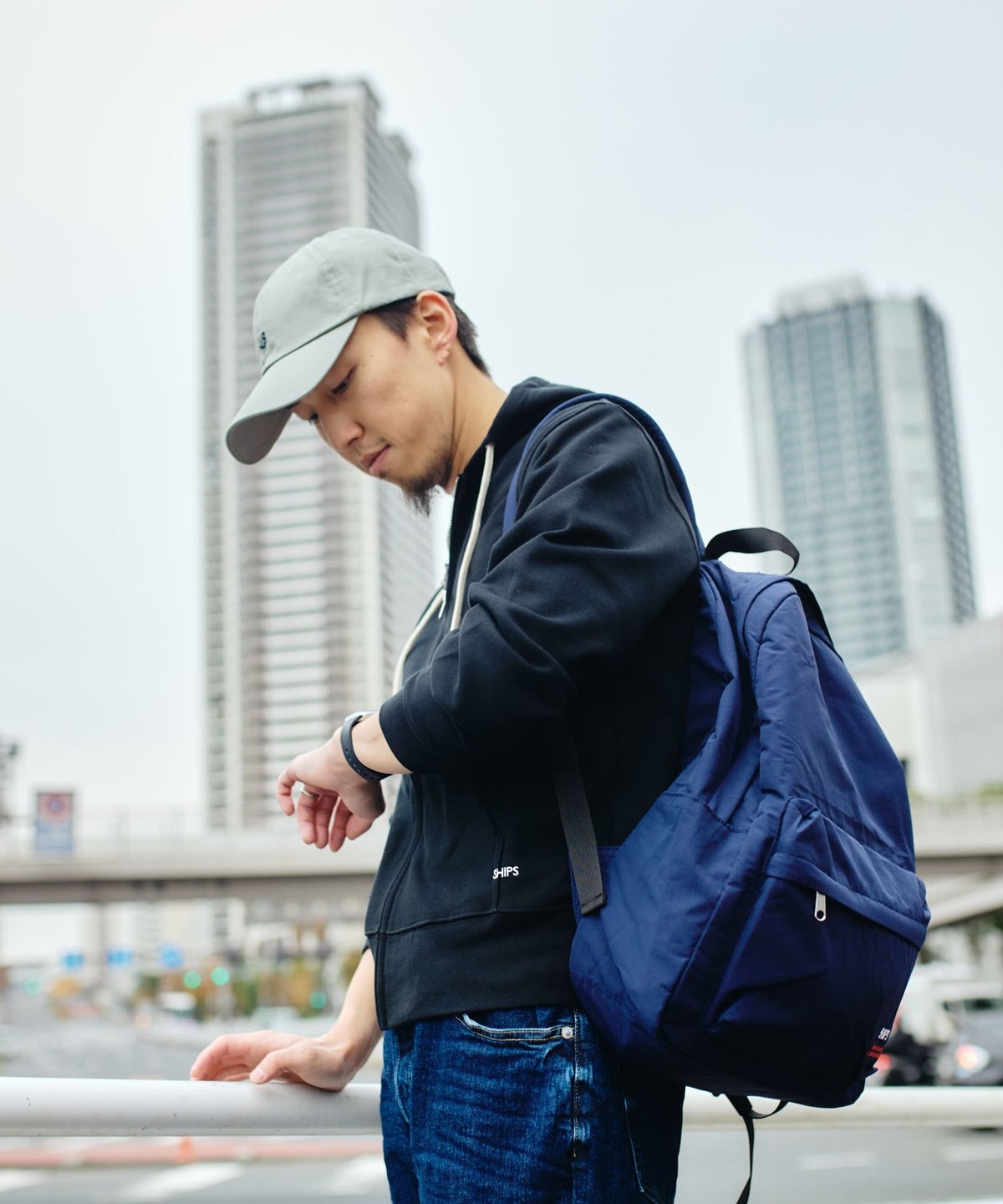 裾元のロゴをあえてポケットからズラし、やや低めの位置に設定。刺繍ロゴも小さめのサイズにすることで主張しすぎずセンスの良いアクセントになっております。