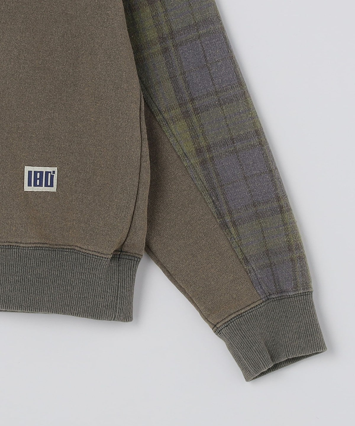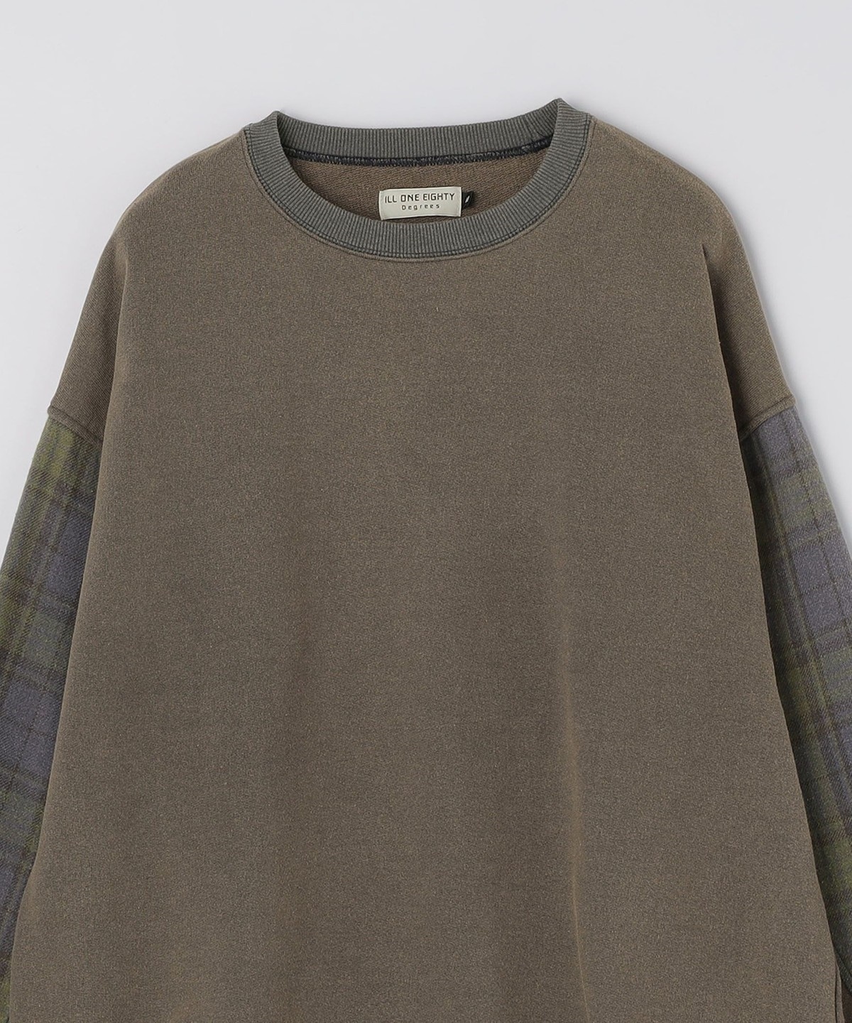 両袖をツイルチェック生地で切り替えたサーフライダースウェットシャツ。