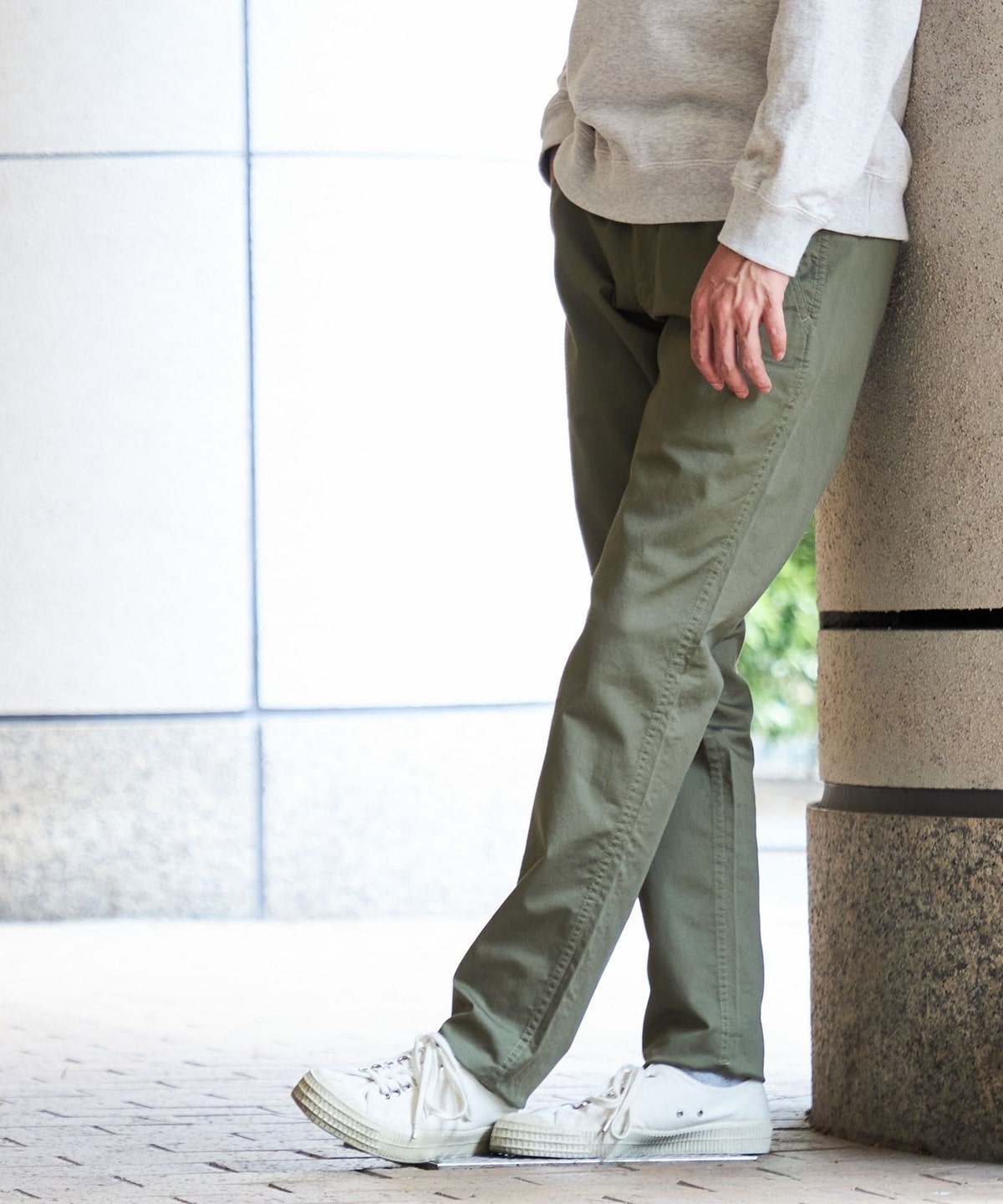 ひざから裾へかけては徐々に細くなるテーパードシルエット。