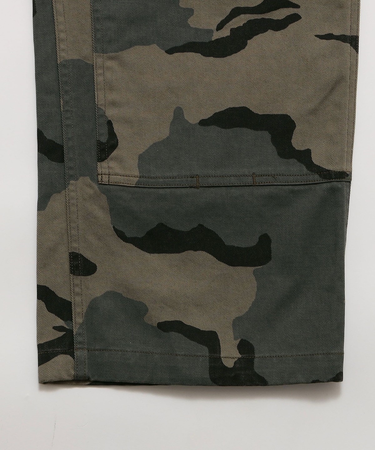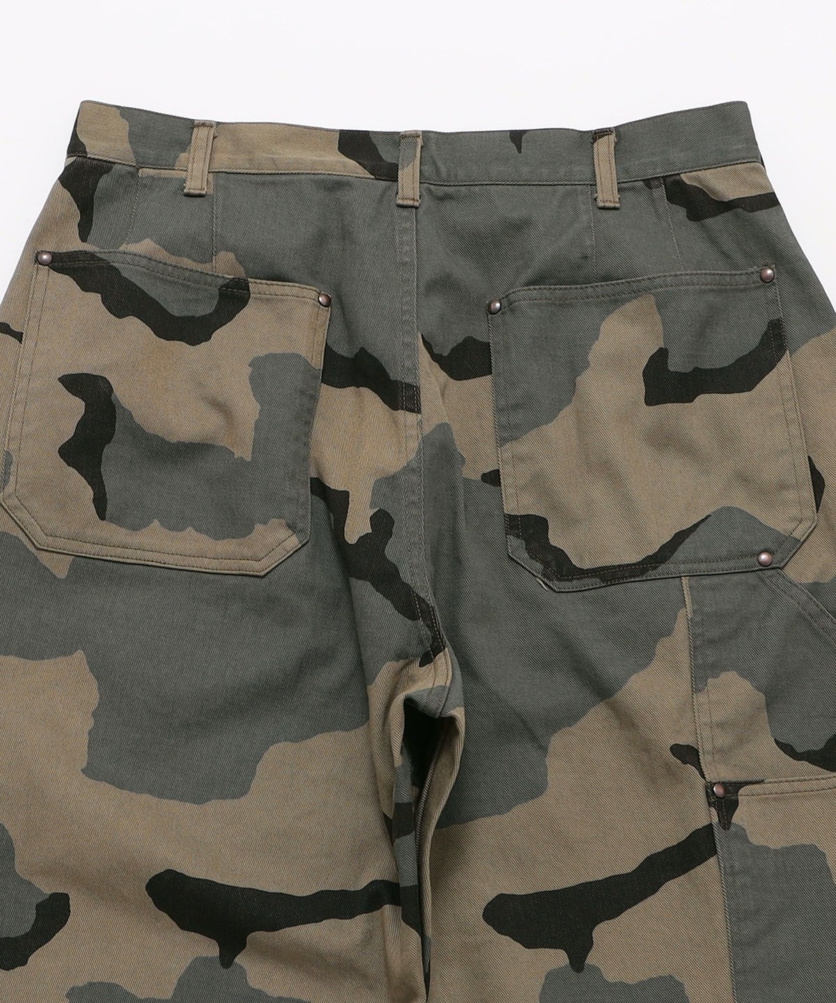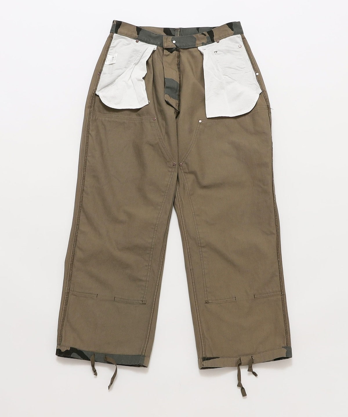 ワイドストレートシルエットのダブルニー仕様を施したペインターパンツ。