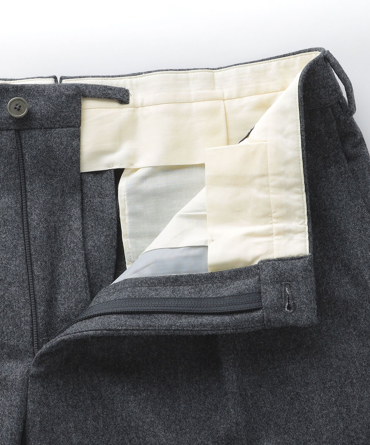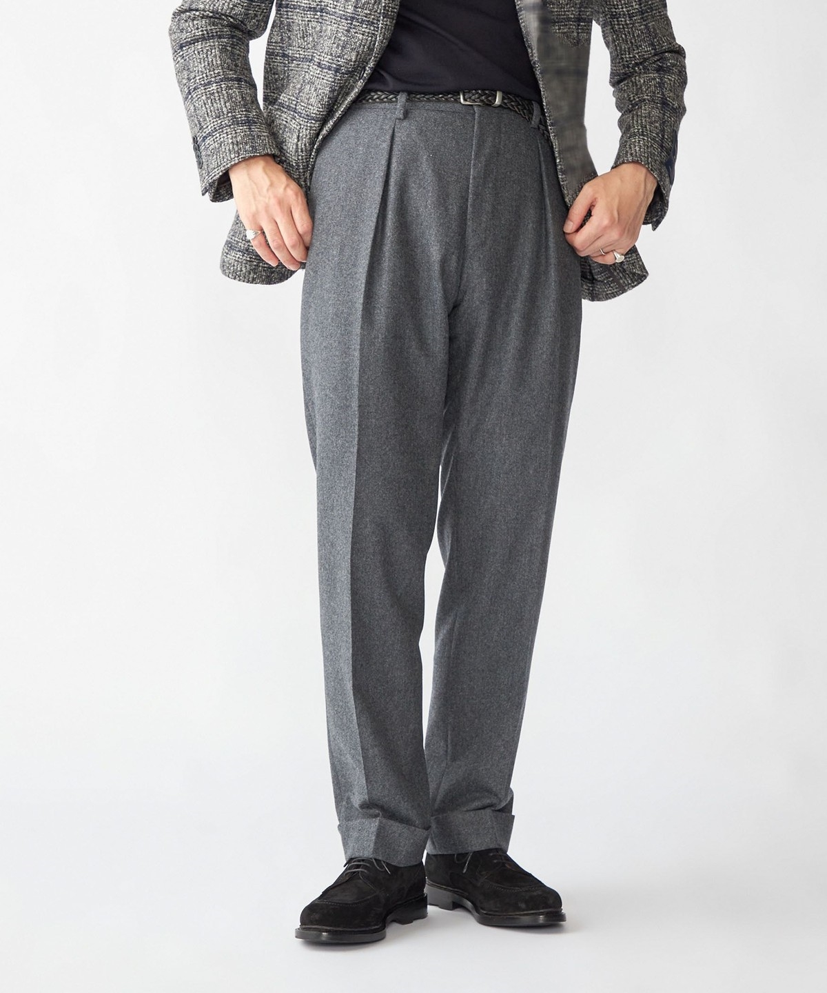 1プリーツの腰回りから適度なテーパードの入ったクラシックなイタリアのパンツスタイルを踏襲したモデル。