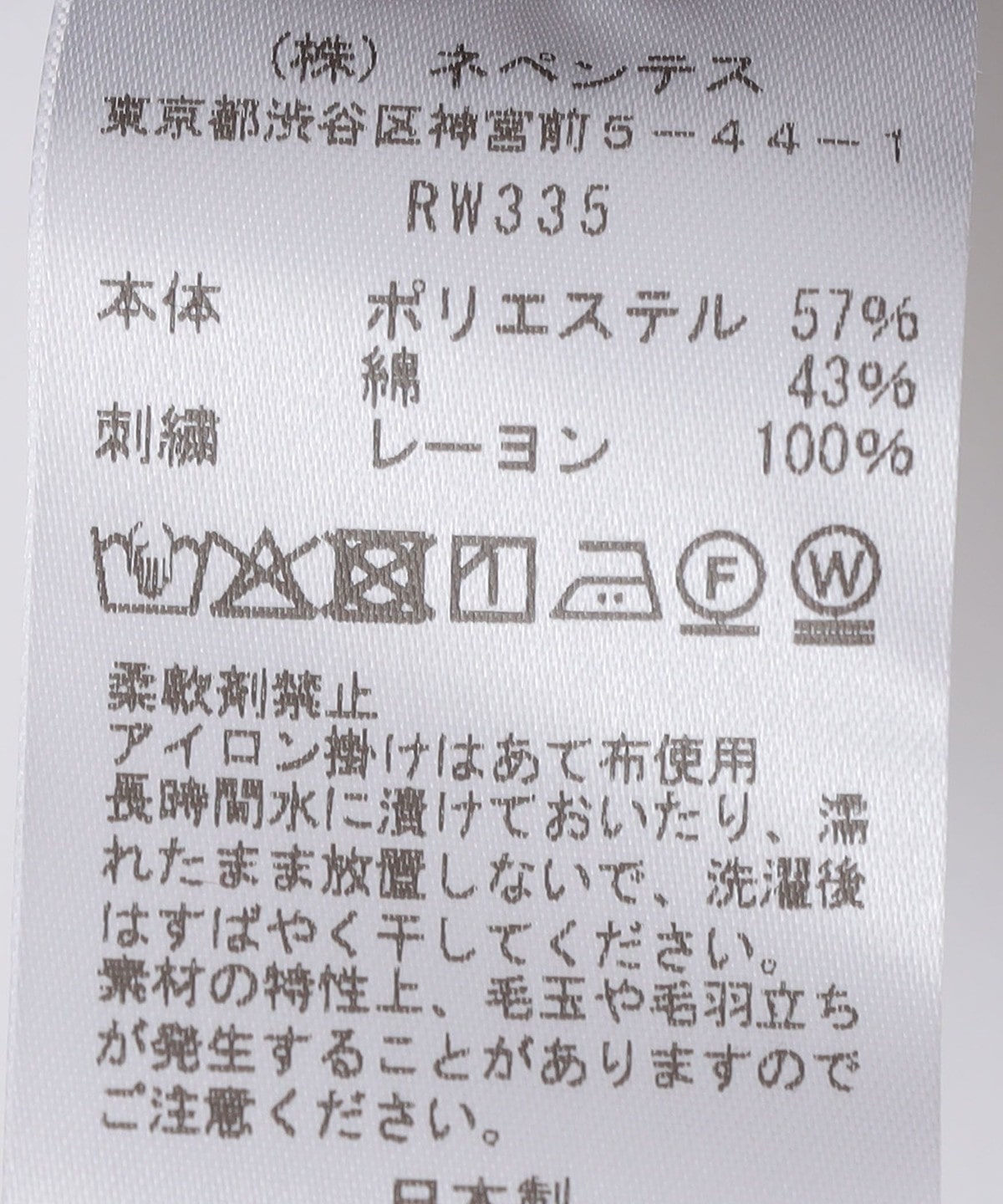 素材:本体: ポリエステル57%, 綿43%, 刺繍: レーヨン100%