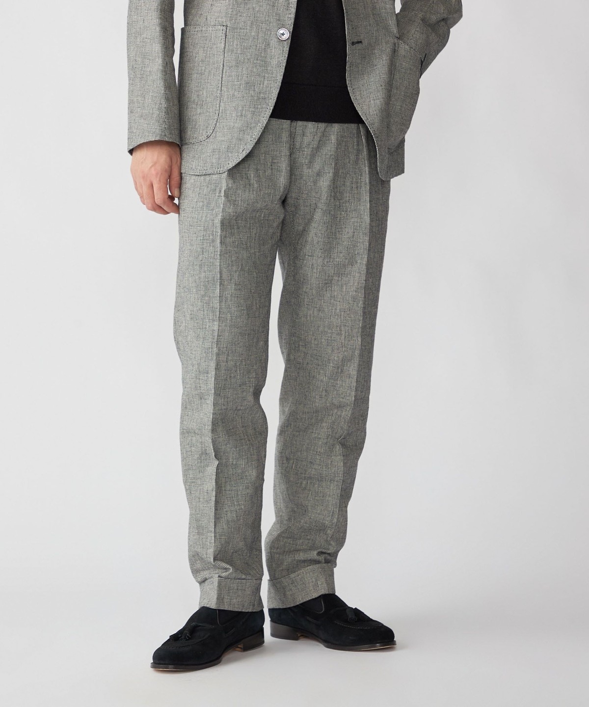 1プリーツの腰回りから適度なテーパードの入ったクラシックなイタリアのパンツスタイルを踏襲したモデル。