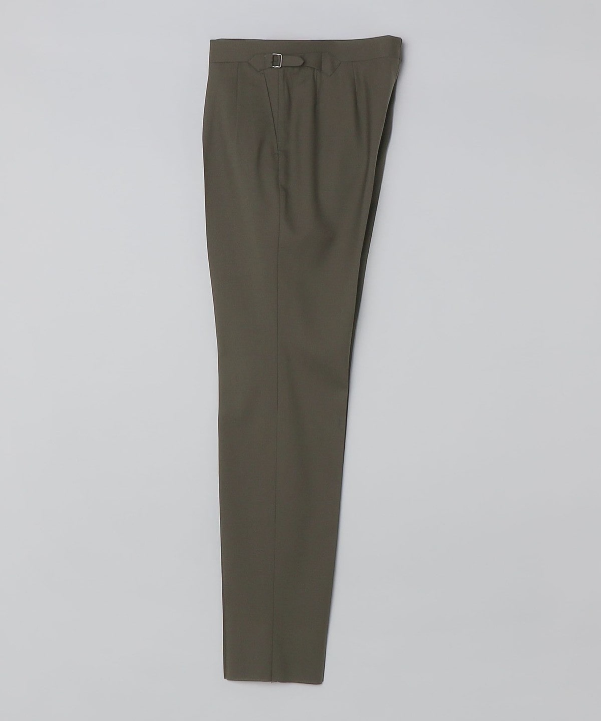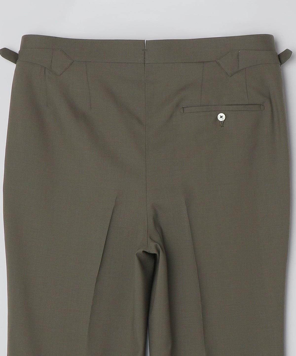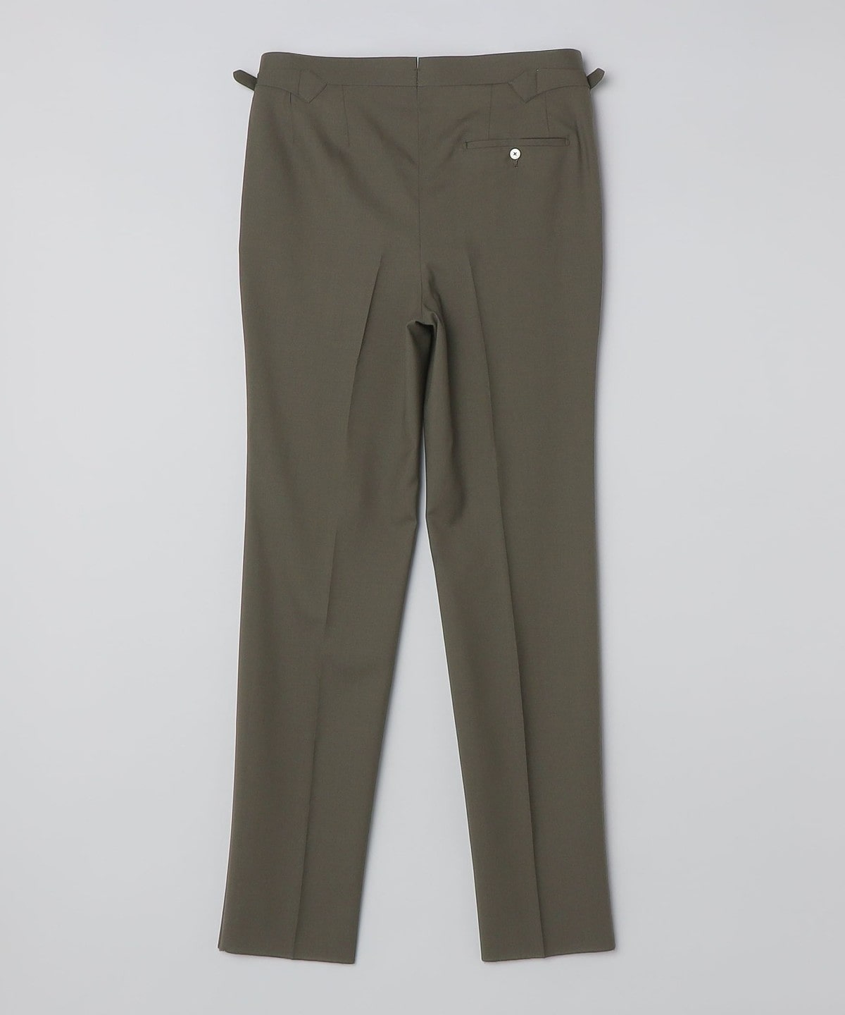 インプリーツに深めの股上、サイドストラップを施した仕様です。