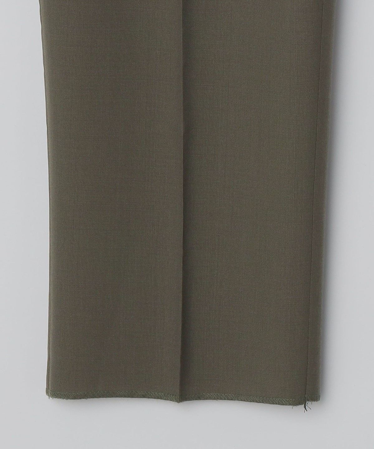 シルエットはウエスト周りにしっかりとフィット感を持たせながら、深めに取ったプリーツの美しいラインが腰回りから裾まで綺麗に広がる仕上がりのワイドトラウザーズです。