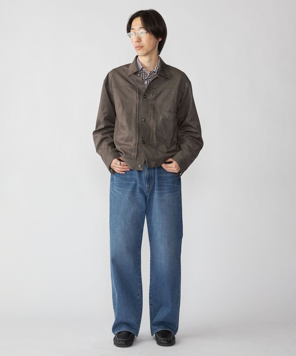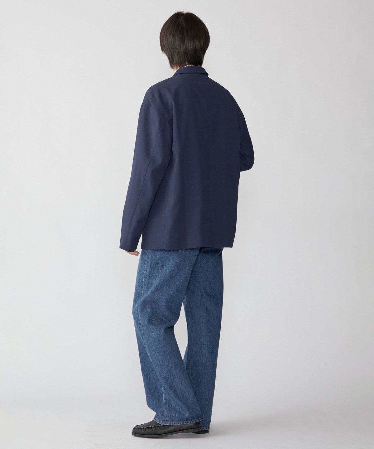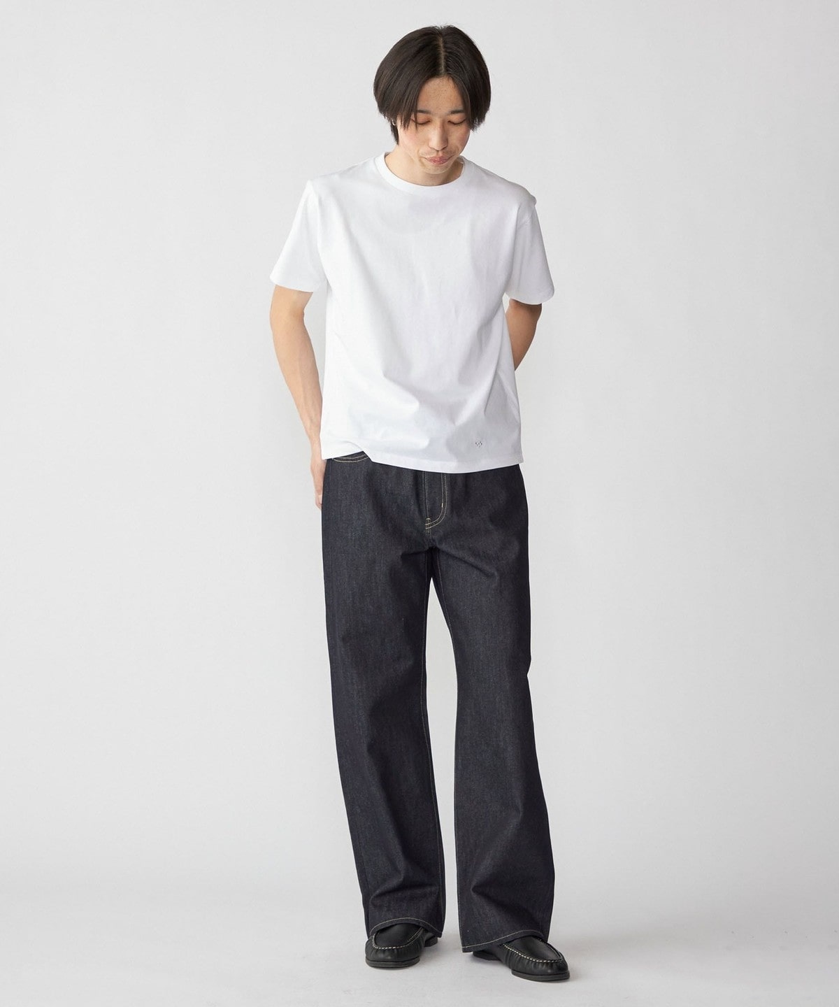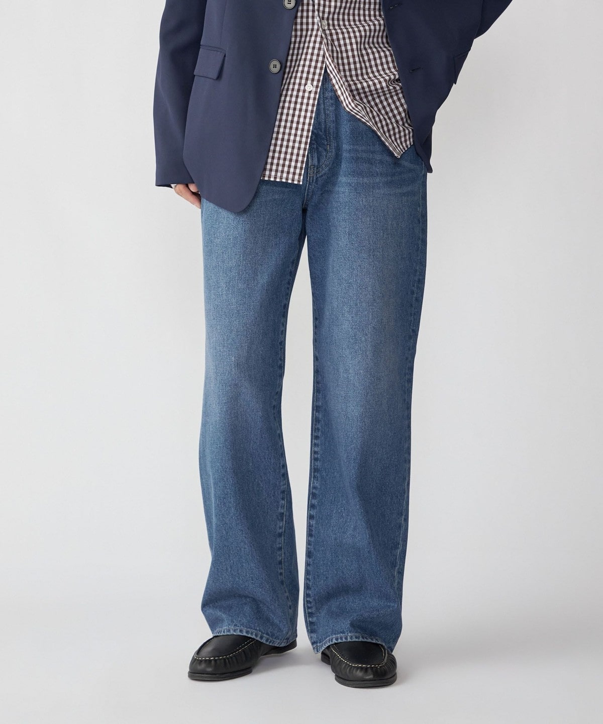 ダメージ加工のないクリーンなデザインなので、ジャケットやレザーシューズといったきれいめなアイテムとも相性抜群。