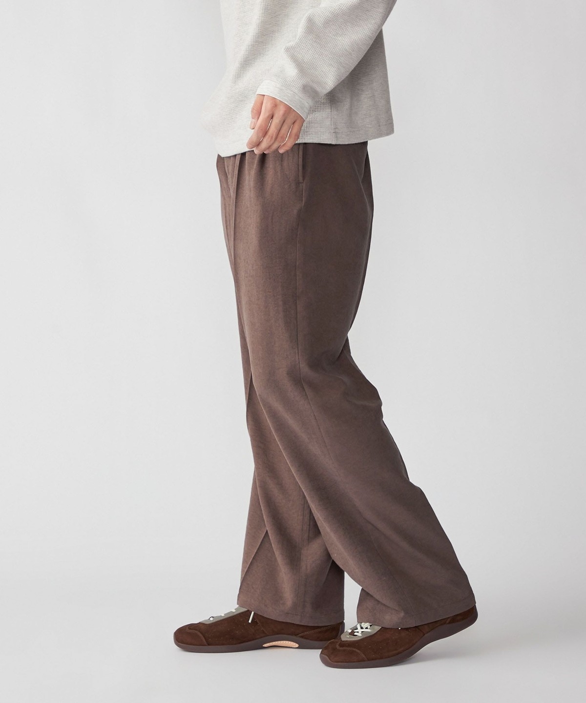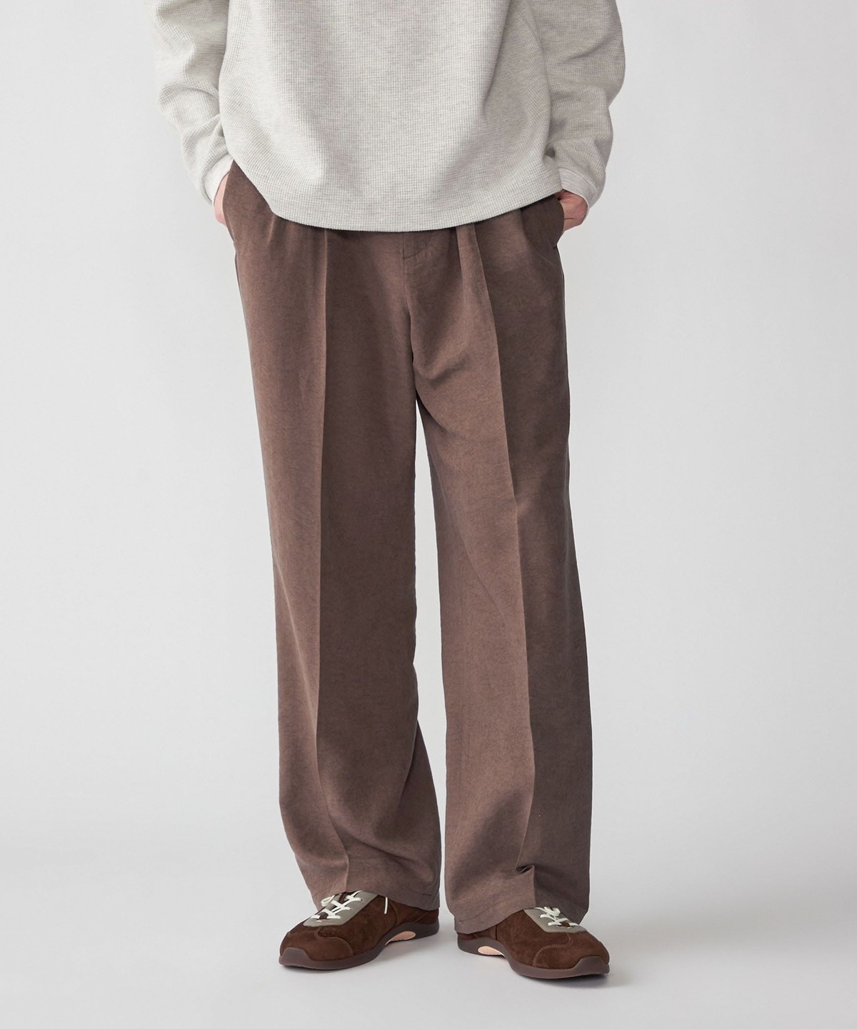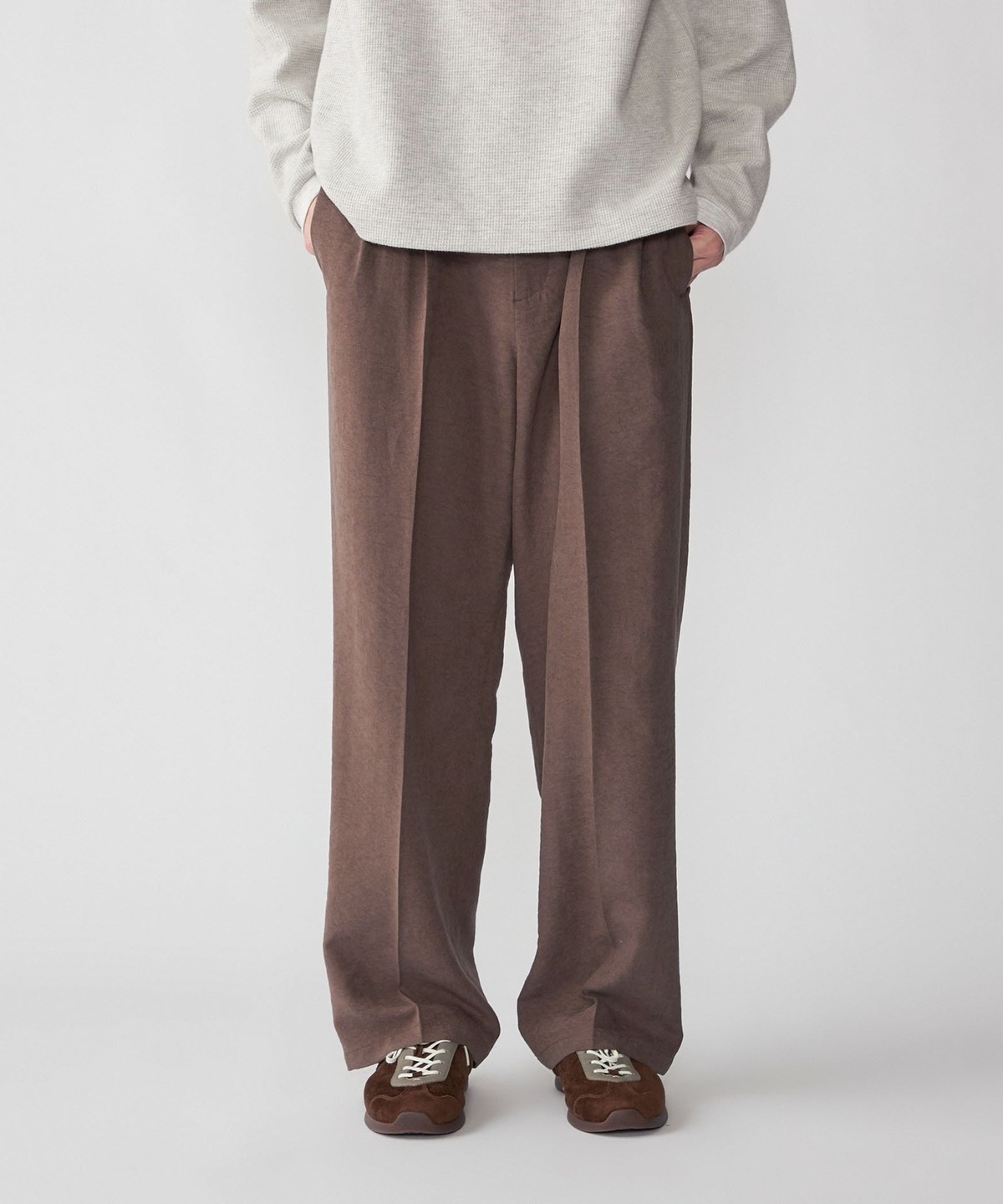 歩くたびに柔らかく揺れる、しなやかで落ち感のある生地を使用したスラックス。