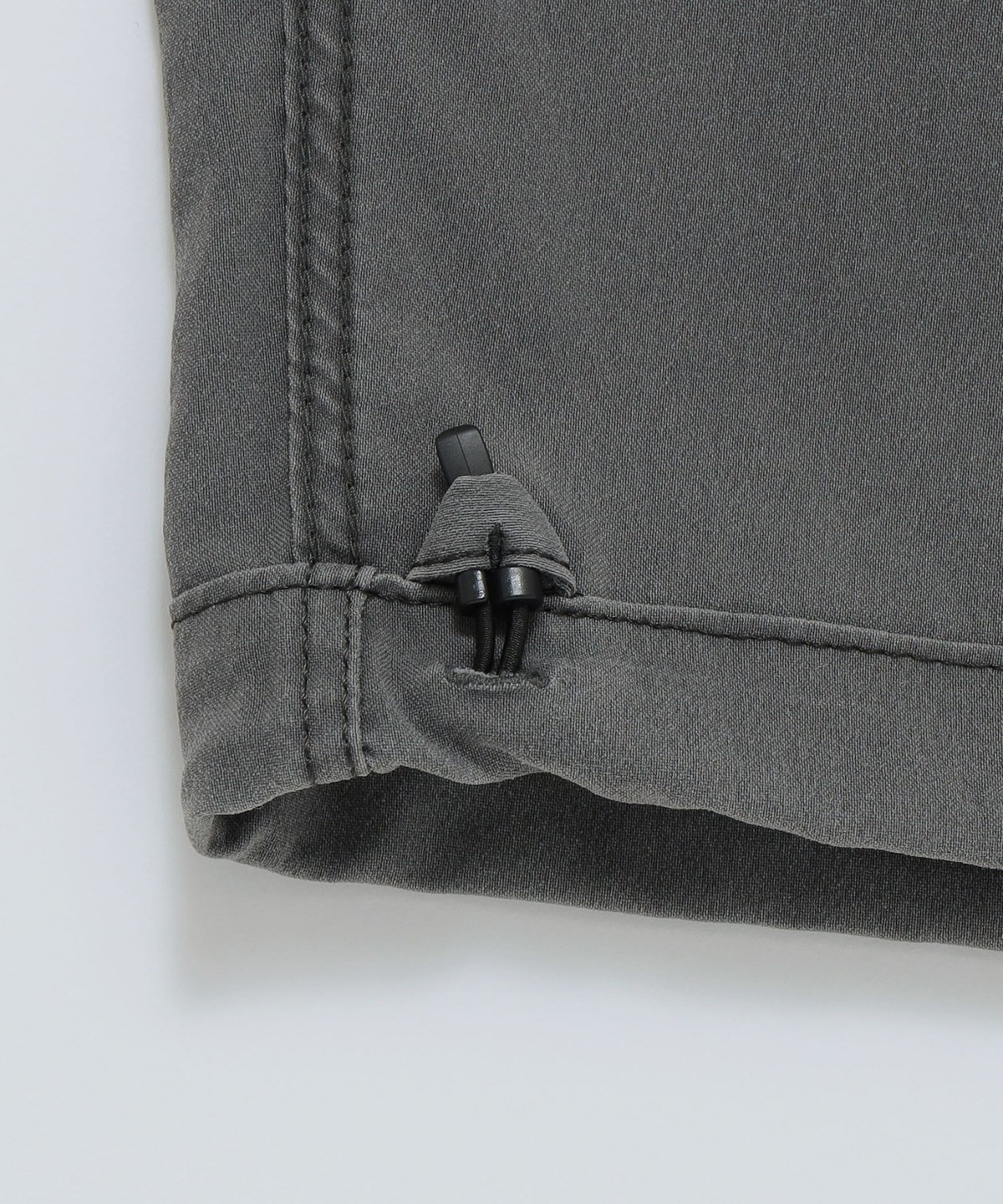 ウエストはスピンドル仕様になっており、裾のドローコードでフィット感の調節が可能。