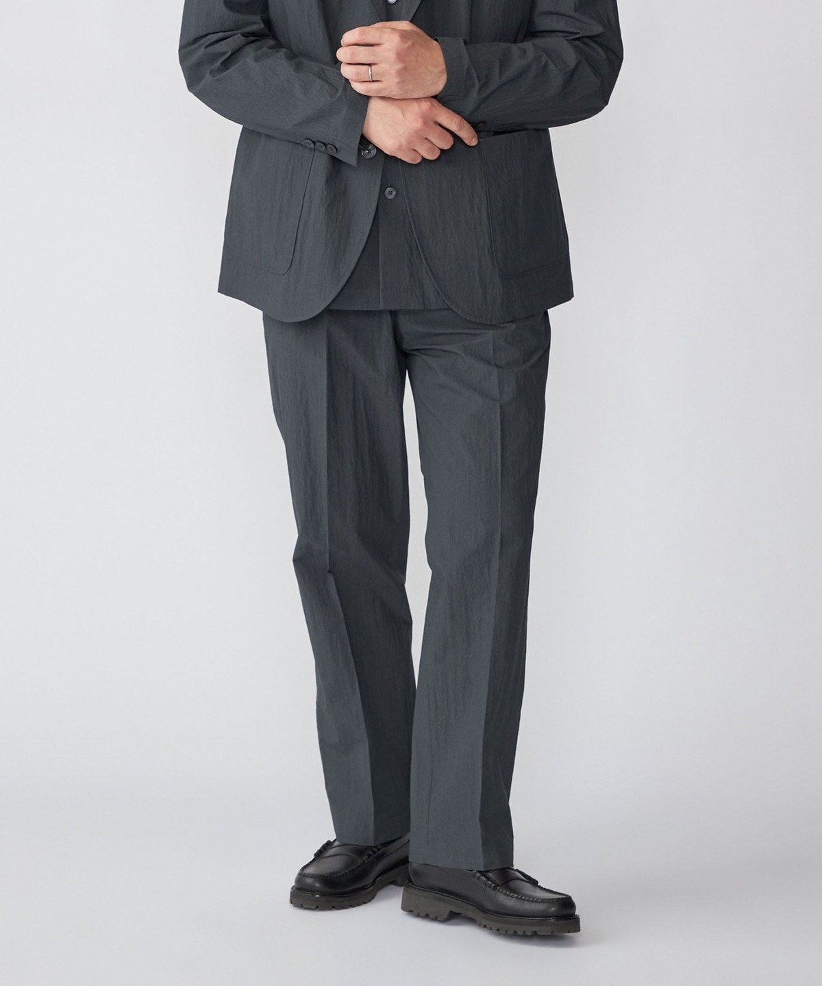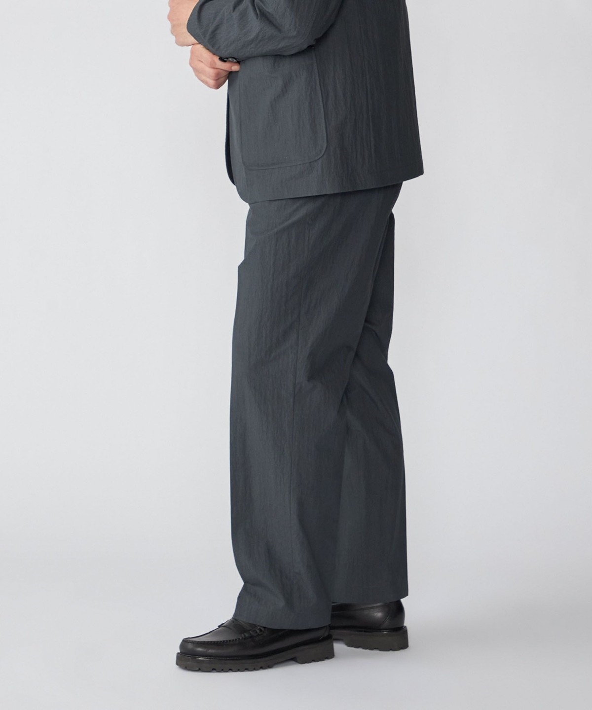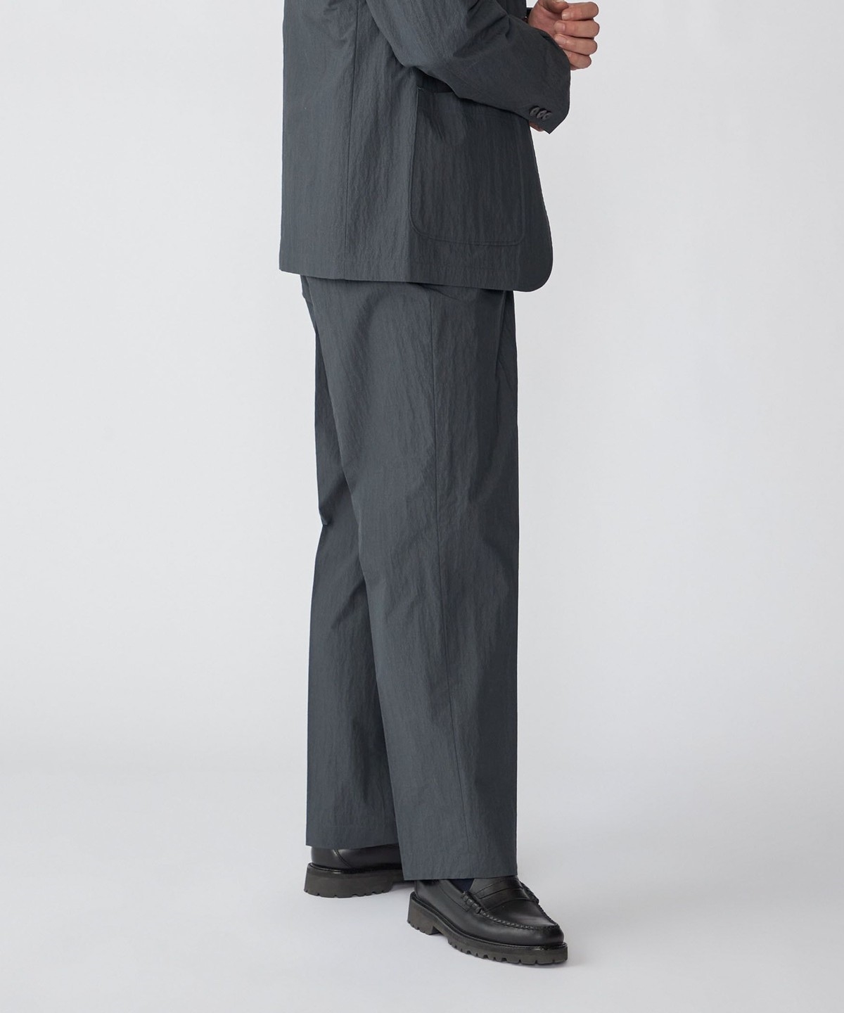 同素材でセットアップ着用可能なジャケット・シャツとシルエット違いのパンツを展開。