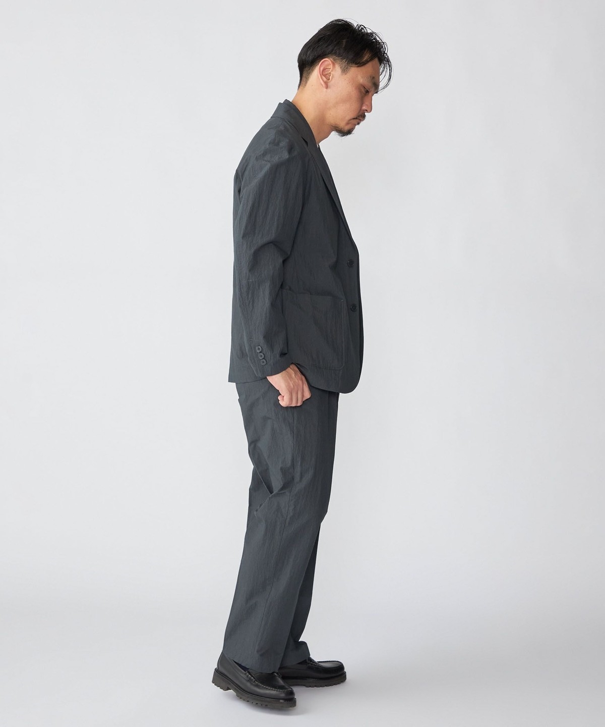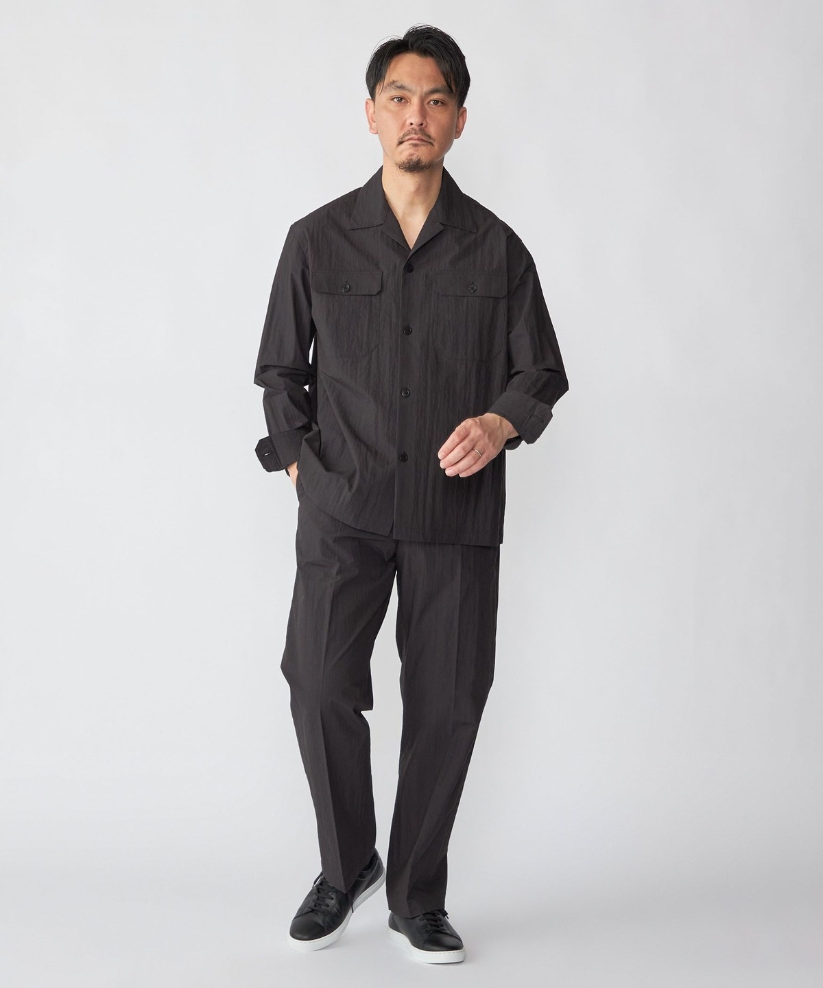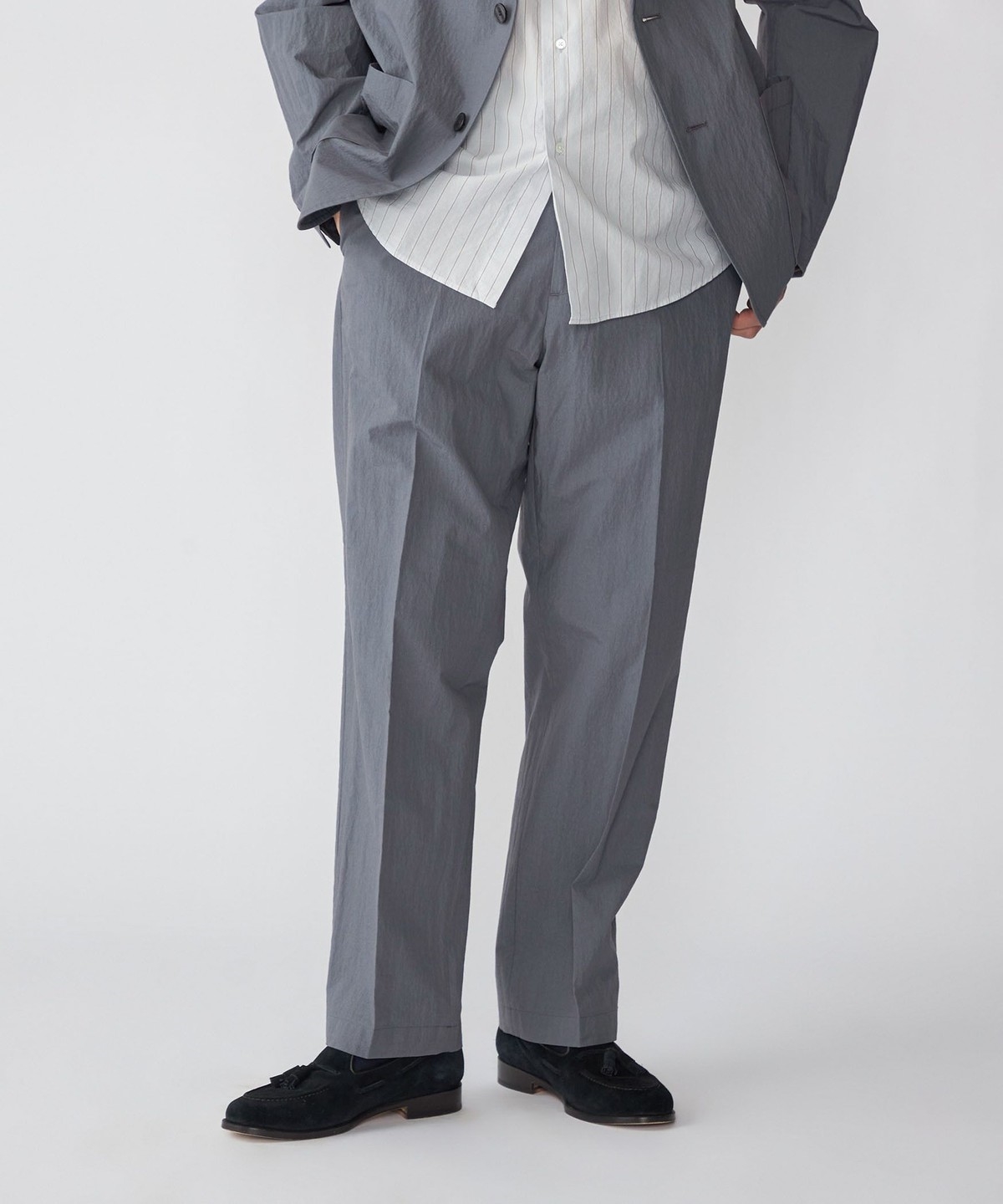 同素材でセットアップ着用可能なジャケット・シャツとシルエット違いのパンツを展開。