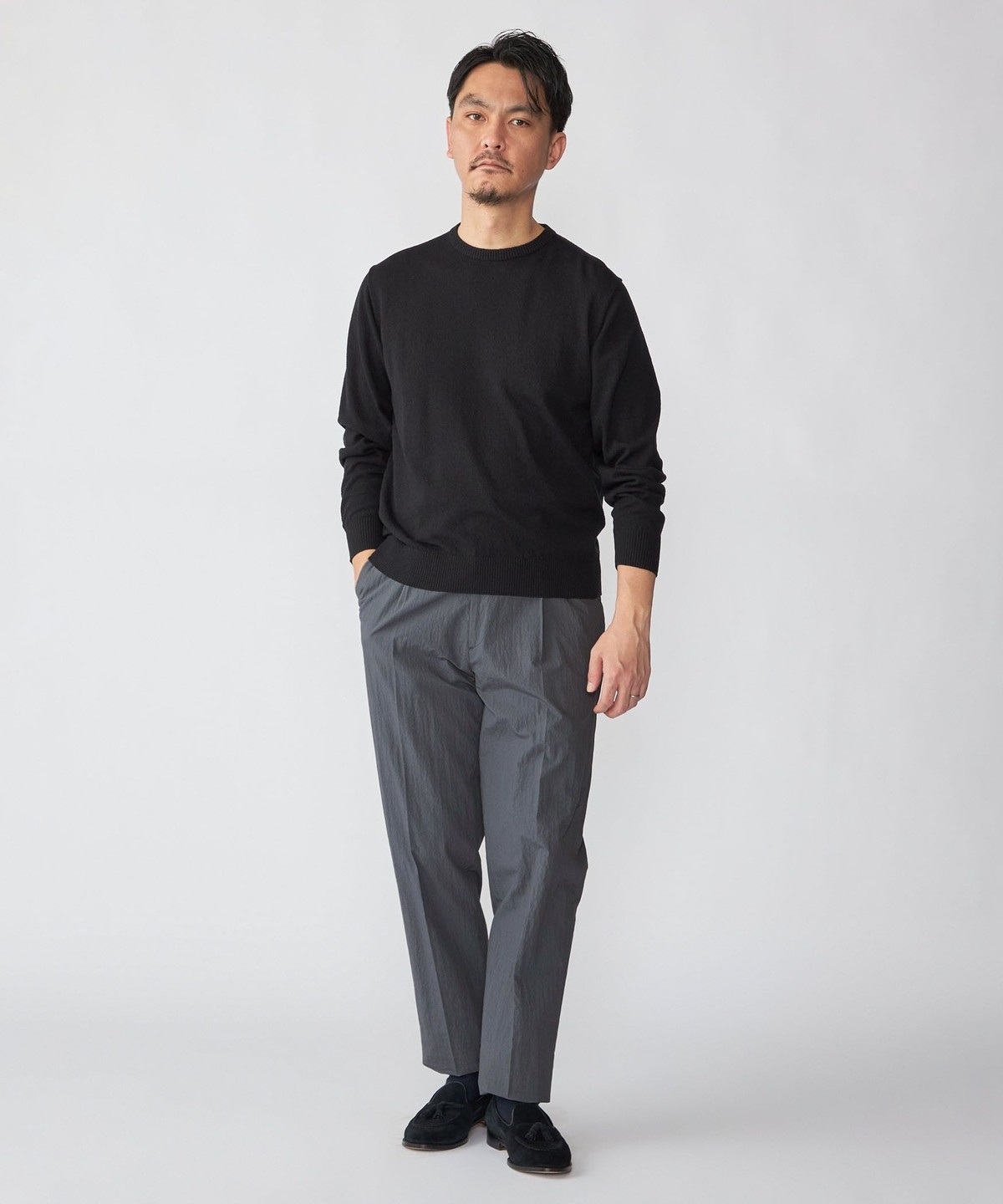 ルーズになり過ぎない上品なシルエットと快適な着用感を両立させたパンツです。