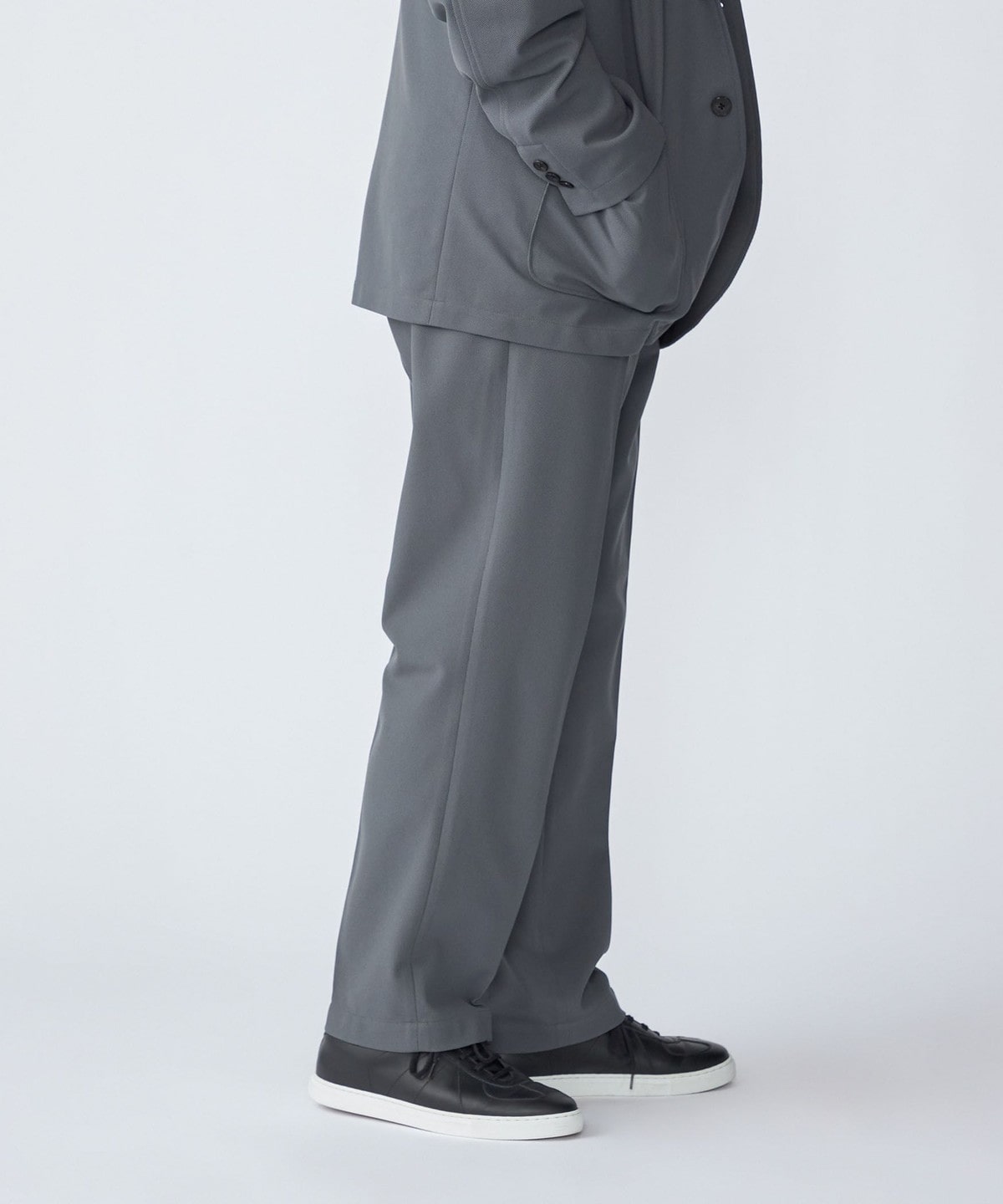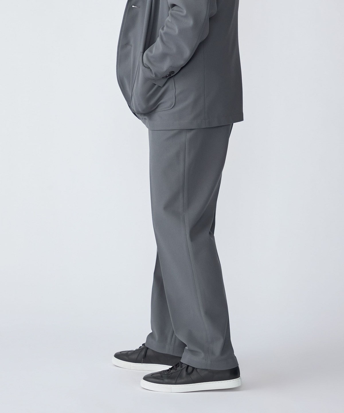 同素材でセットアップ着用可能なジャケットとシルエット違いのパンツを展開。