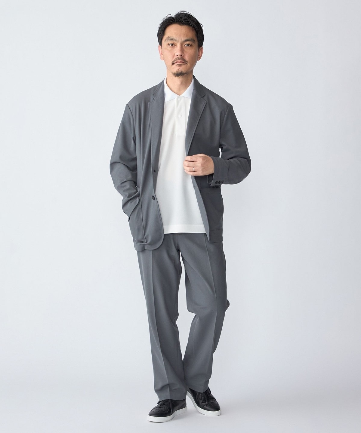 共生地のジャケットを使用したセットアップスタイルがおすすめです。