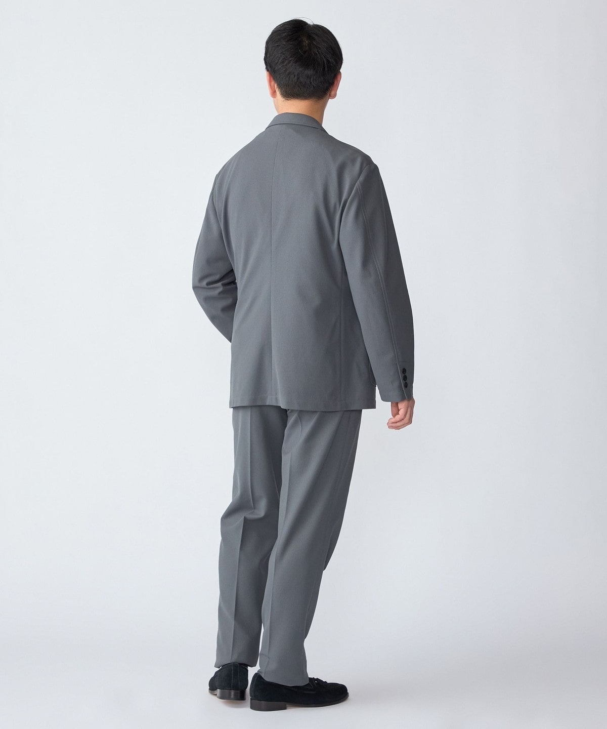 同素材でセットアップ着用可能なジャケットとシルエット違いのパンツを展開。