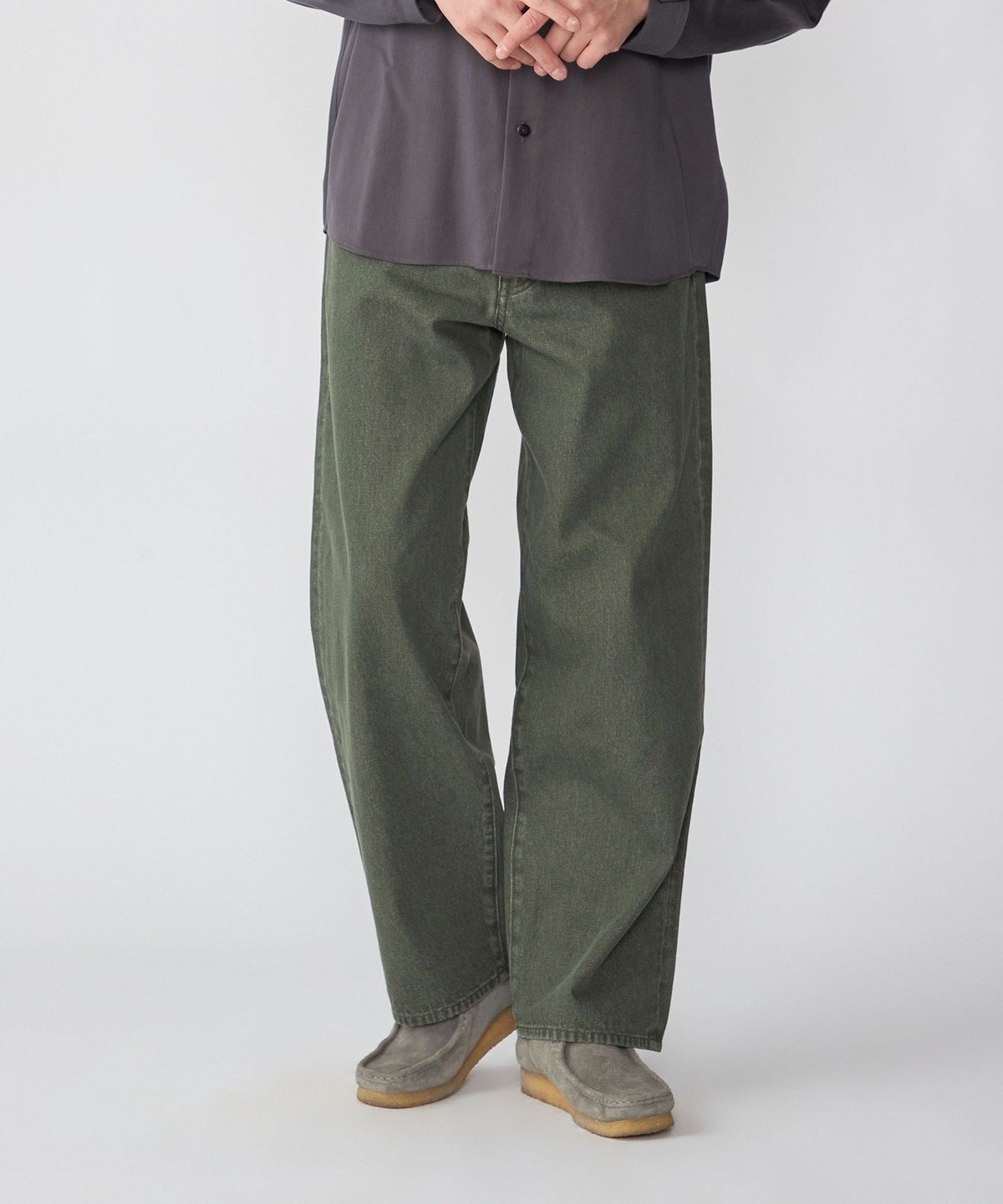 トレンド筆頭のカラーデニムはバイオストーンウォッシュ加工で絶妙な色落ち感を表現しました。
