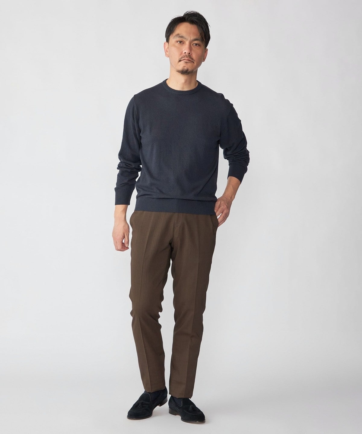 タイドアップはもちろん、ニットやTシャツを使用した軽快なビジネスカジュアルでも活躍するアイテムです。