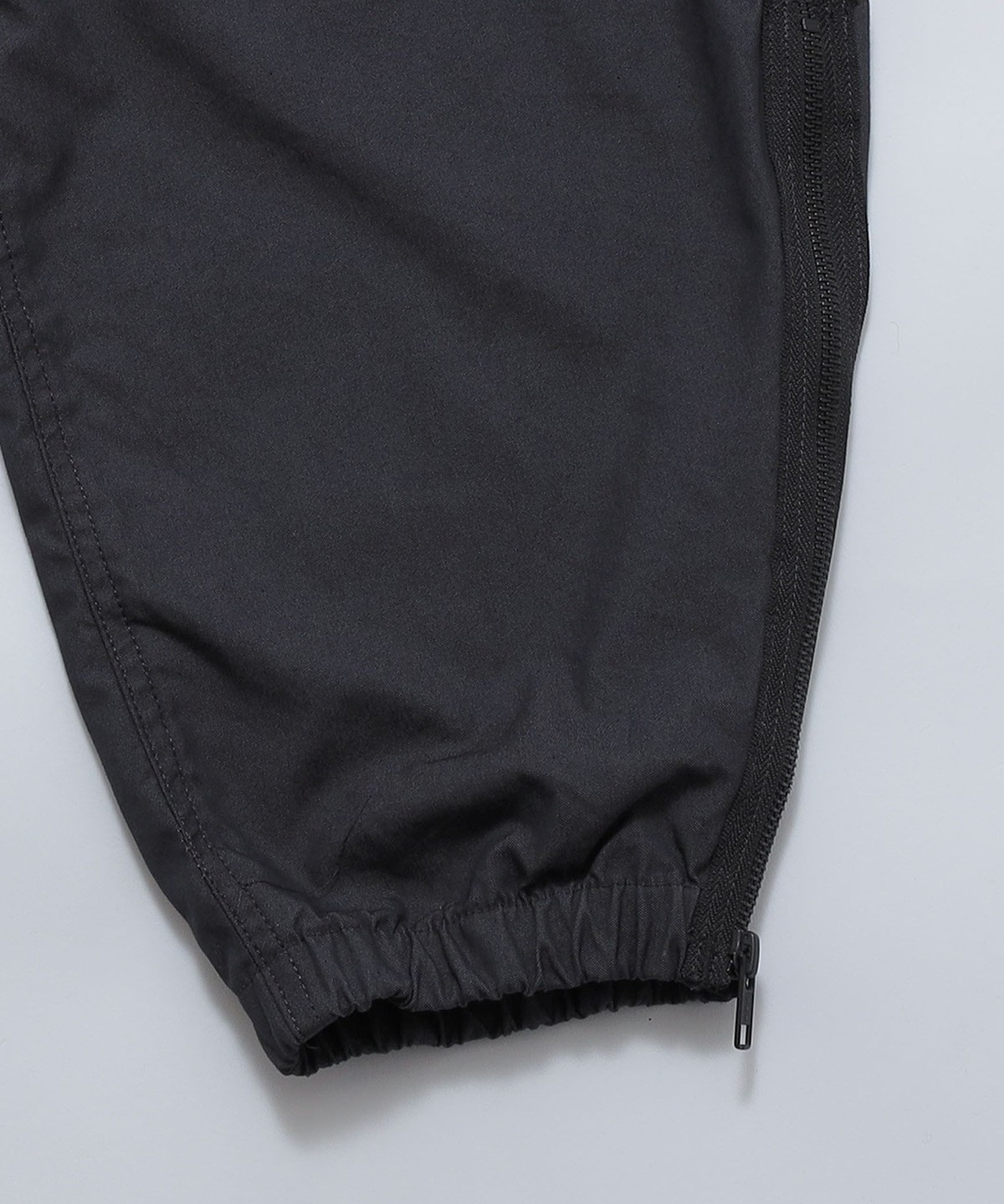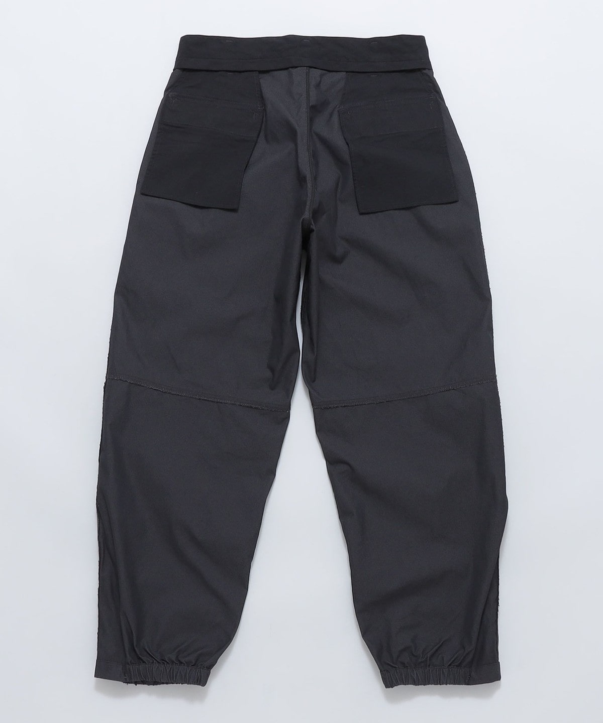 ジップによる開閉が可能な裾やニーパッドなどがユニークな、コンバットパンツと呼ばれるスタイルの一本。