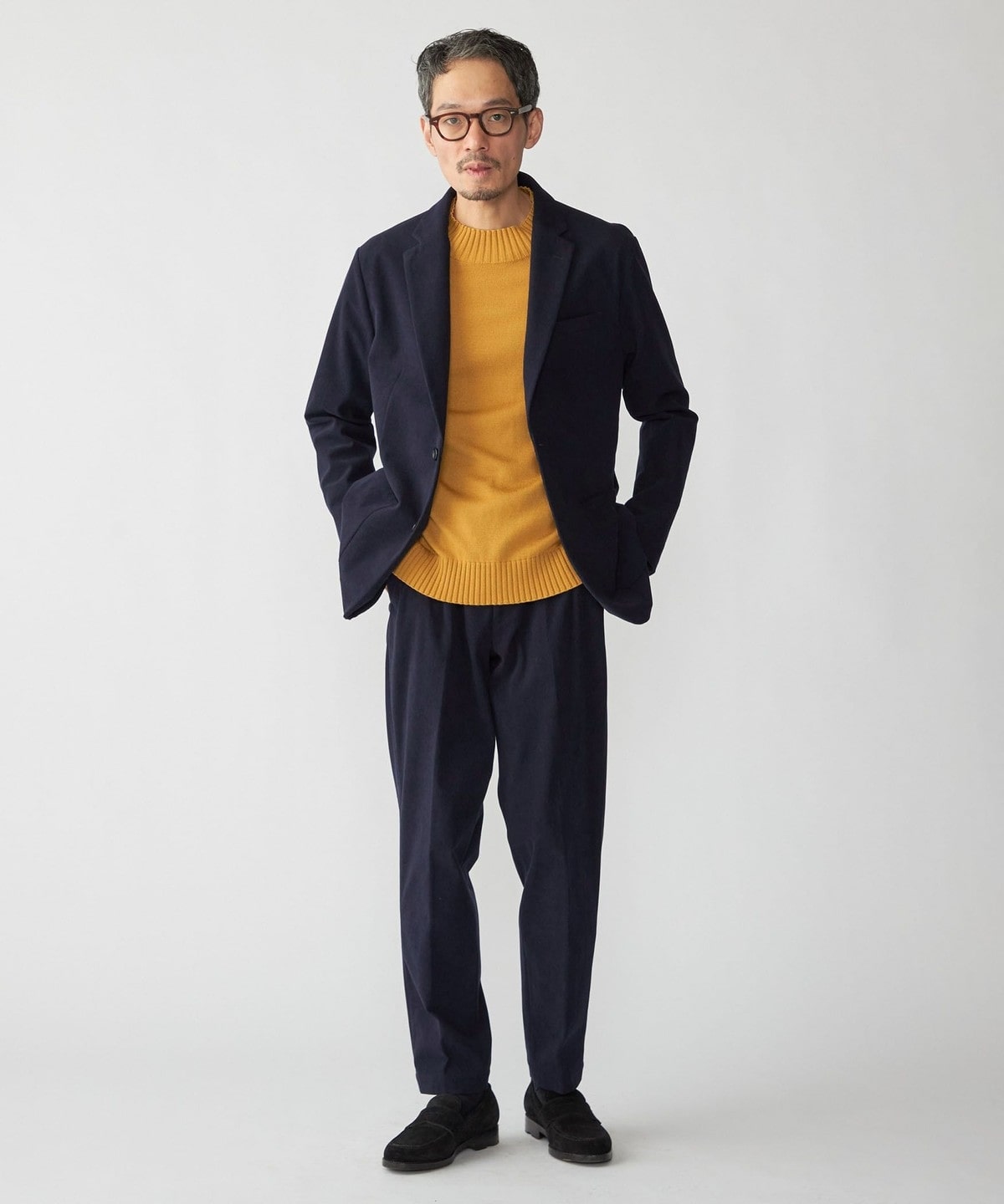 スタンダードなテーパードシルエットのイージースラックスなので、パンツ単品でもご使用いただきやすい一着です。